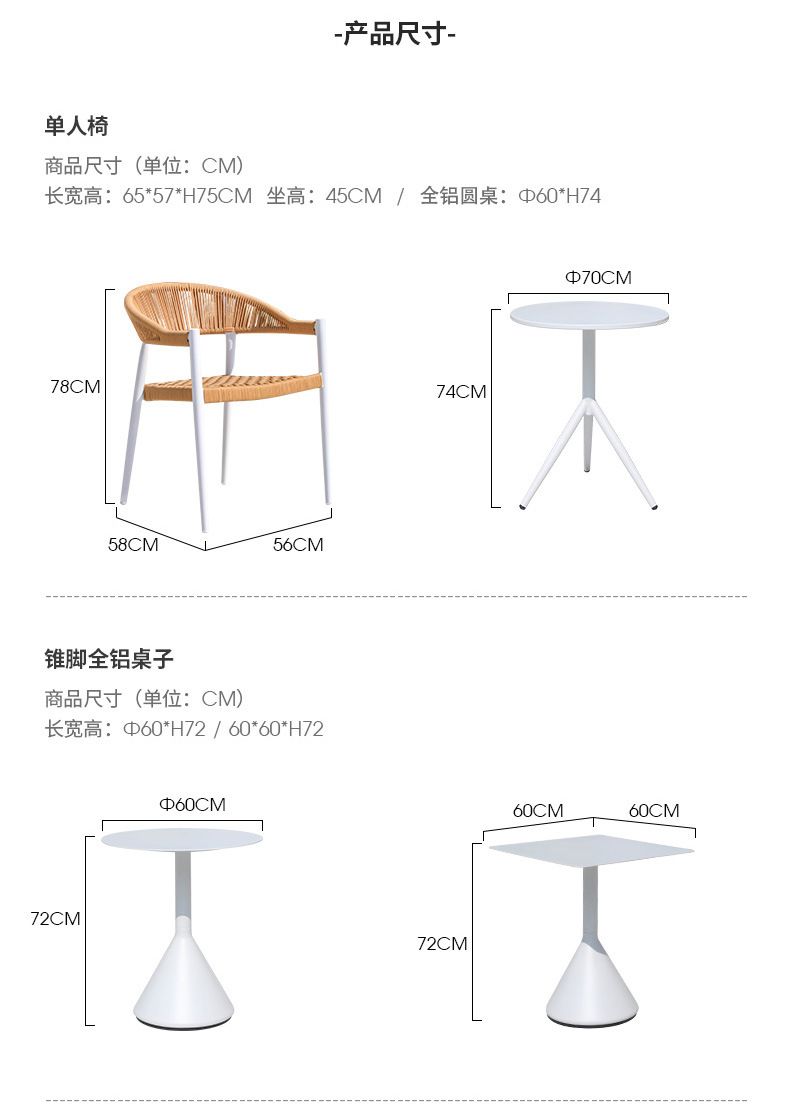 • 의자 4개 + Φ60cm 원뿔형 발 사각 테이블