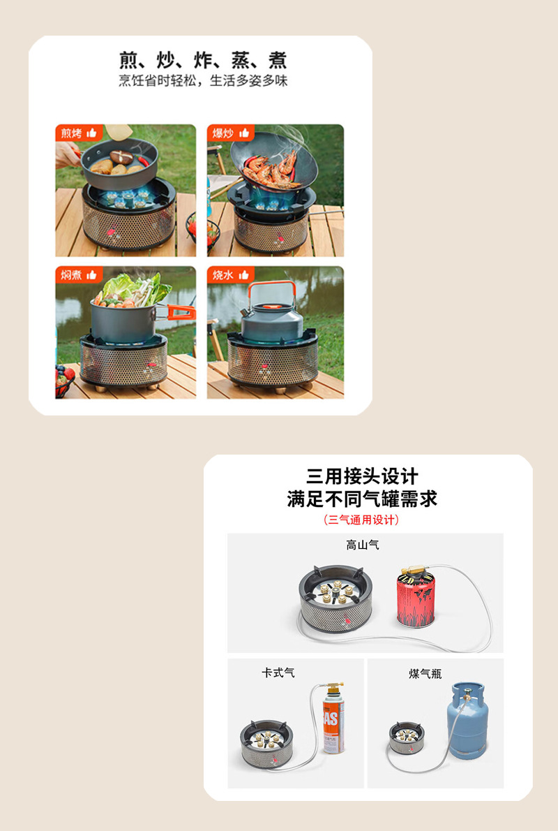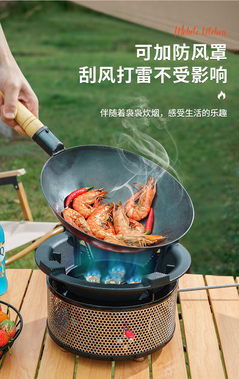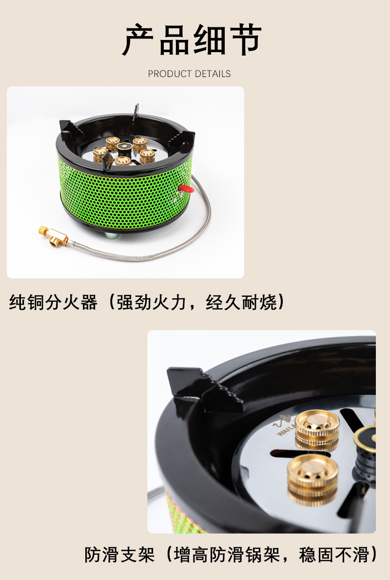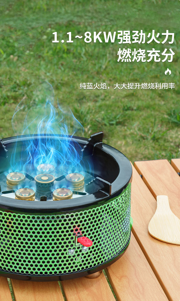 야외 캠핑 스토브 여행 캠핑 6 헤드 맹렬한 방풍 스토브는 피크닉을위한 균일 한 휴대용 및 내구성 가스 스토브를 가열합니다.