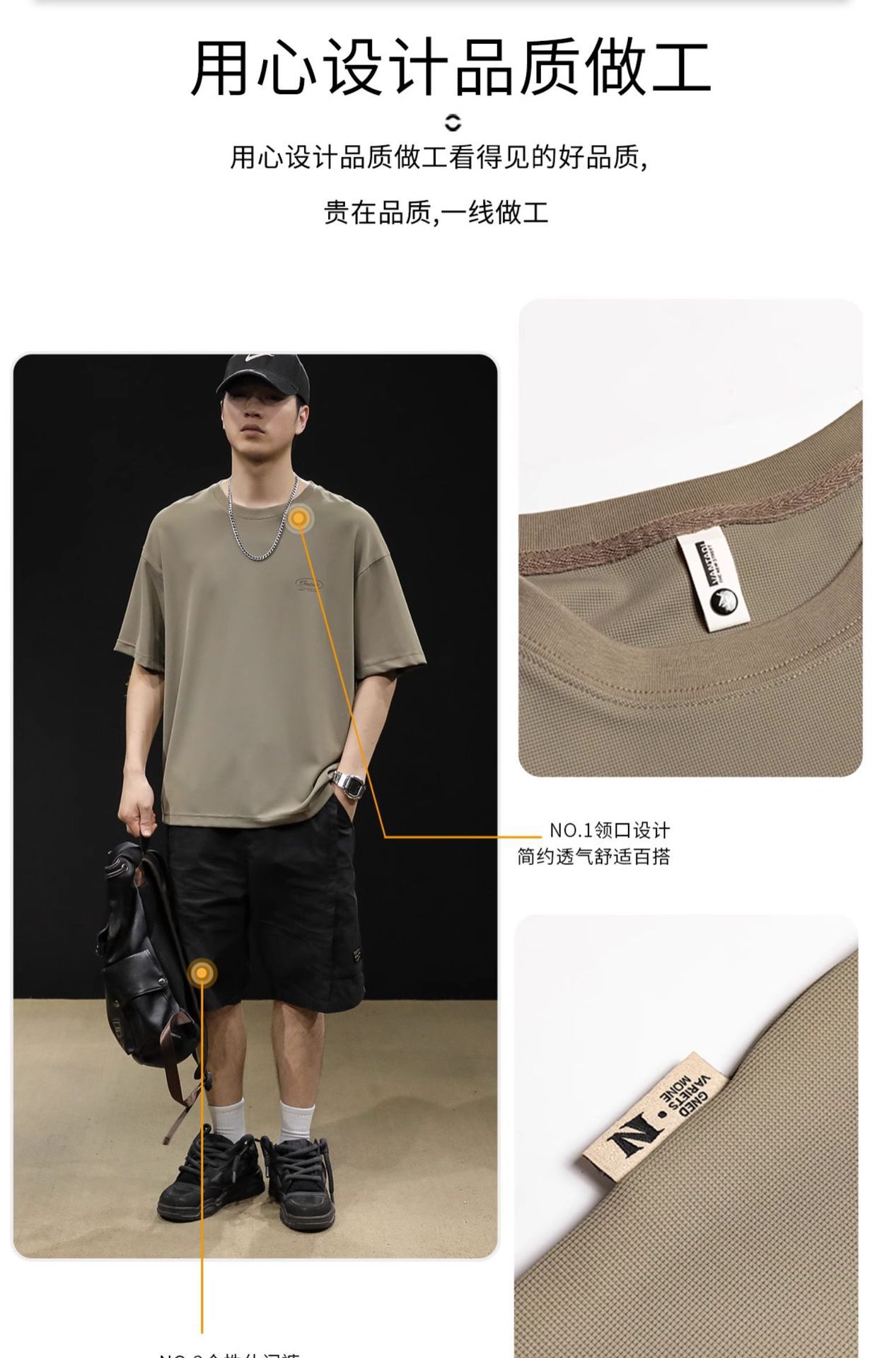 아이스 실크 경량 반팔 티셔츠 남자 여름 2024 새로운 도착 느슨한 플러스 사이즈 빠른 건조 옷 유행 브랜드 남성 티셔츠스토어 가기