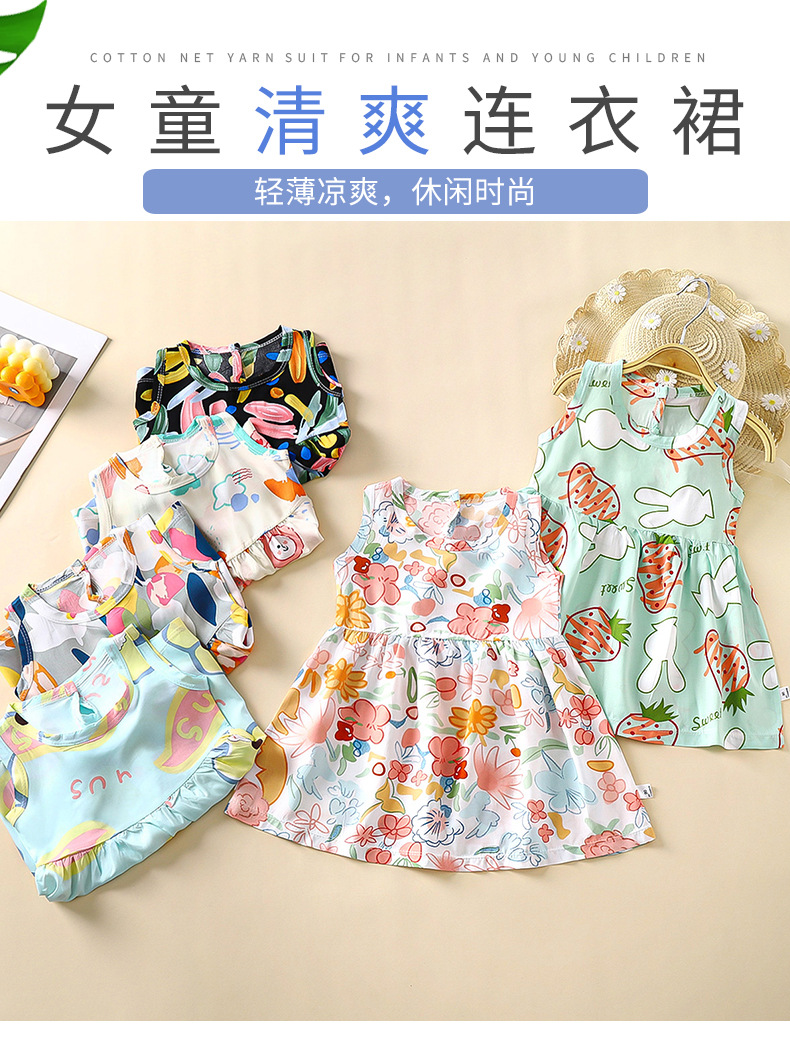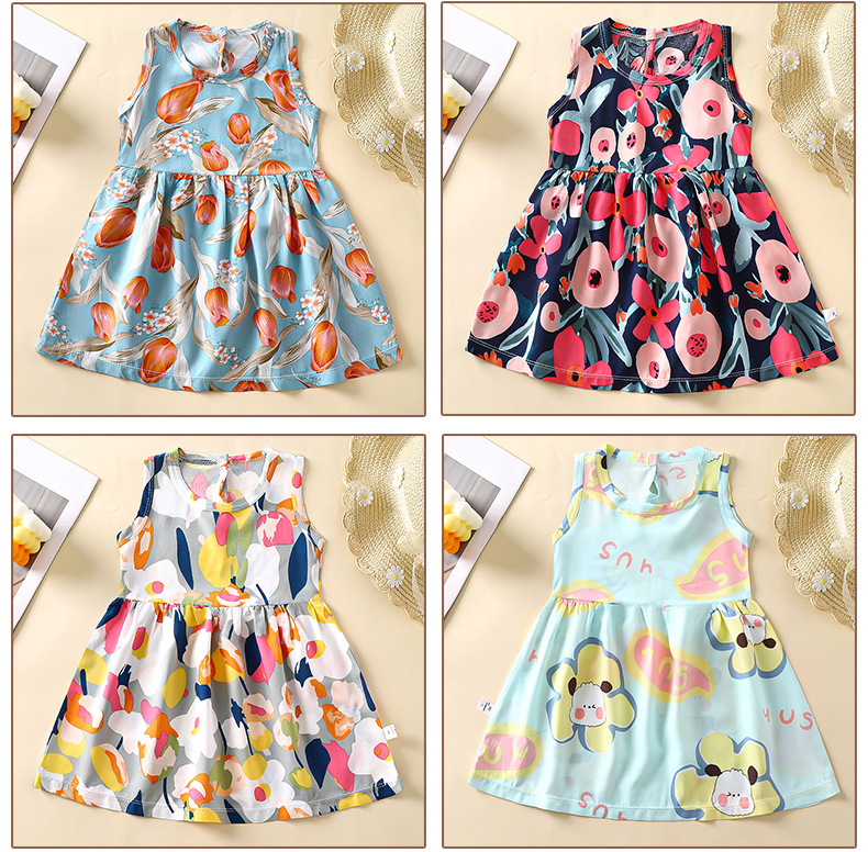 아동 의류 아기 공주 드레스 소녀 드레스 어린이 여름 옷 2024 어린이 스커트 인공 면 실크 A 라인 스커트스토어 가기
