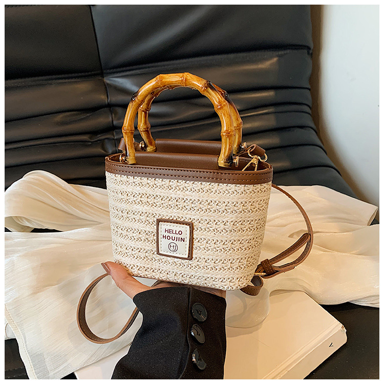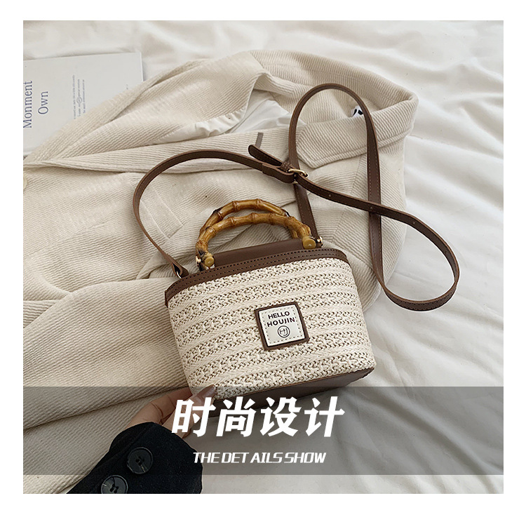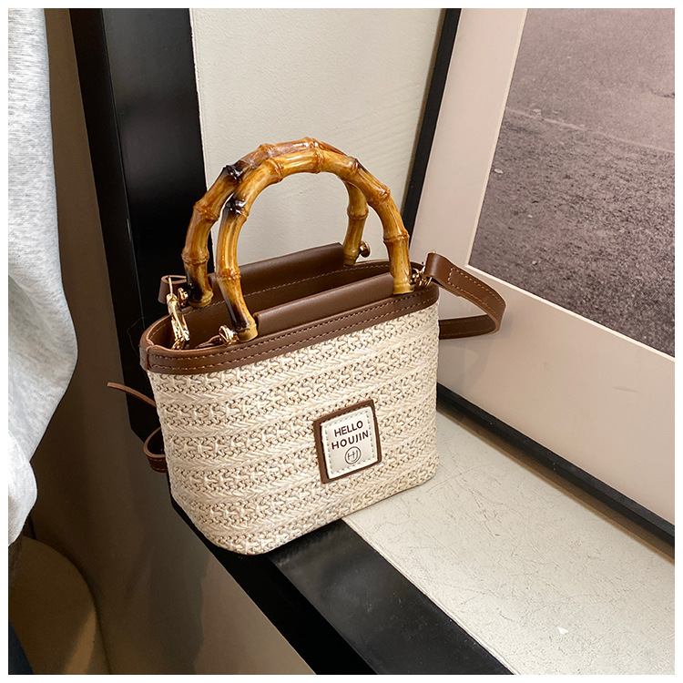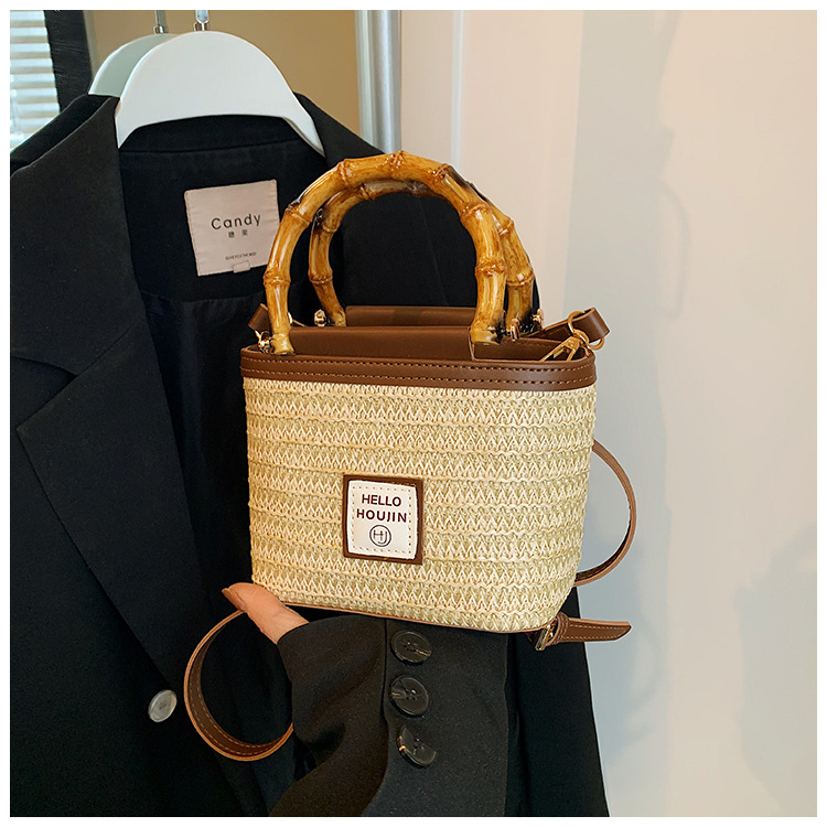 Ins 여름 새로운 밀짚 나무 손잡이 미니 어린이 부모-자식 손으로 들고 비치 백 크로스 바디 백 여성 가방스토어 가기