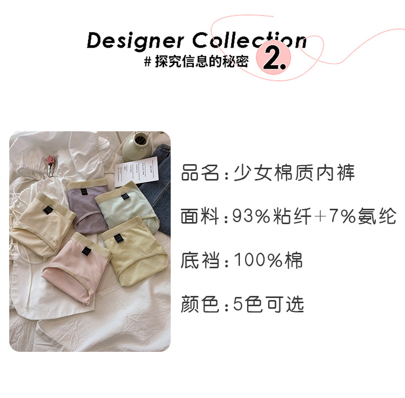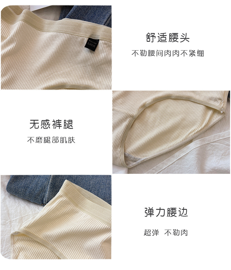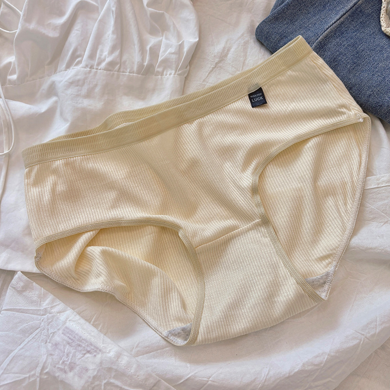 Meinei 원래 간단한 단색 만화 천 라벨 속옷 여성의 중간 허리 엉덩이 통기성 코튼 크로트 학생 브리프