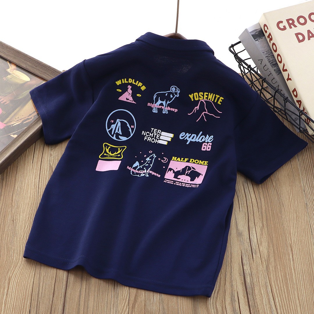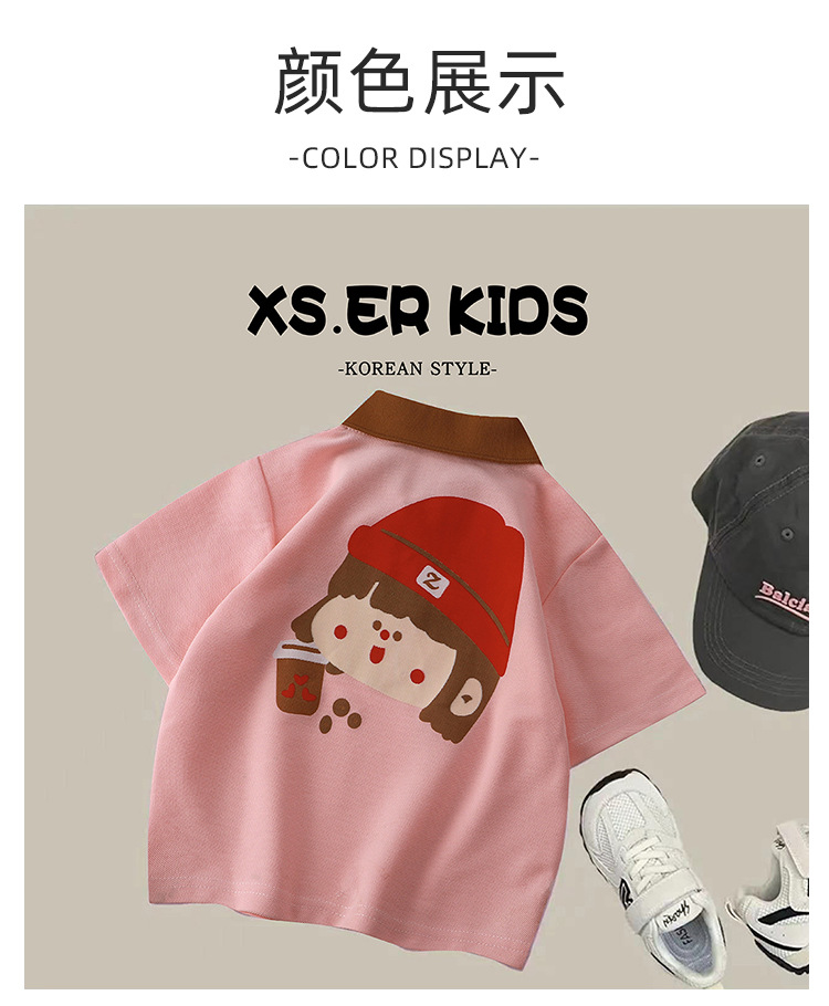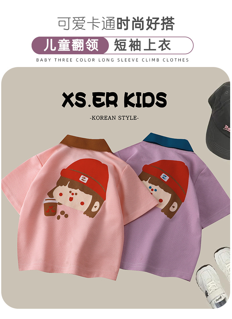 국경을 넘나 드는 새로운 어린이 폴로 셔츠 한국식 2025 여름 캐주얼 반팔 단색 단색 소년 소녀를위한 반팔 티셔츠스토어 가기