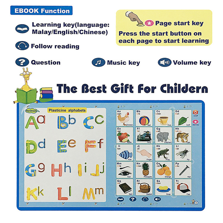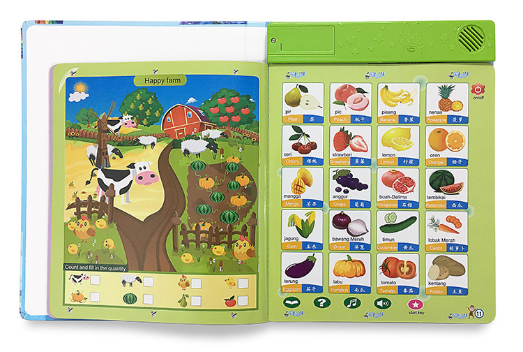 국경 간 새로운 중국 영어 말레이 포인트 읽기 어린이 오디오 북 조기 교육 교육 완구 스마트 전자 책
