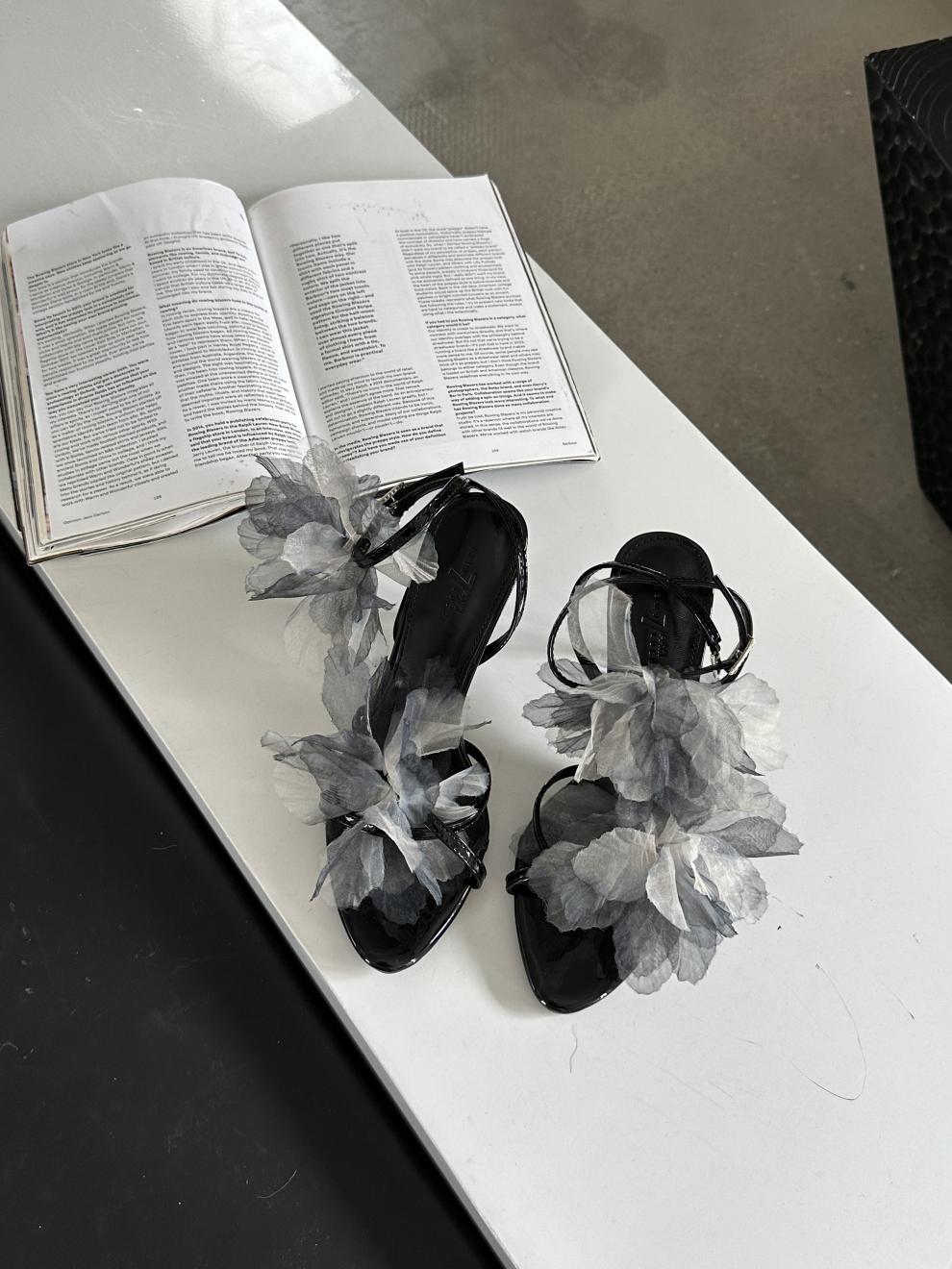 봄과 가을 2024 새로운 프랑스 스타일 우아한 틈새 꽃 요정 뾰족한 발가락 얇은 뒤꿈치 원피스 버클스토어 가기