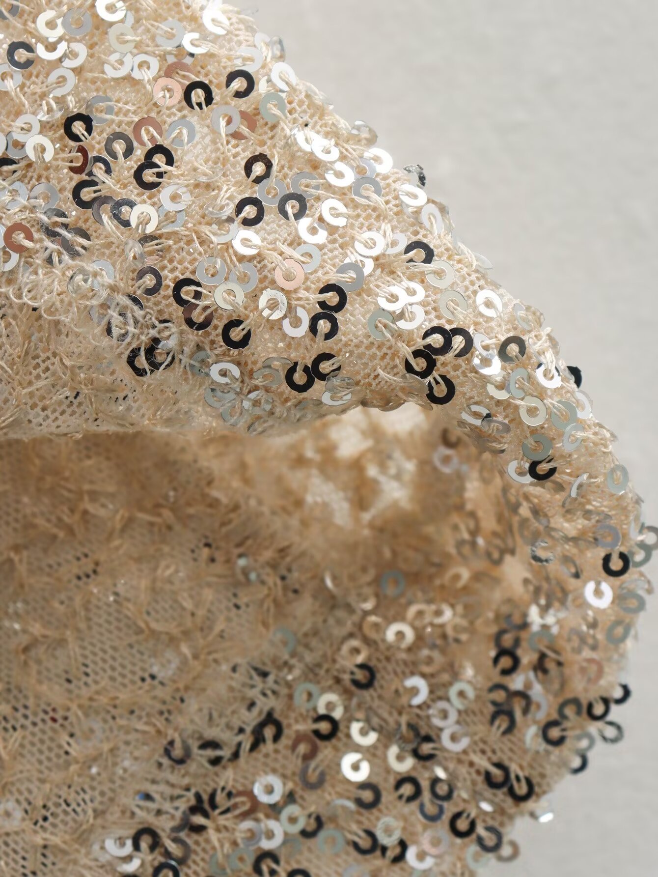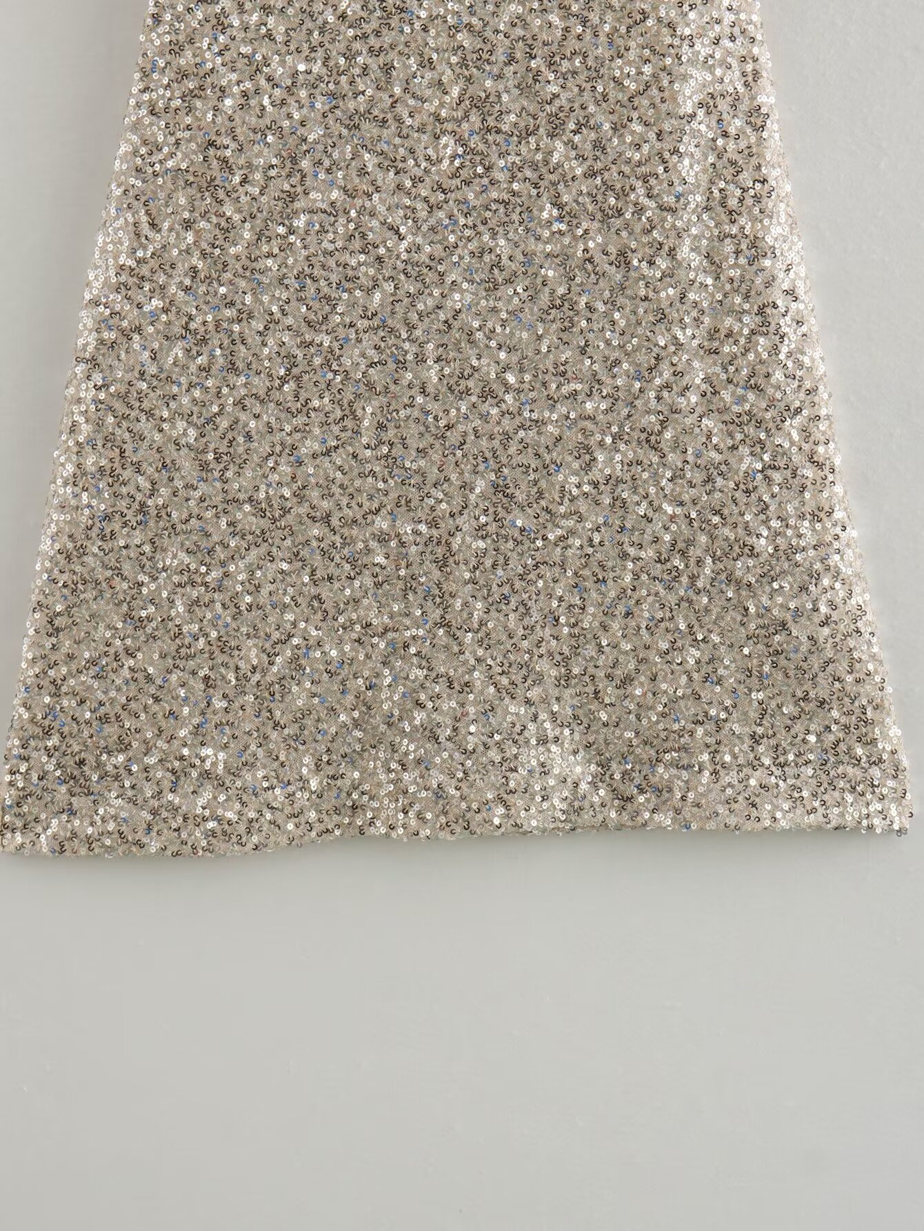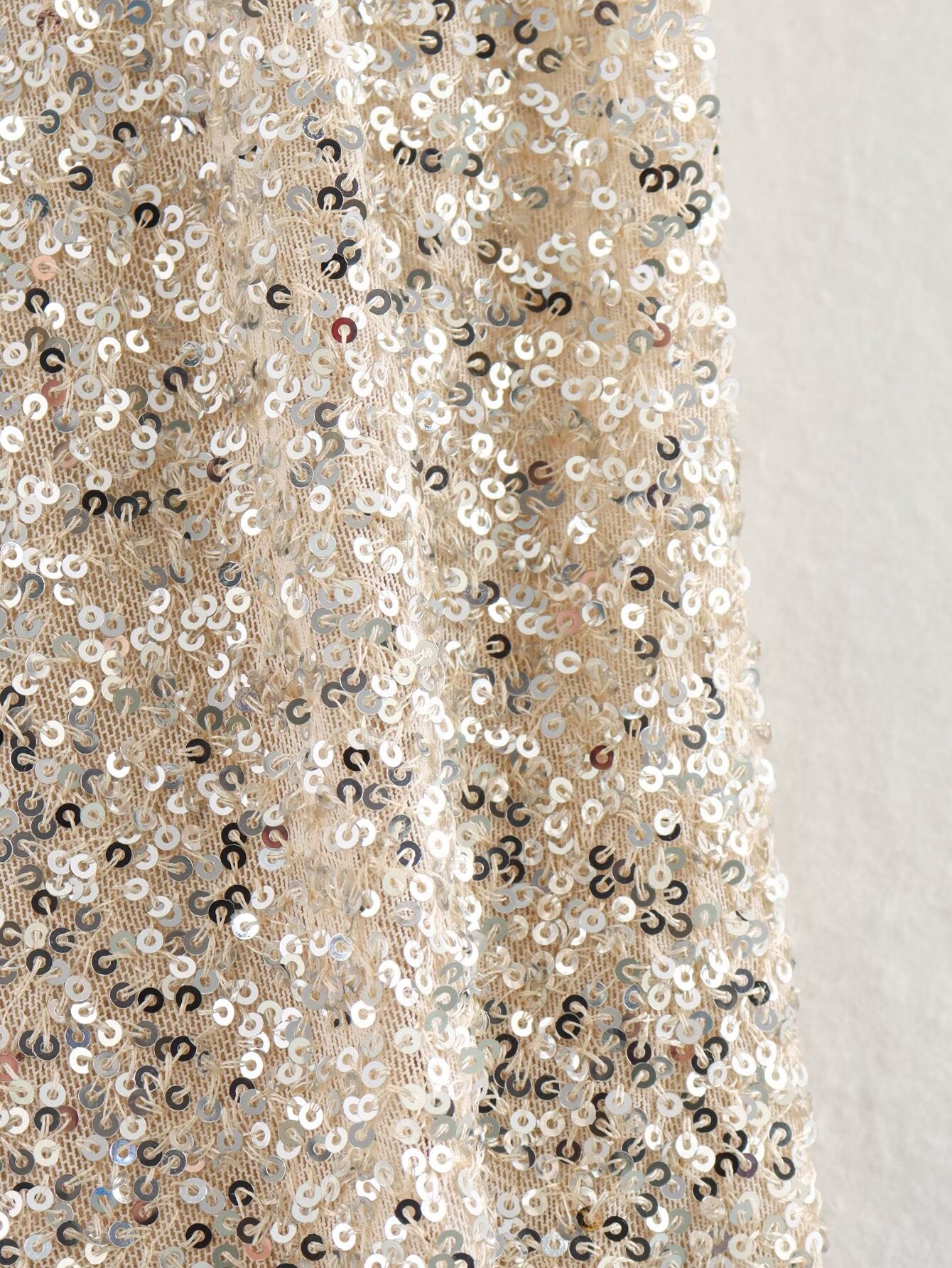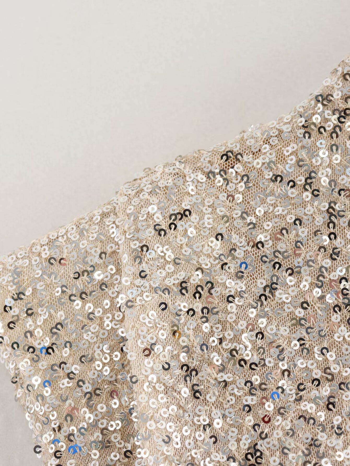 2024 년 새로운 유럽과 미국의 대외 무역 여름 여성 크루 넥 세퀸 슬림 핏 어깨 패드 디자인 엉덩이 치마 원피스 여성 B8