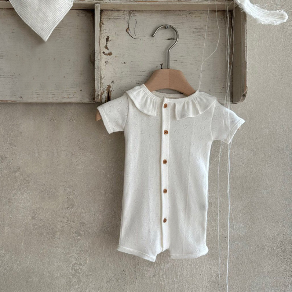 아기 옷 여름 얇은 클래스 중공 사랑 작은 연꽃 잎 칼라 가방 의류 소녀 아기 소녀 아기 등반 옷