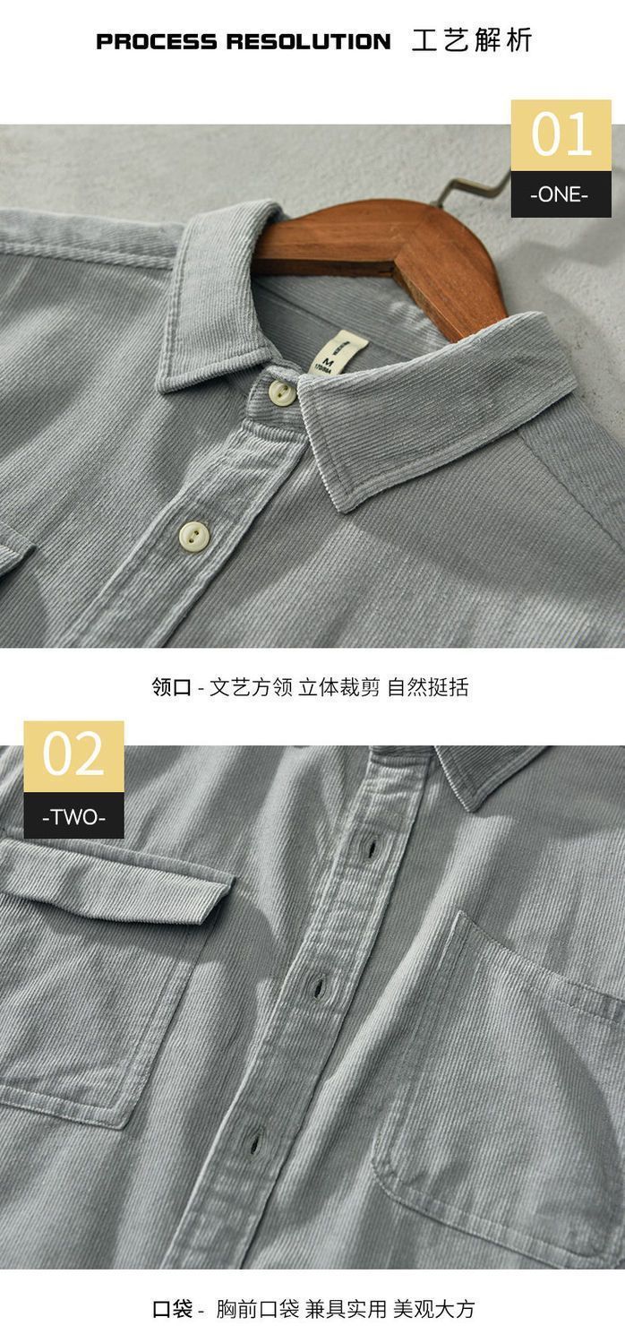 레트로 코듀로이 셔츠 남성 긴팔 재킷 봄, 가을 새로운 홍콩 스타일 루즈 캐주얼 다용도 작업복 남성 셔츠
