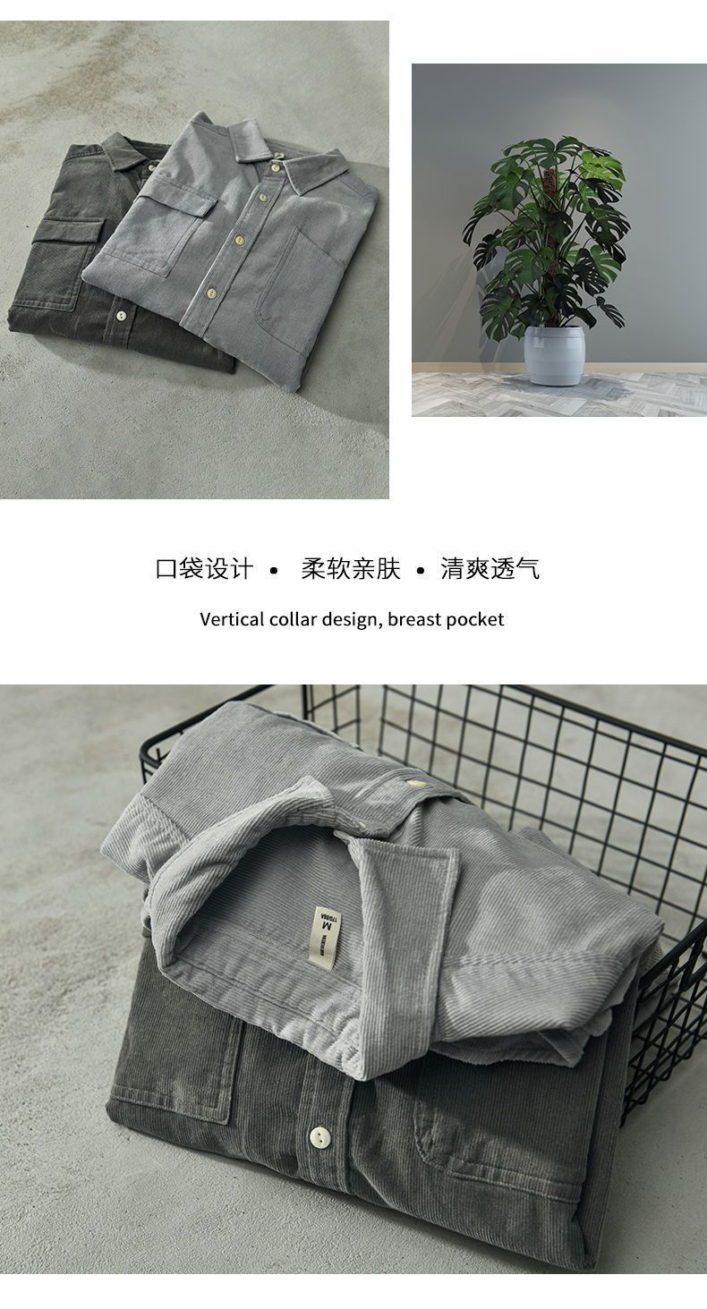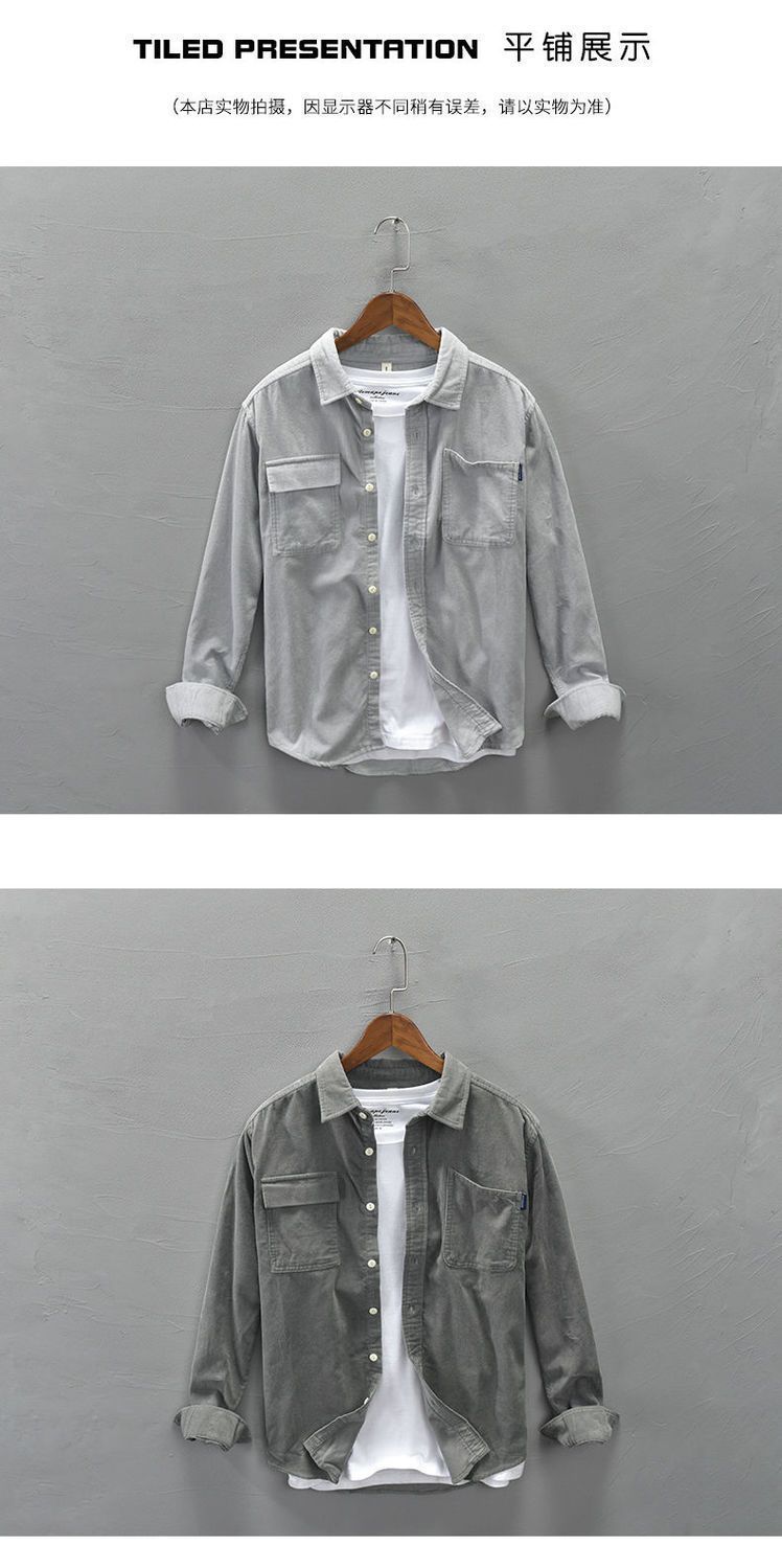 레트로 코듀로이 셔츠 남성 긴팔 재킷 봄, 가을 새로운 홍콩 스타일 루즈 캐주얼 다용도 작업복 남성 셔츠스토어 가기