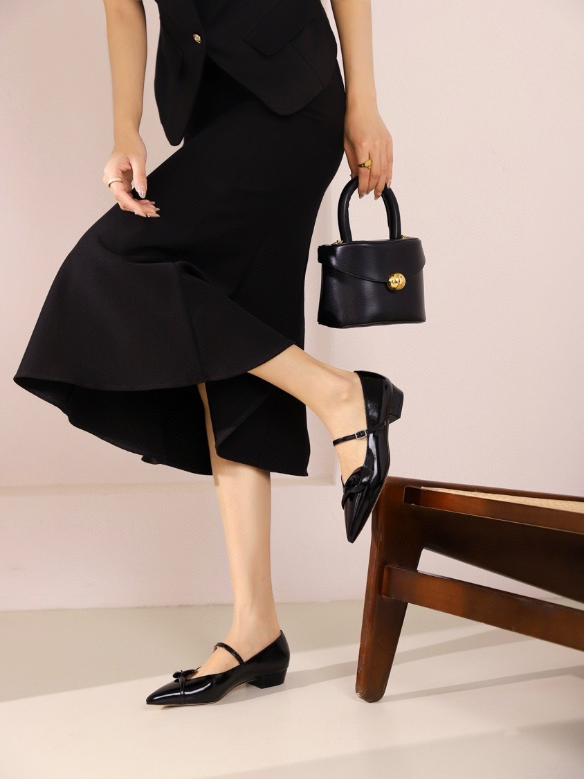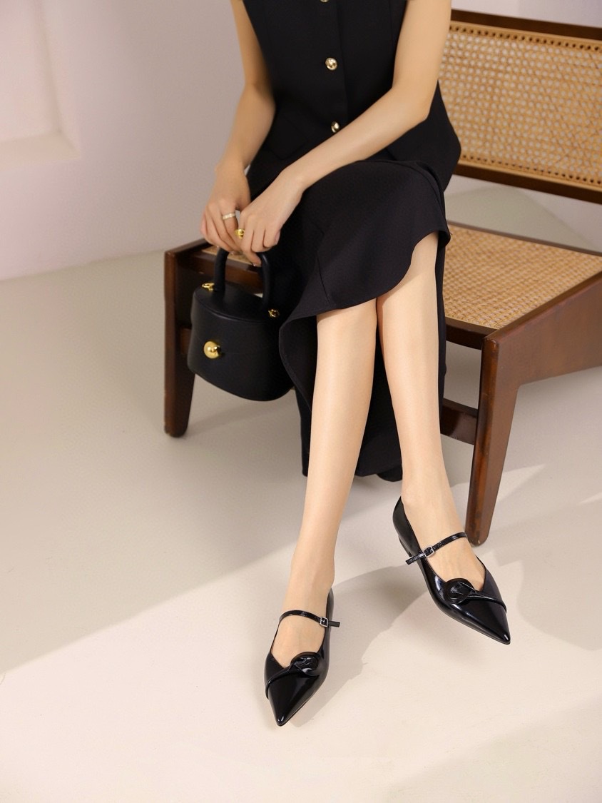 새로운 중국 틈새 프랑스 싱글 신발 봄 2024 새로운 칼라 젠틀 포인팅 플랫 메리 제인 신발스토어 가기