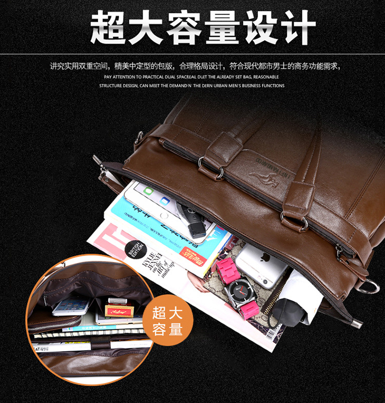 브랜드 남성 핸드백 남성 가죽 가방 수평 대용량 비즈니스 문서 단일 어깨 크로스 바디 가방 컴퓨터 가방