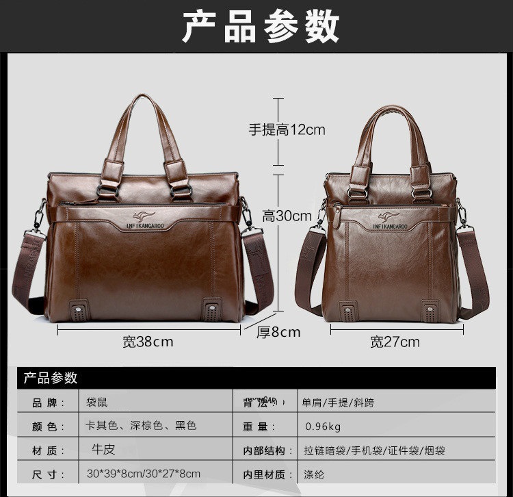 브랜드 남성 핸드백 남성 가죽 가방 수평 대용량 비즈니스 문서 단일 어깨 크로스 바디 가방 컴퓨터 가방스토어 가기