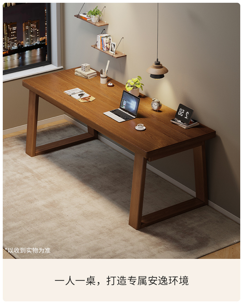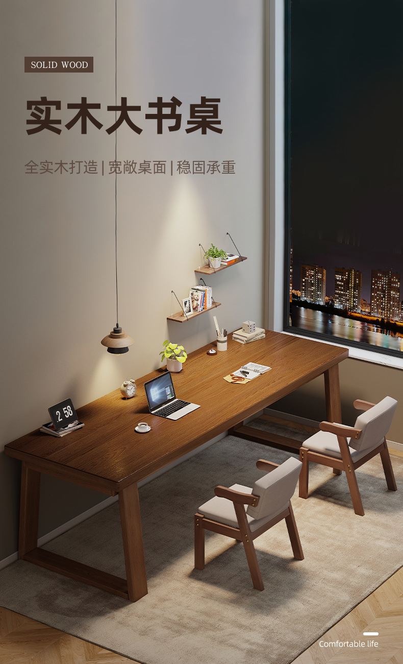 双人实木腿书桌家用学生学习电脑桌长桌子工作台办公桌卧室写字桌