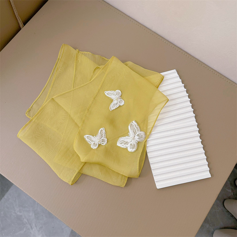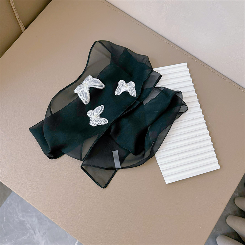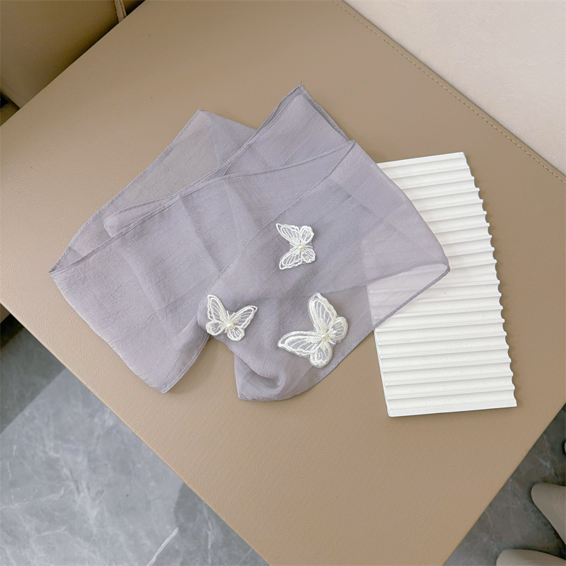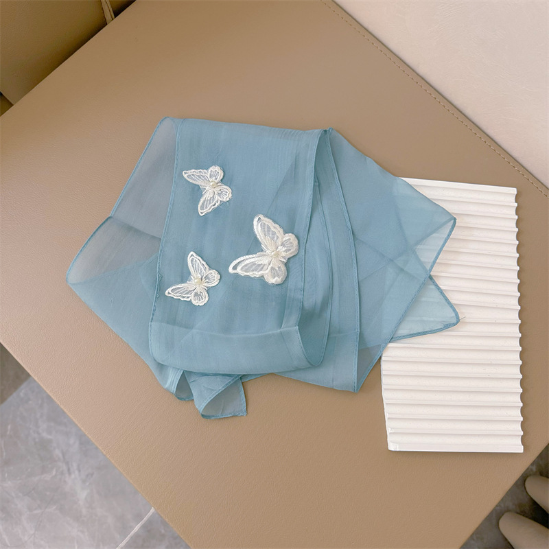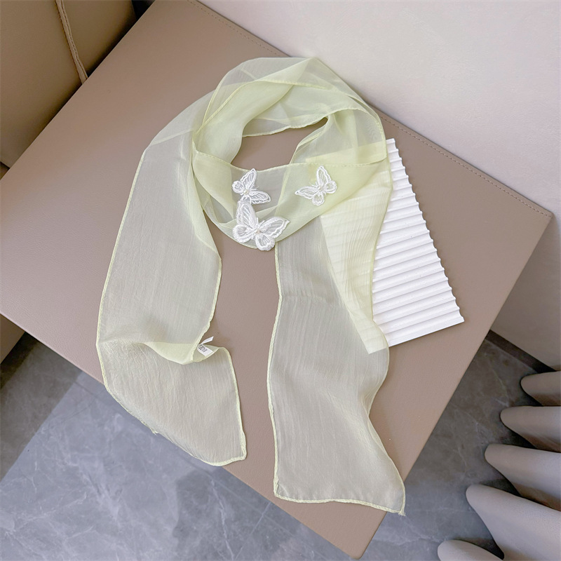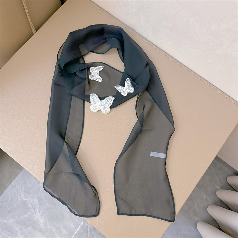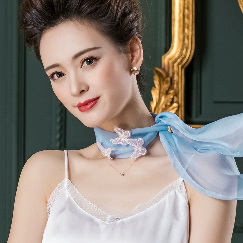 Bull/Boniu 한국 스카프 나비 긴 작은 스카프 여자 올 매치 봄과 가을 얇은 단색 리본 얇은 스카프