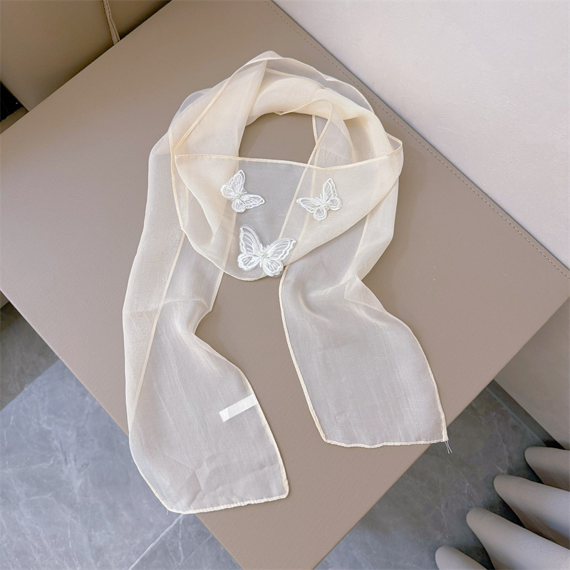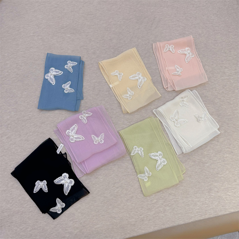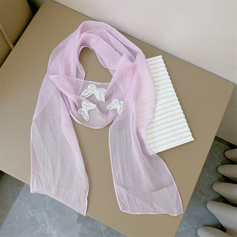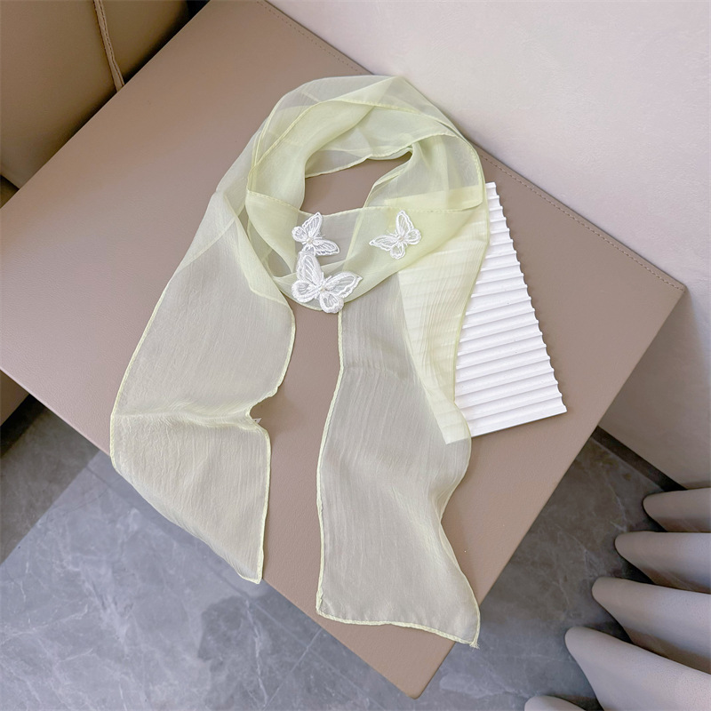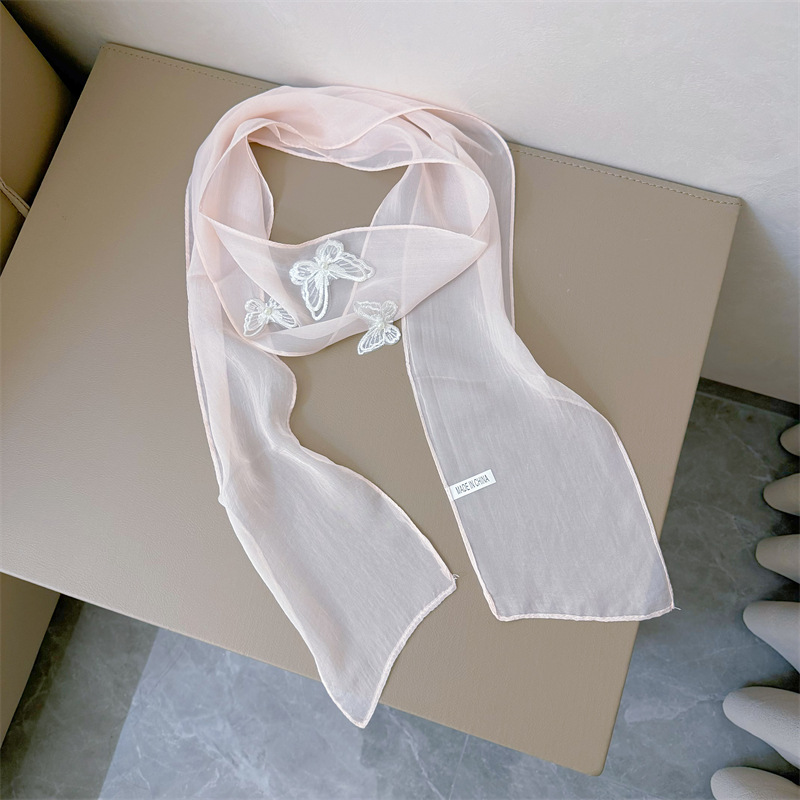 Bull/Boniu 한국 스카프 나비 긴 작은 스카프 여자 올 매치 봄과 가을 얇은 단색 리본 얇은 스카프스토어 가기