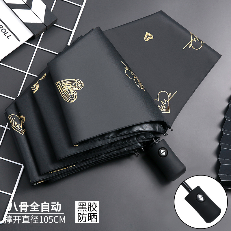 우산 사랑 크라운 맑고 비 이중 사용 우산 자동 8 본 브론징 깃털 햇빛 자외선 접히는 검은 접착제 우산