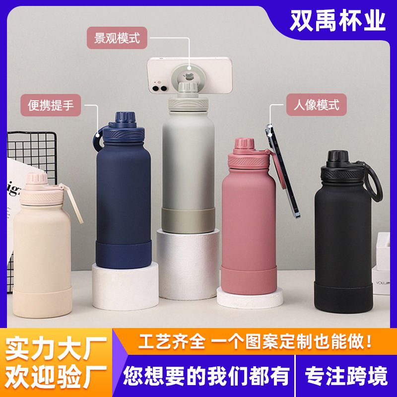 국경 304 스테인레스 스틸 보온병 컵 자기 흡입은 휴대 전화 홀더 스포츠 냄비 야외 대용량 등반 주전자를 넣을 수 있습니다.스토어 가기