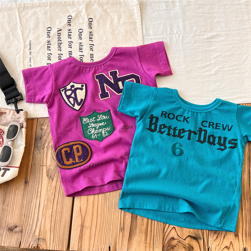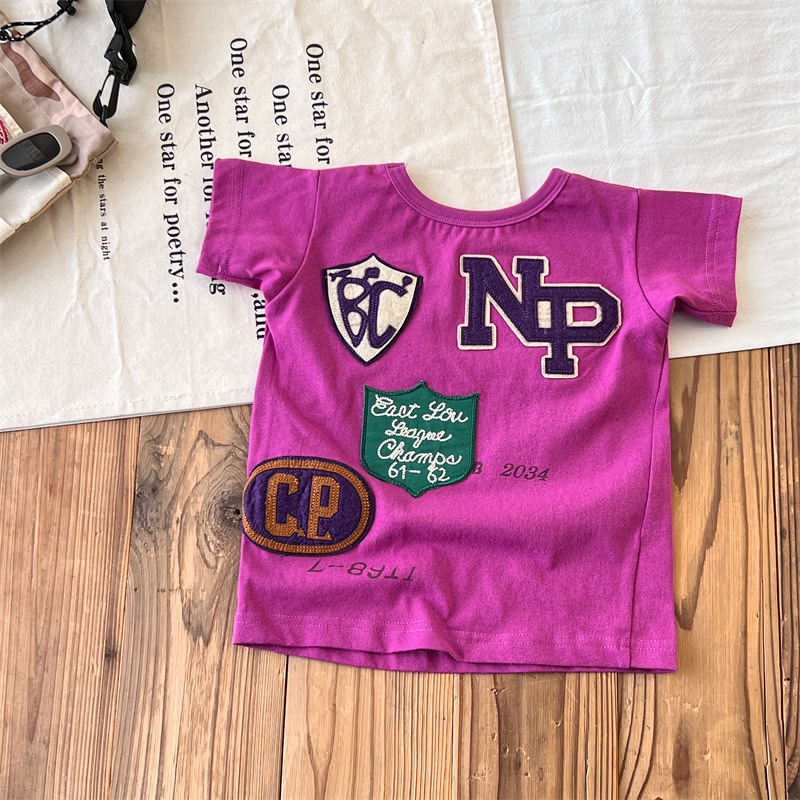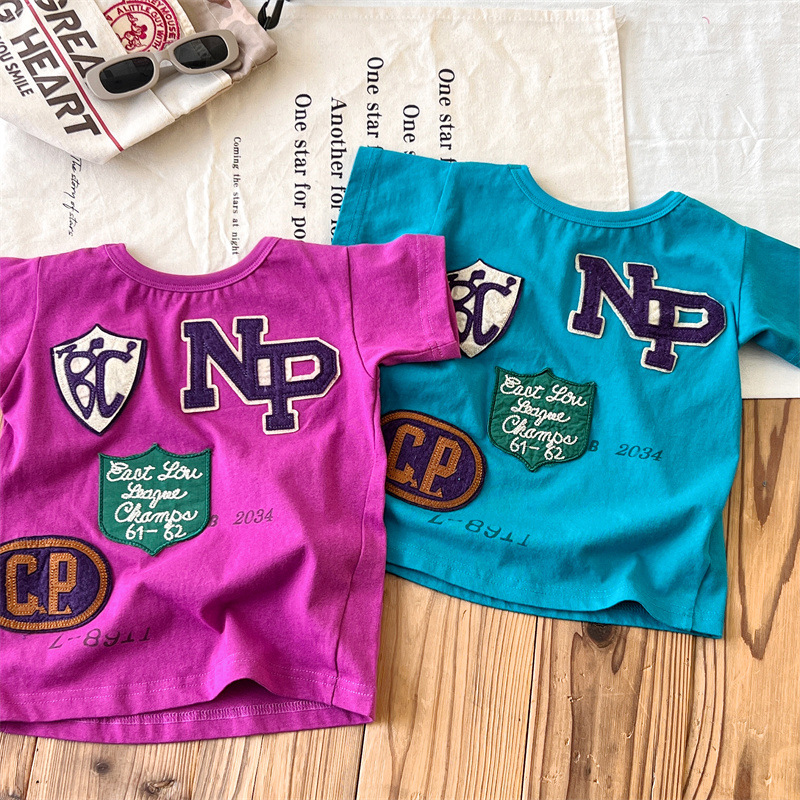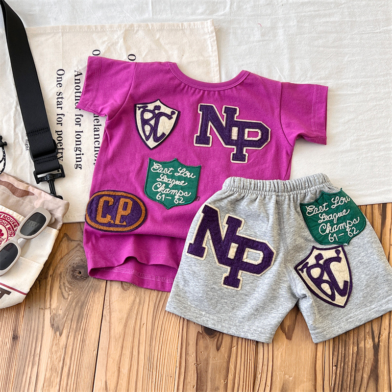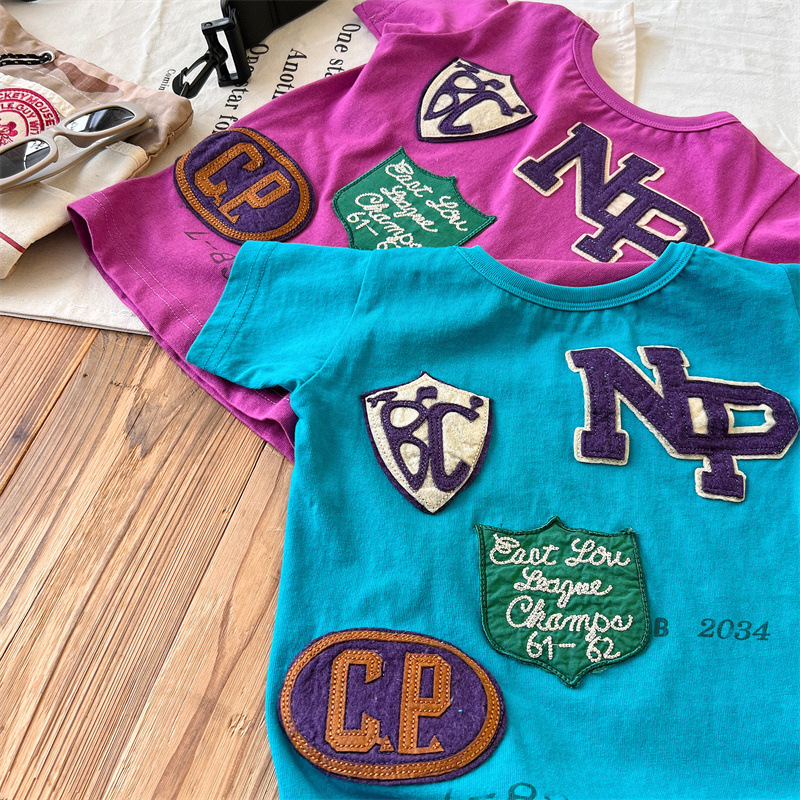[소량의 재고] 일본 아동복 중세 DD 어린이 배지 티셔츠 쥬얼 반팔 반바지