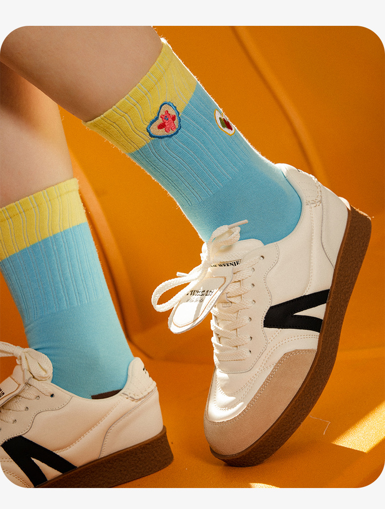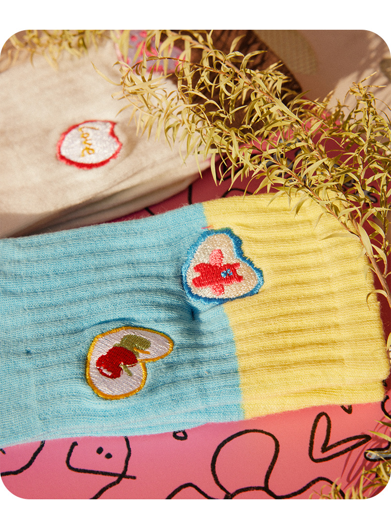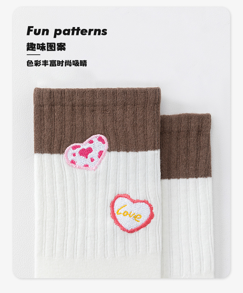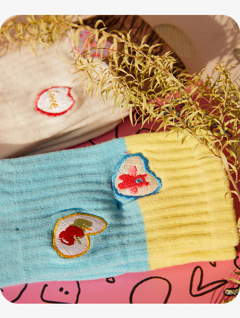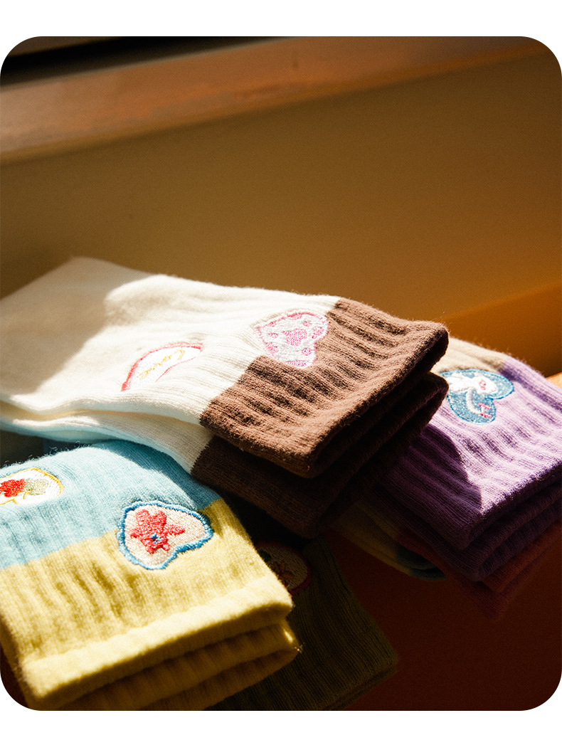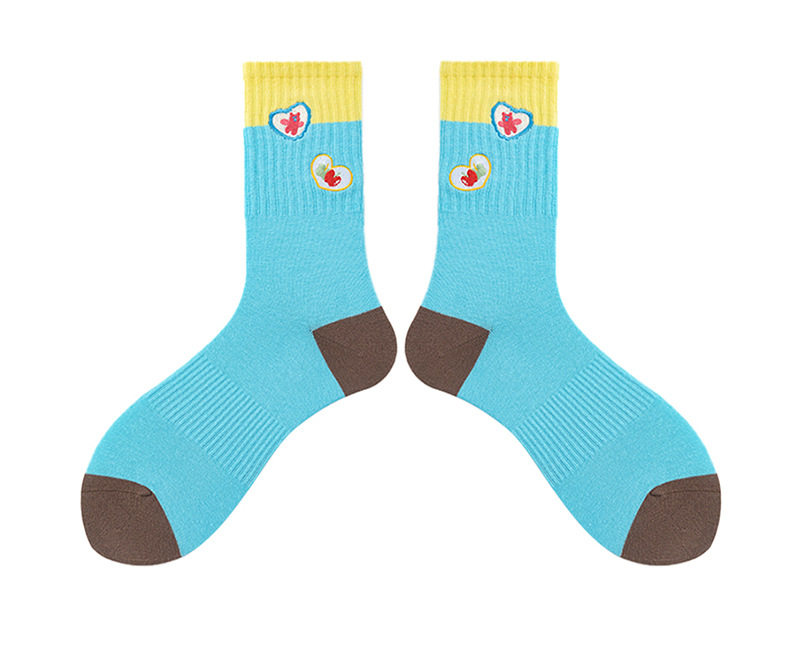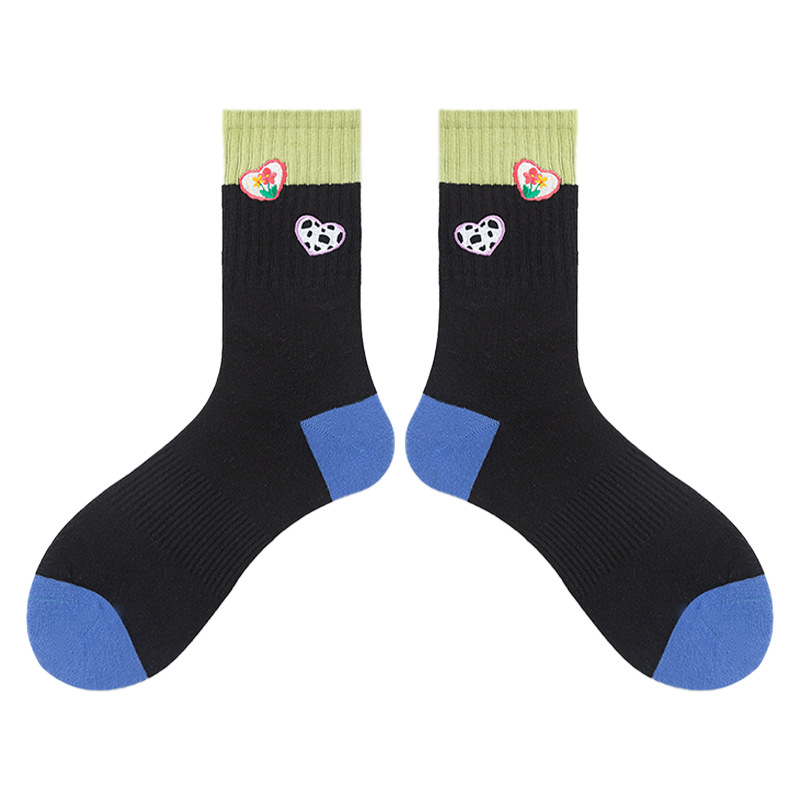 2024 봄과 여름 새로운 사랑 자수 튜브 양말 여성 컬러 도파민 조수 양말 간단한 한국면 양말 땀 흡수