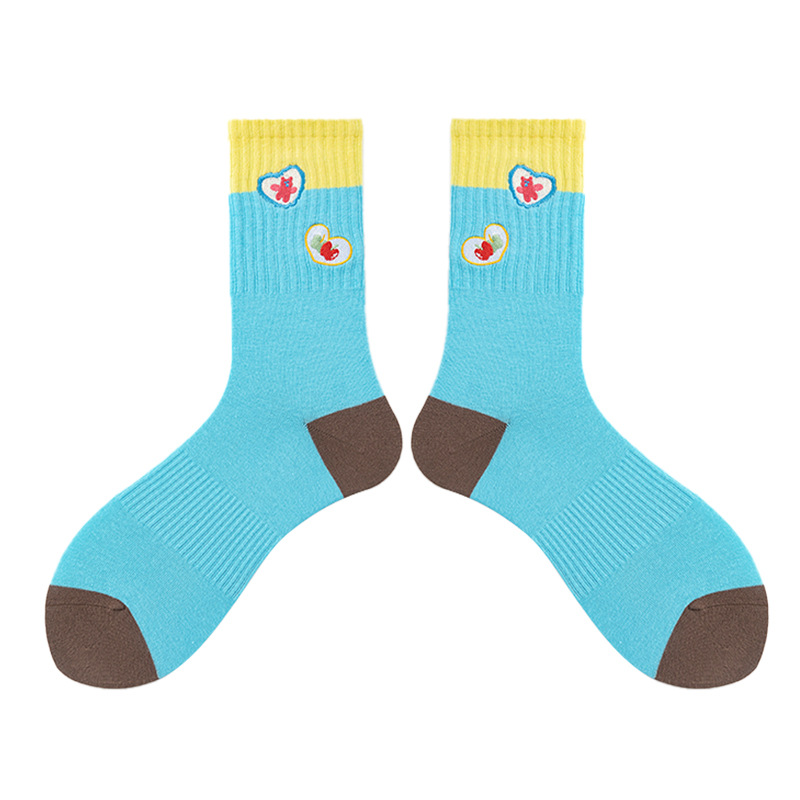 2024 봄과 여름 새로운 사랑 자수 튜브 양말 여성 컬러 도파민 조수 양말 간단한 한국면 양말 땀 흡수스토어 가기