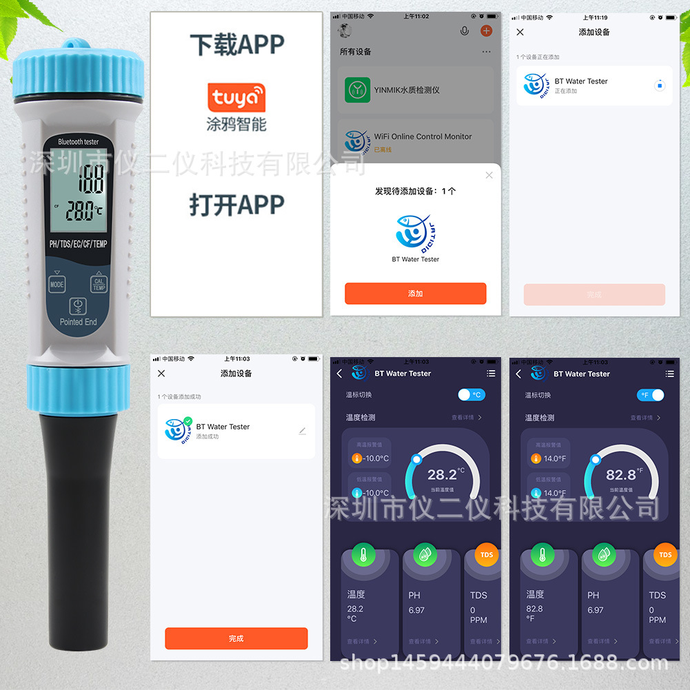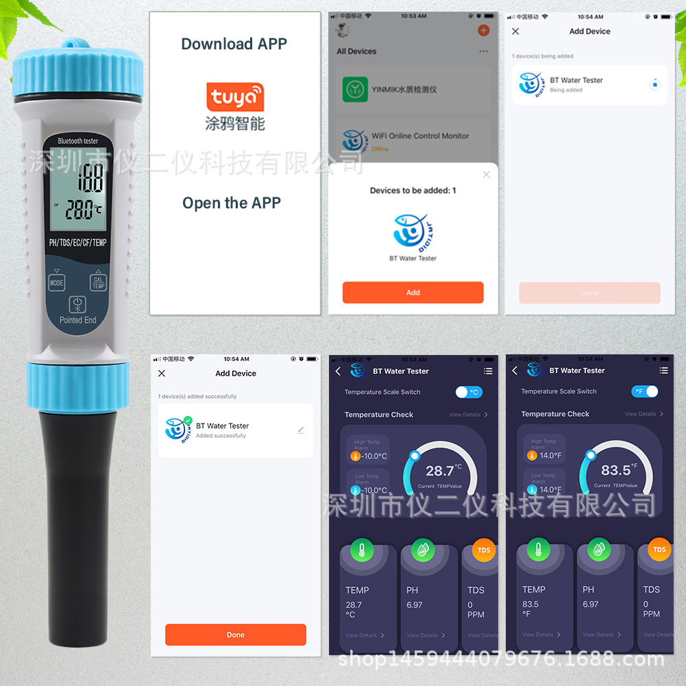 낙서 5 1 물 품질 탐지기 반죽 PH 펜 우유 수경 EC 미터 TDS/CF 온도 pH 테스터스토어 가기