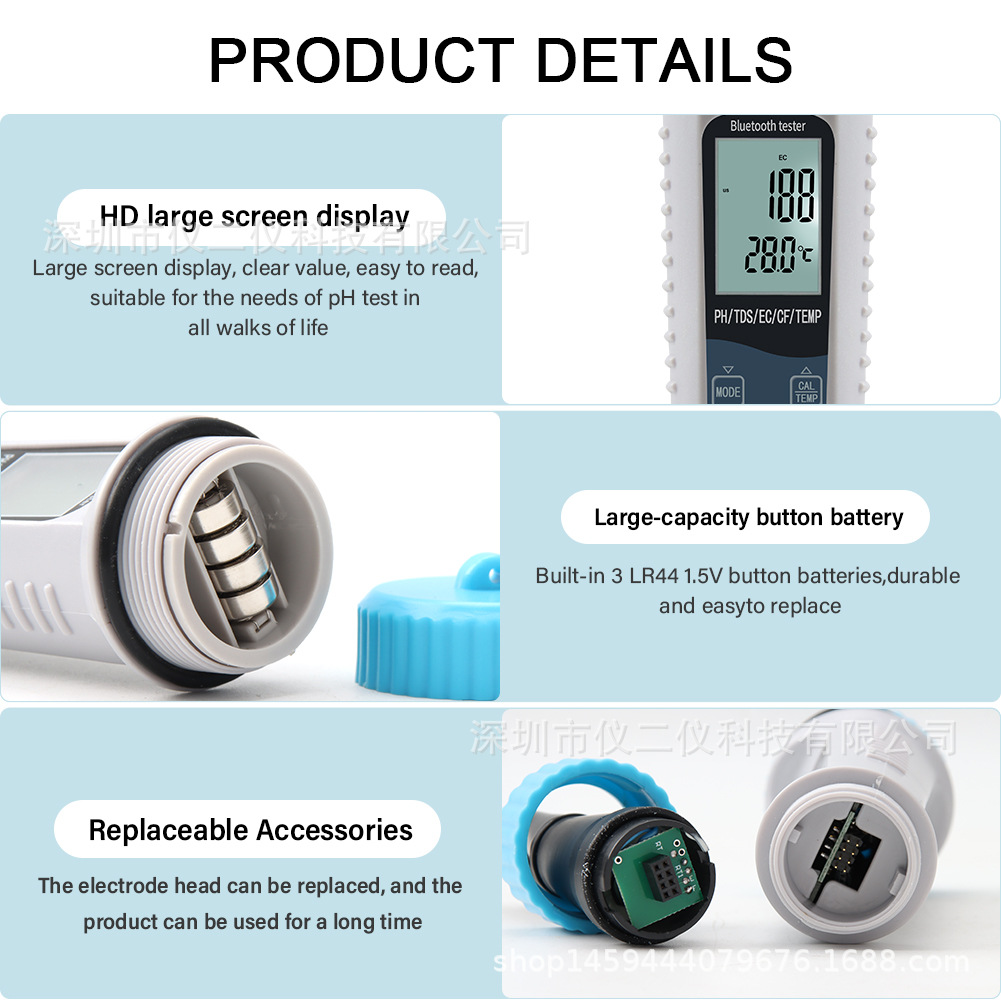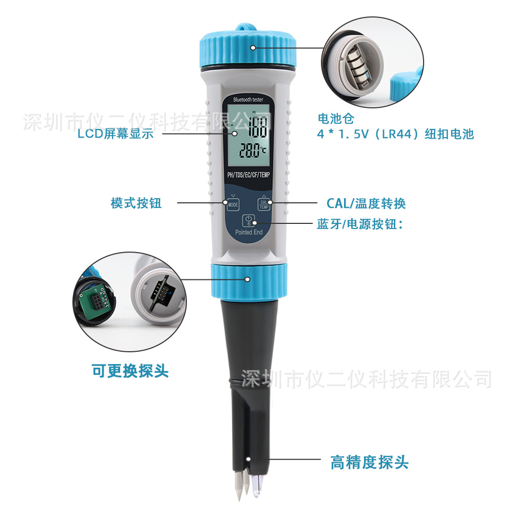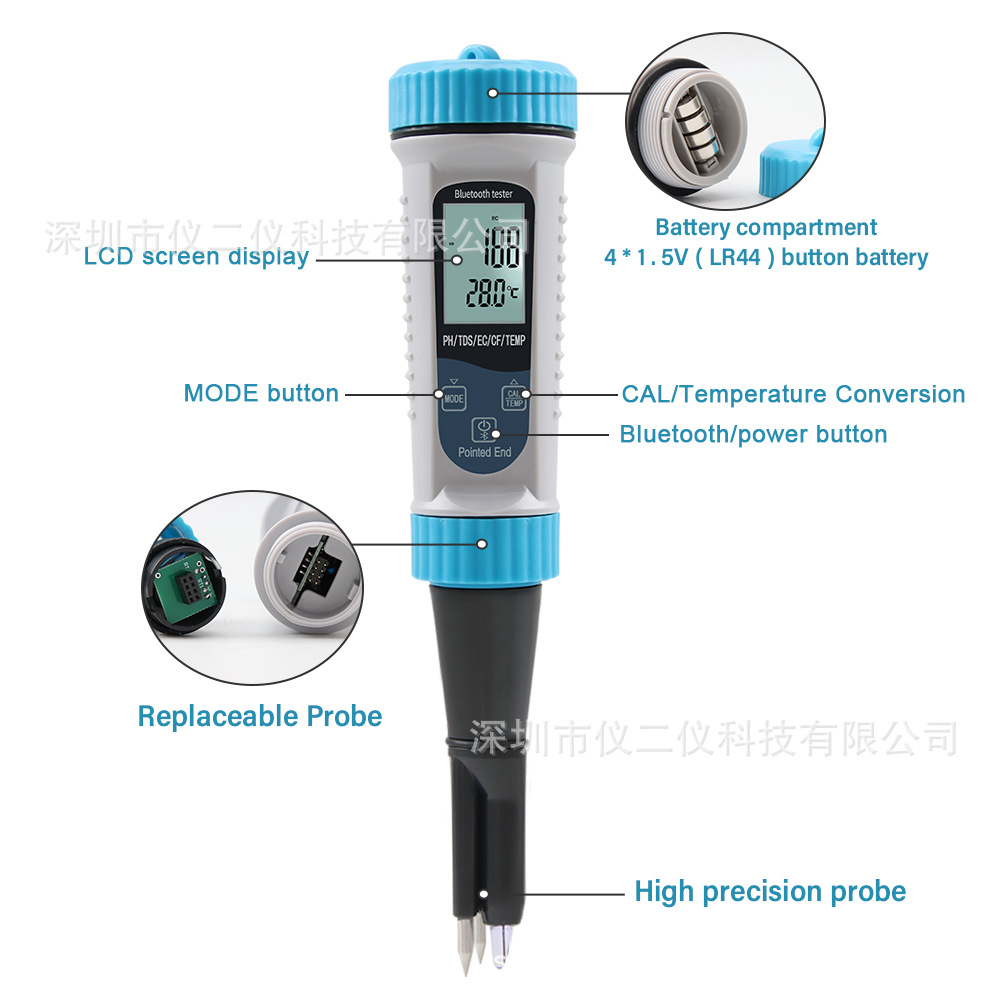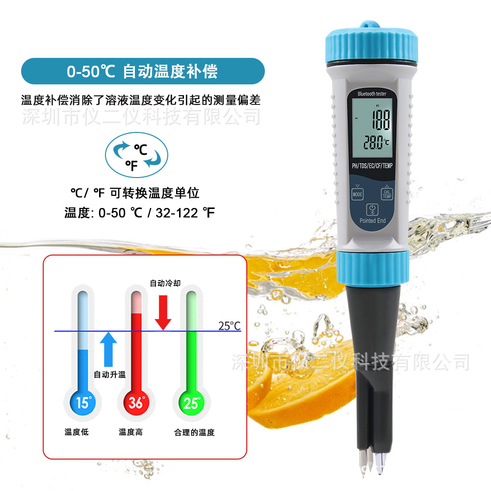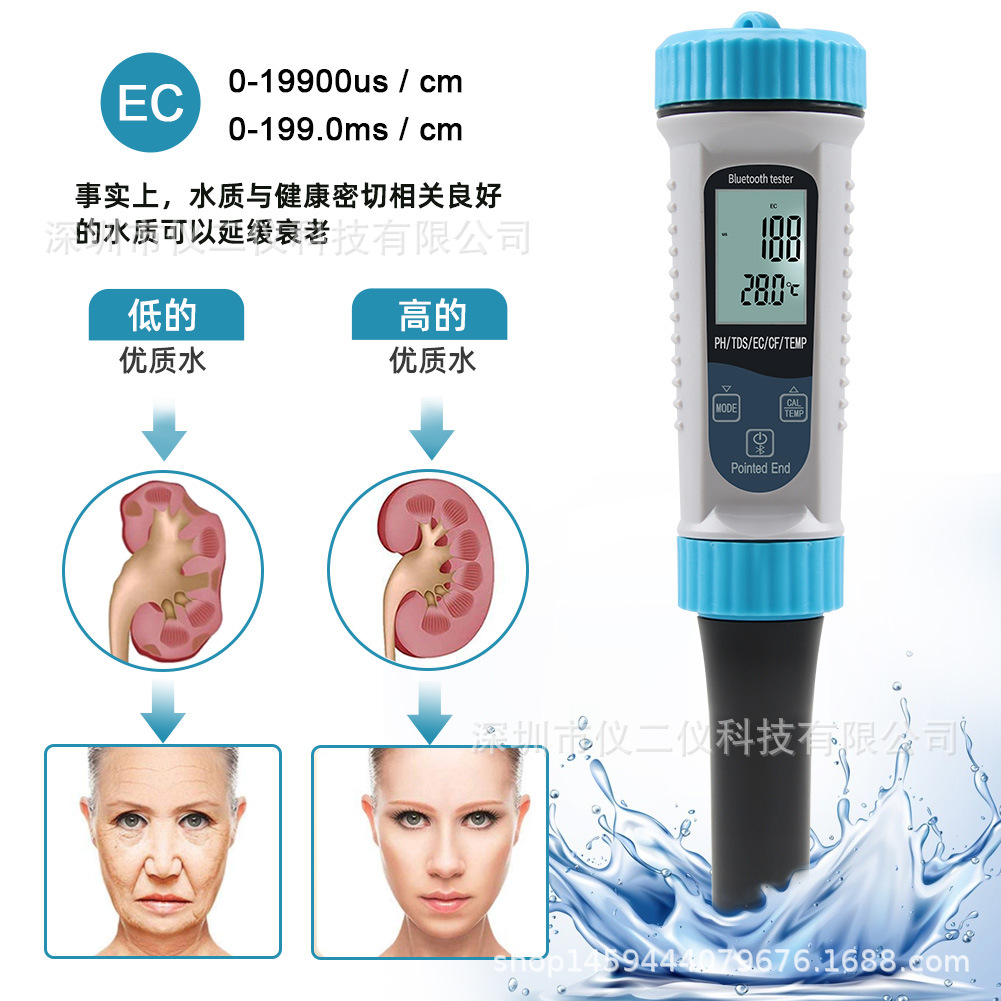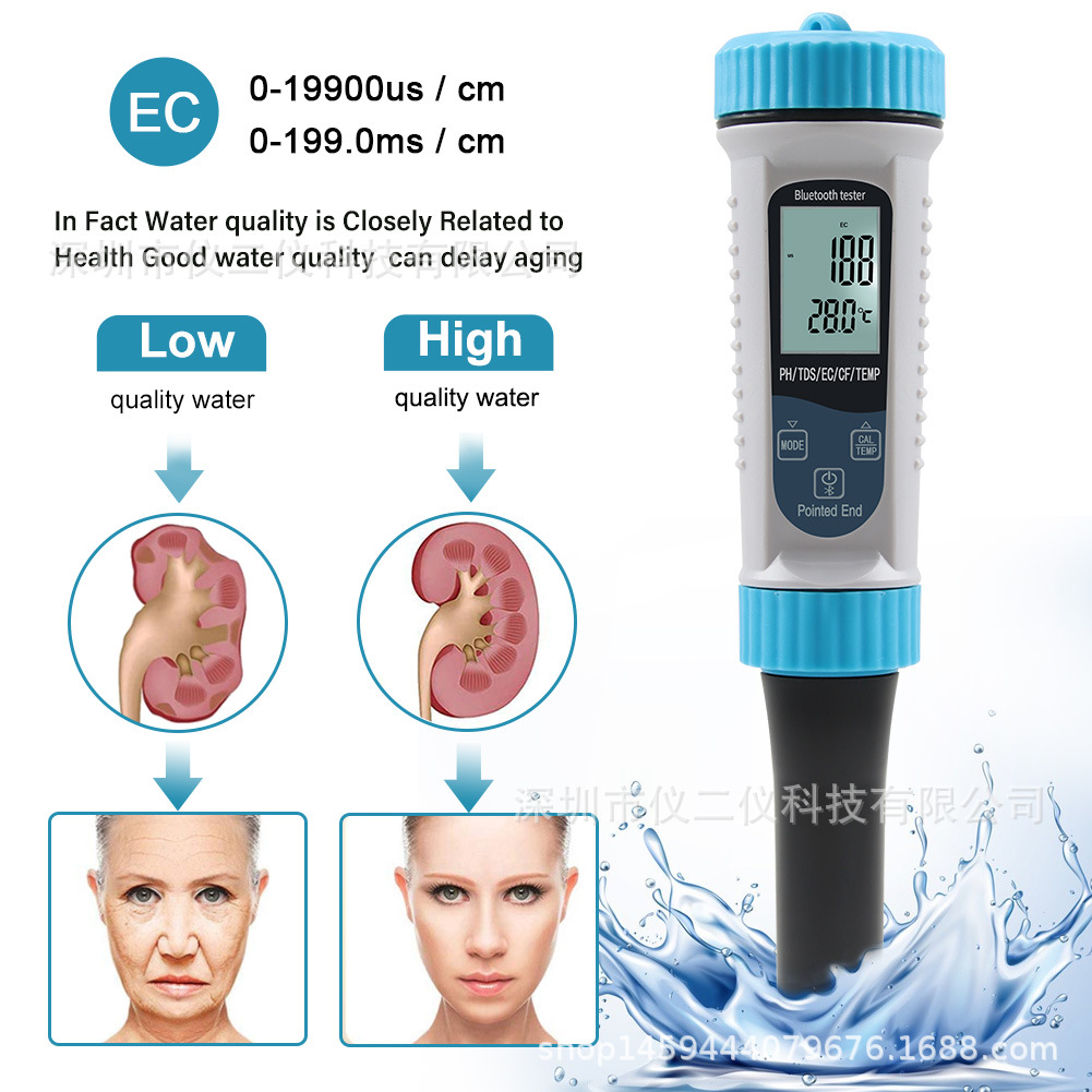 낙서 5 1 물 품질 탐지기 반죽 PH 펜 우유 수경 EC 미터 TDS/CF 온도 pH 테스터