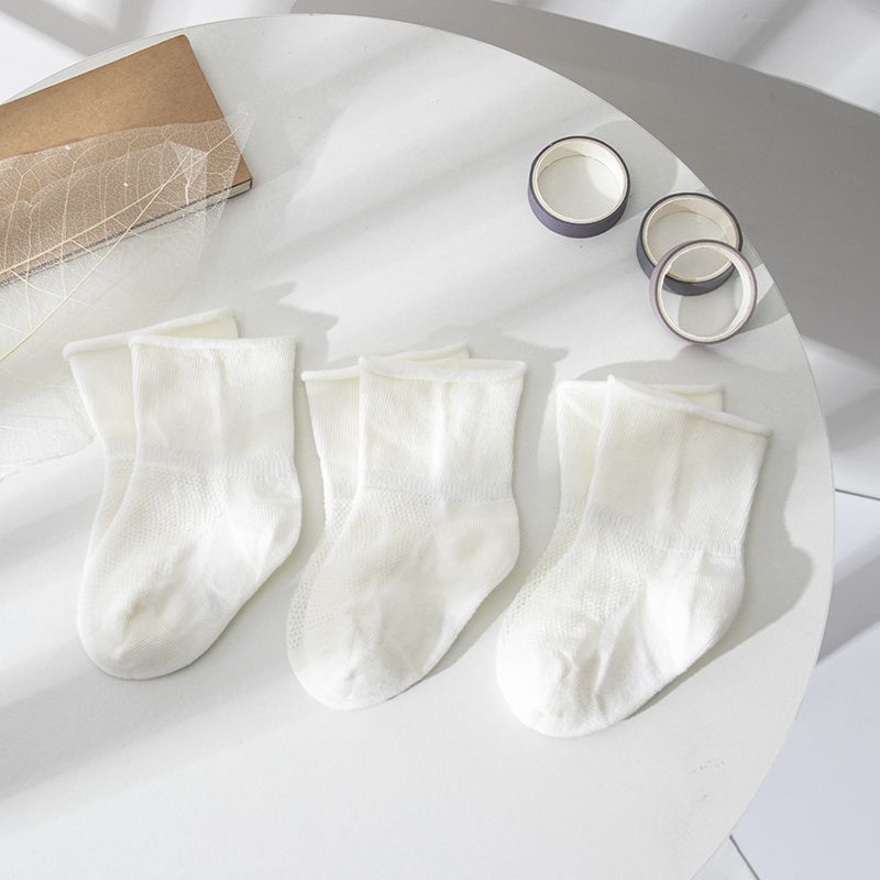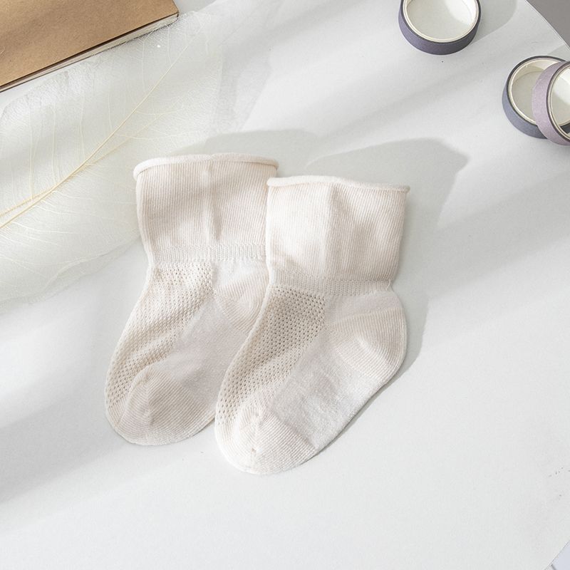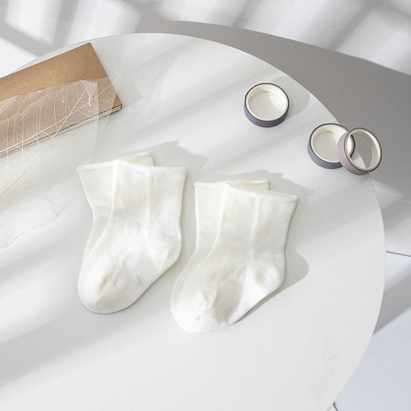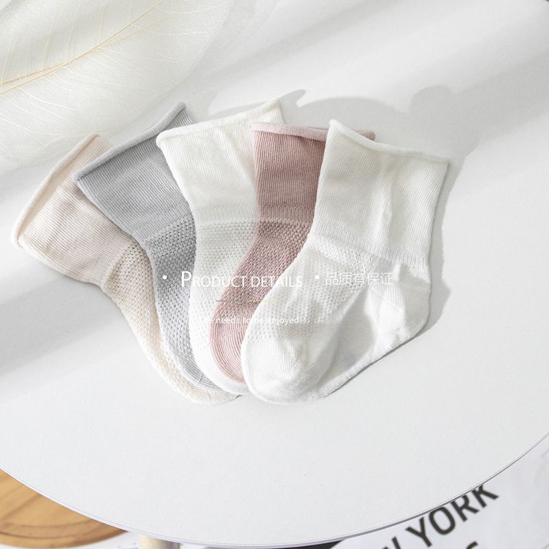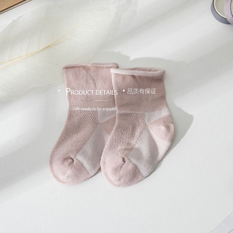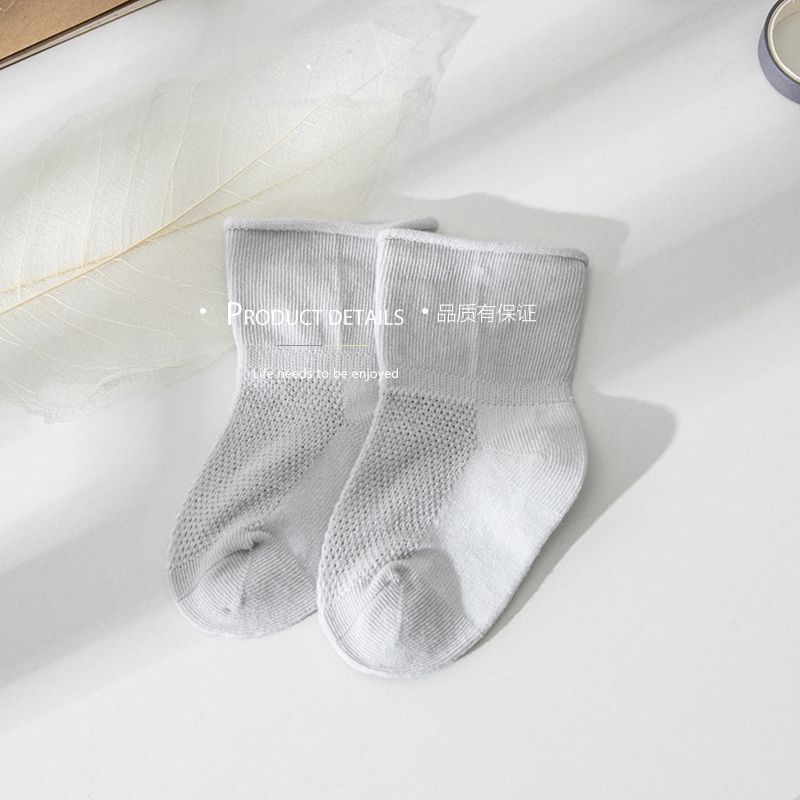 宝宝日系泡泡口中筒袜春夏薄款网眼女棉袜甜美蝴蝶结跨境婴儿袜子
