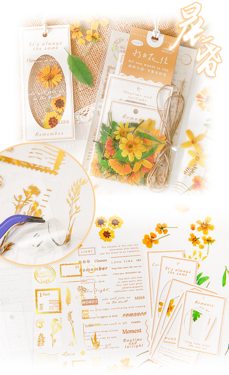 무란 스티커 소재 팩 영리화신 펫 스티커 레트로 식물 문예 스타일 찢어 쓰는 수첩 소재 베이스 페이퍼