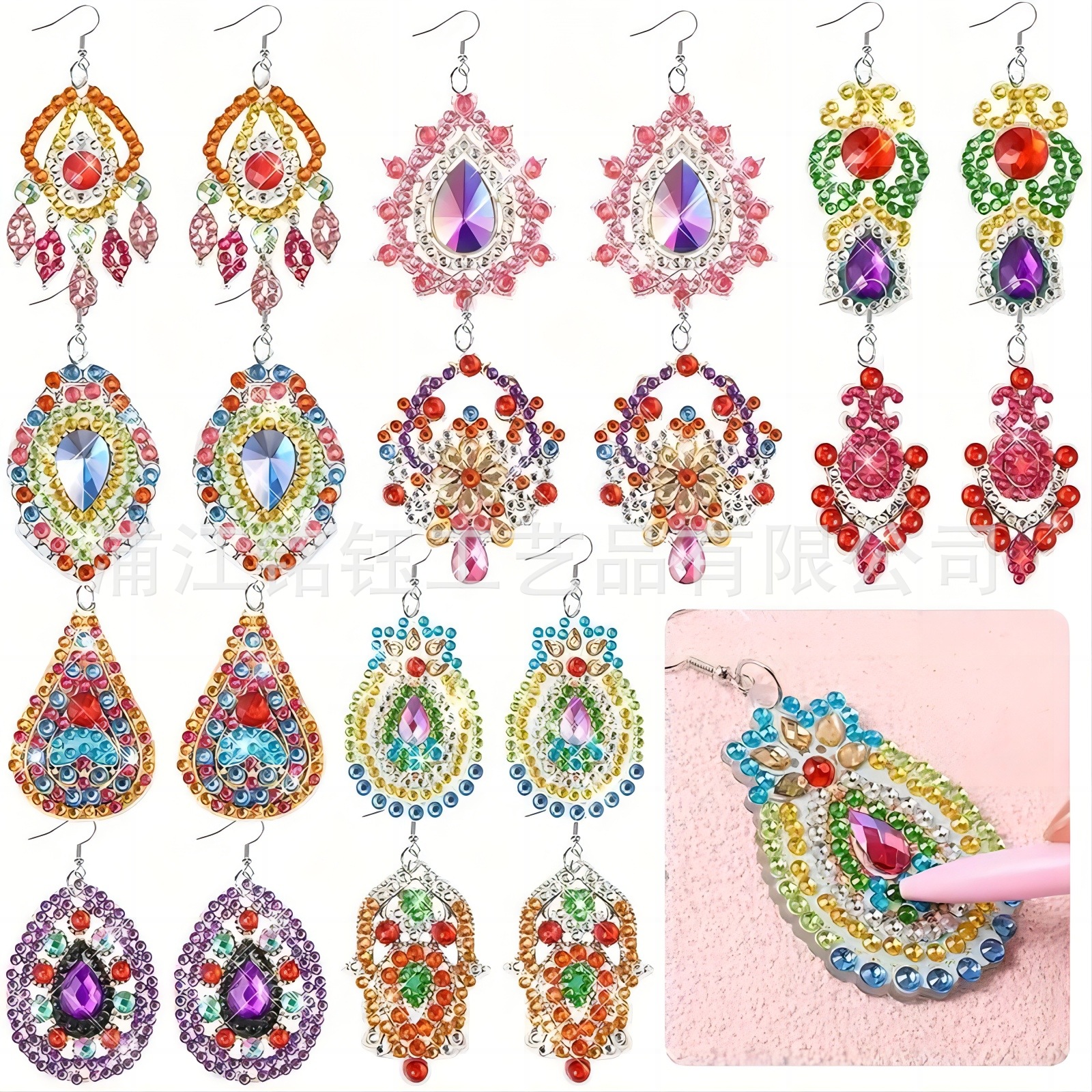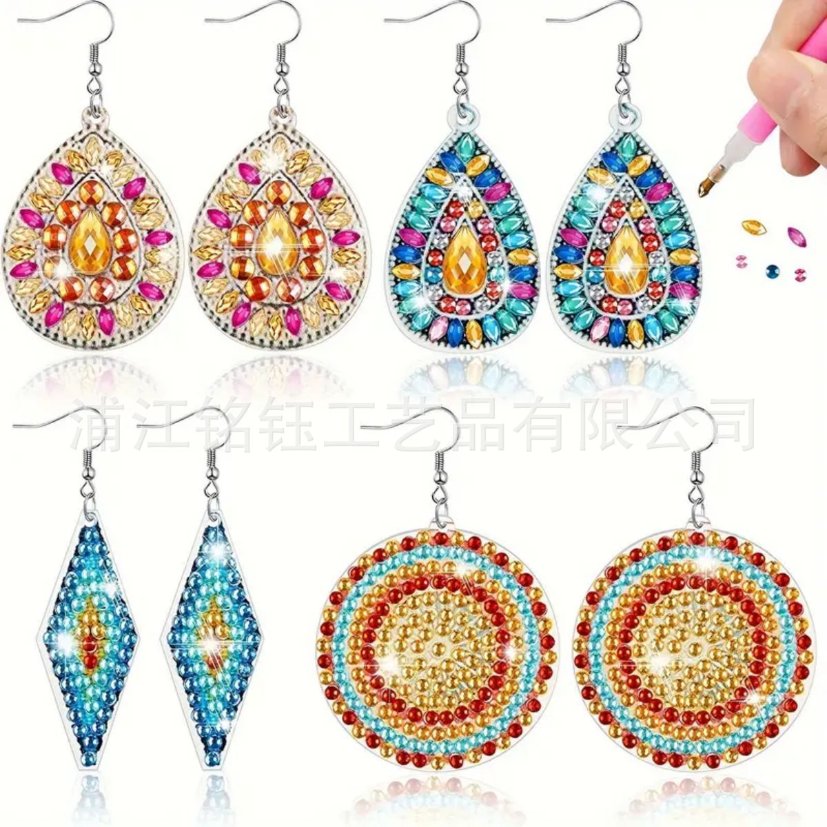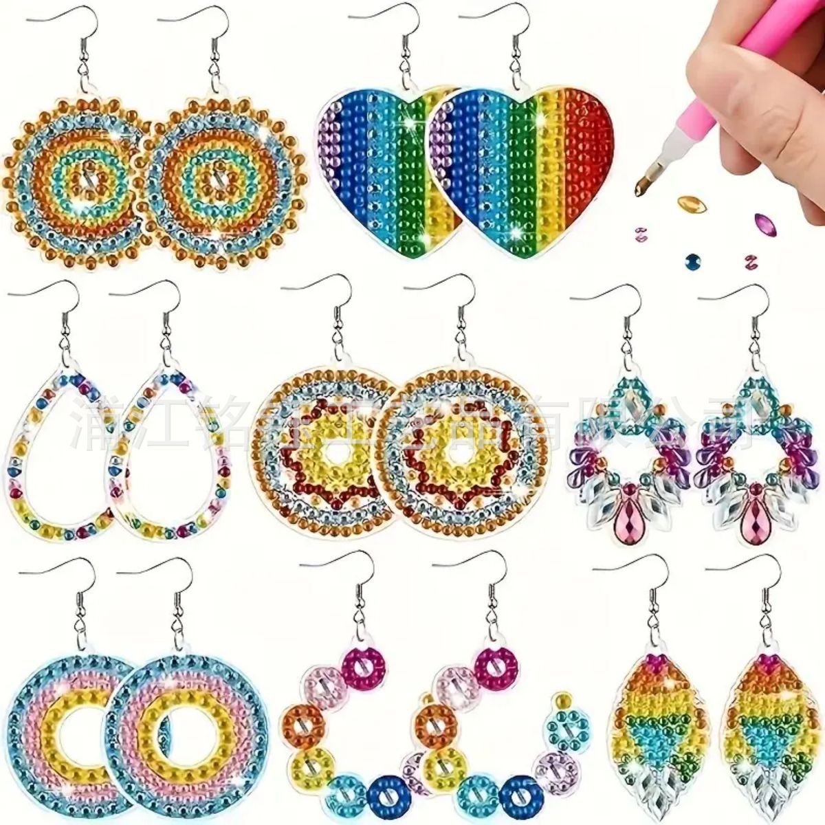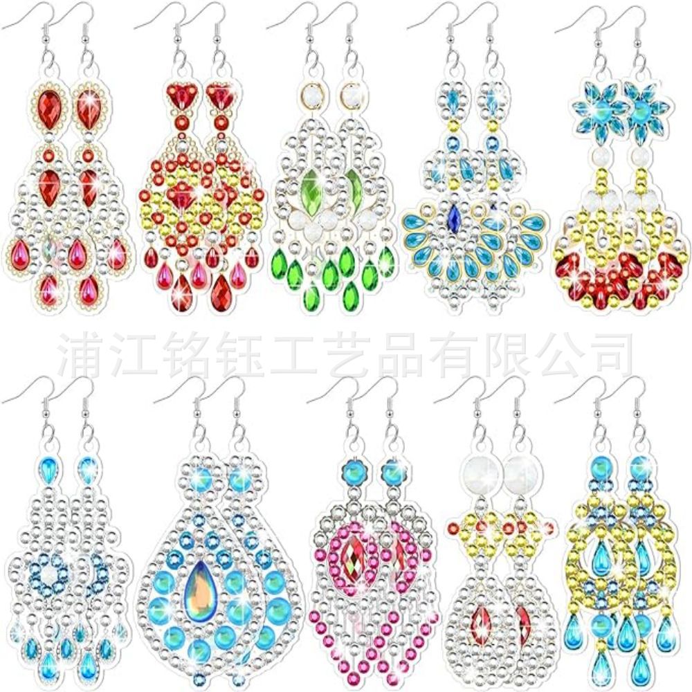 수제 diy 다이아몬드 귀걸이 크리 에이 티브 5D 다이아몬드 그림 밝은 다이아몬드 쥬얼리 귀걸이 아크릴 공예 귀걸이 펜던트스토어 가기