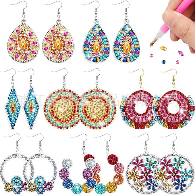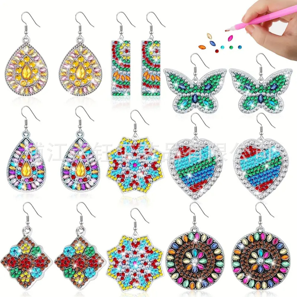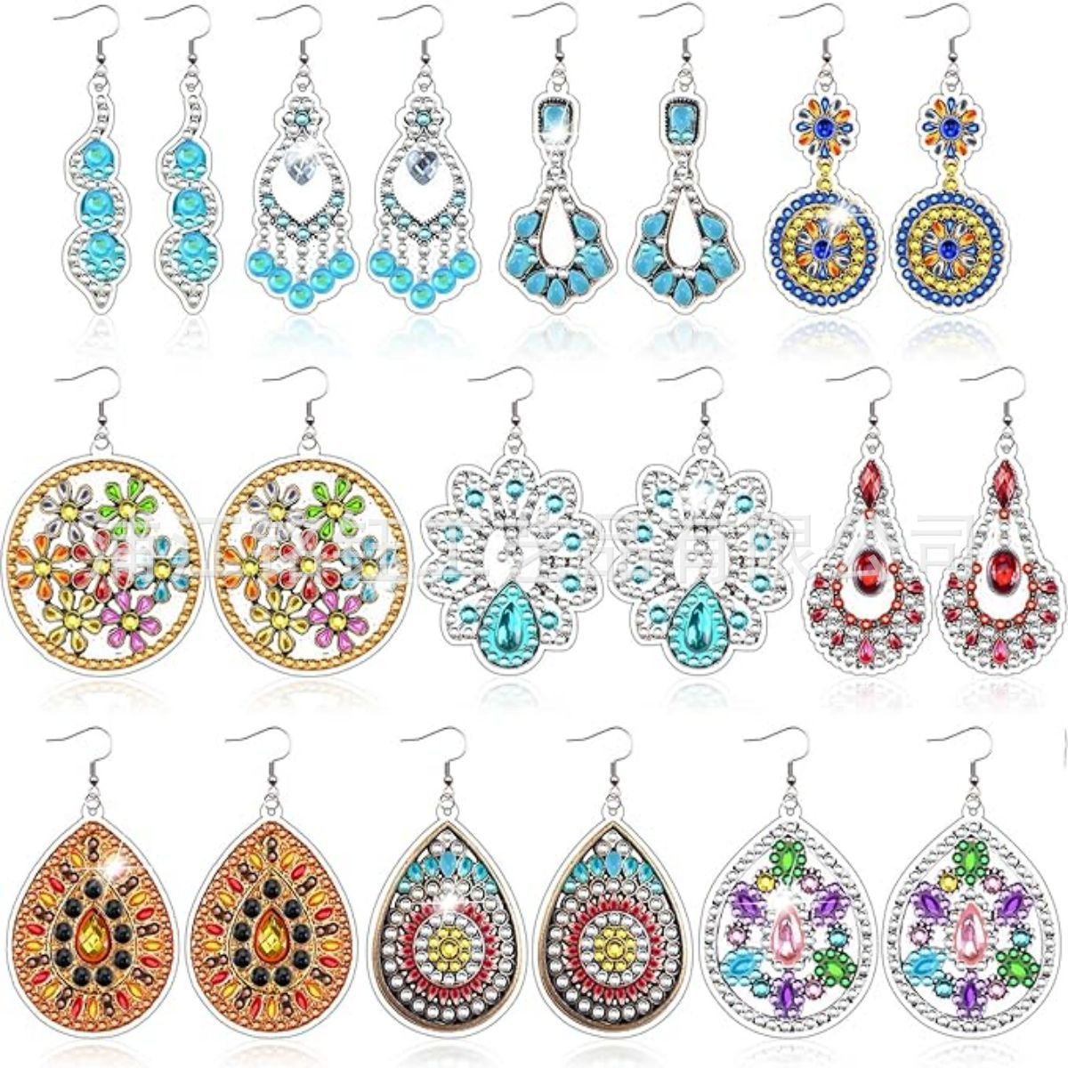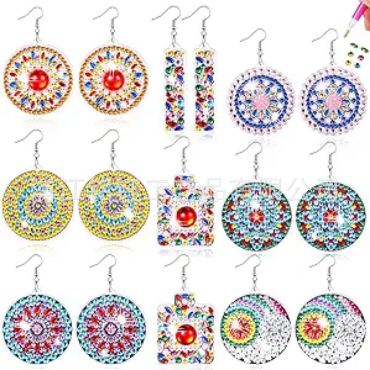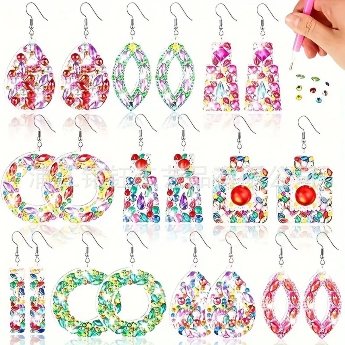 수제 diy 다이아몬드 귀걸이 크리 에이 티브 5D 다이아몬드 그림 밝은 다이아몬드 쥬얼리 귀걸이 아크릴 공예 귀걸이 펜던트스토어 가기