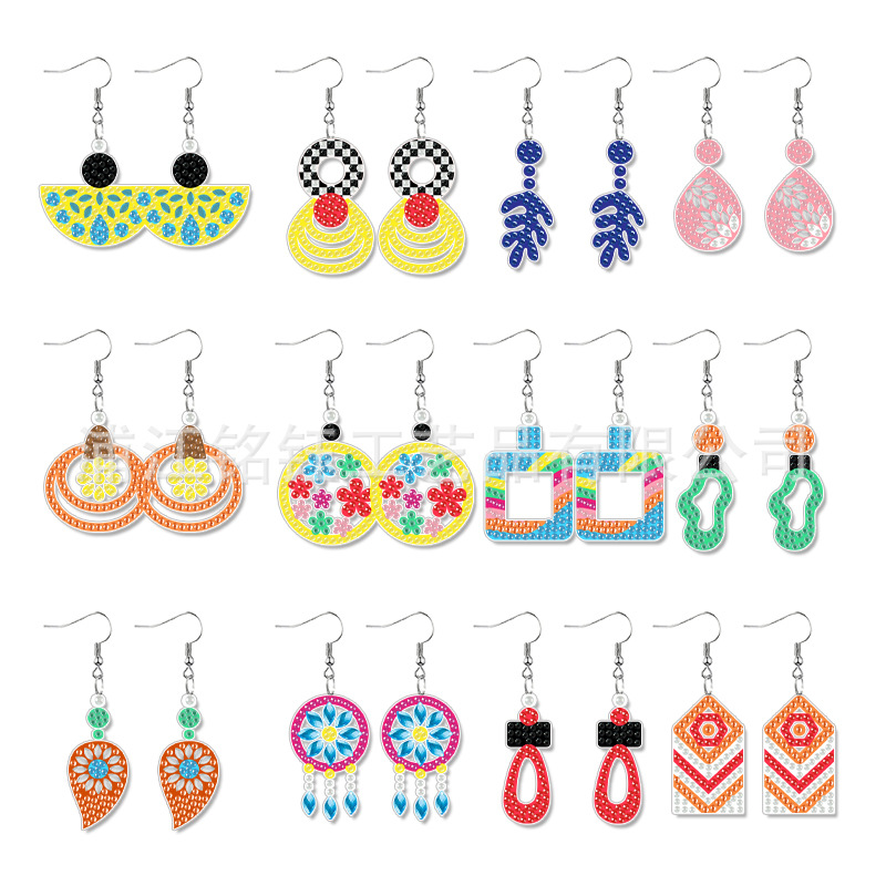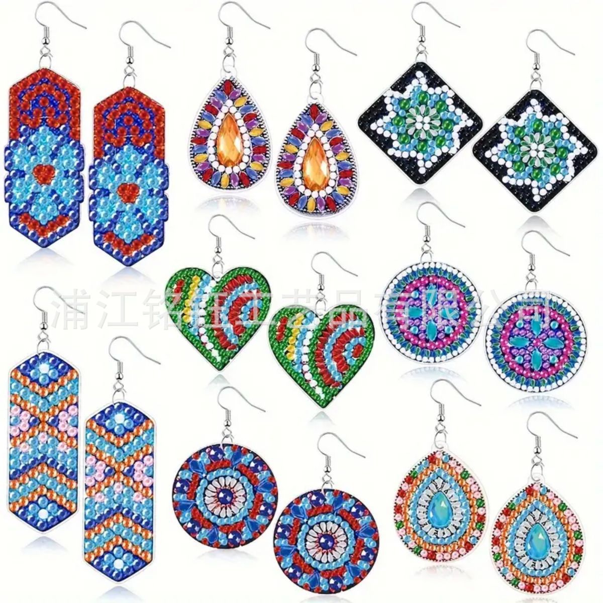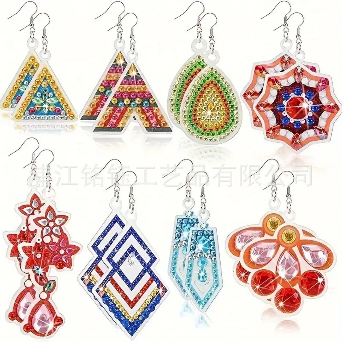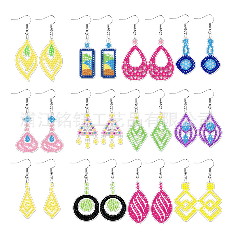 수제 diy 다이아몬드 귀걸이 크리 에이 티브 5D 다이아몬드 그림 밝은 다이아몬드 쥬얼리 귀걸이 아크릴 공예 귀걸이 펜던트