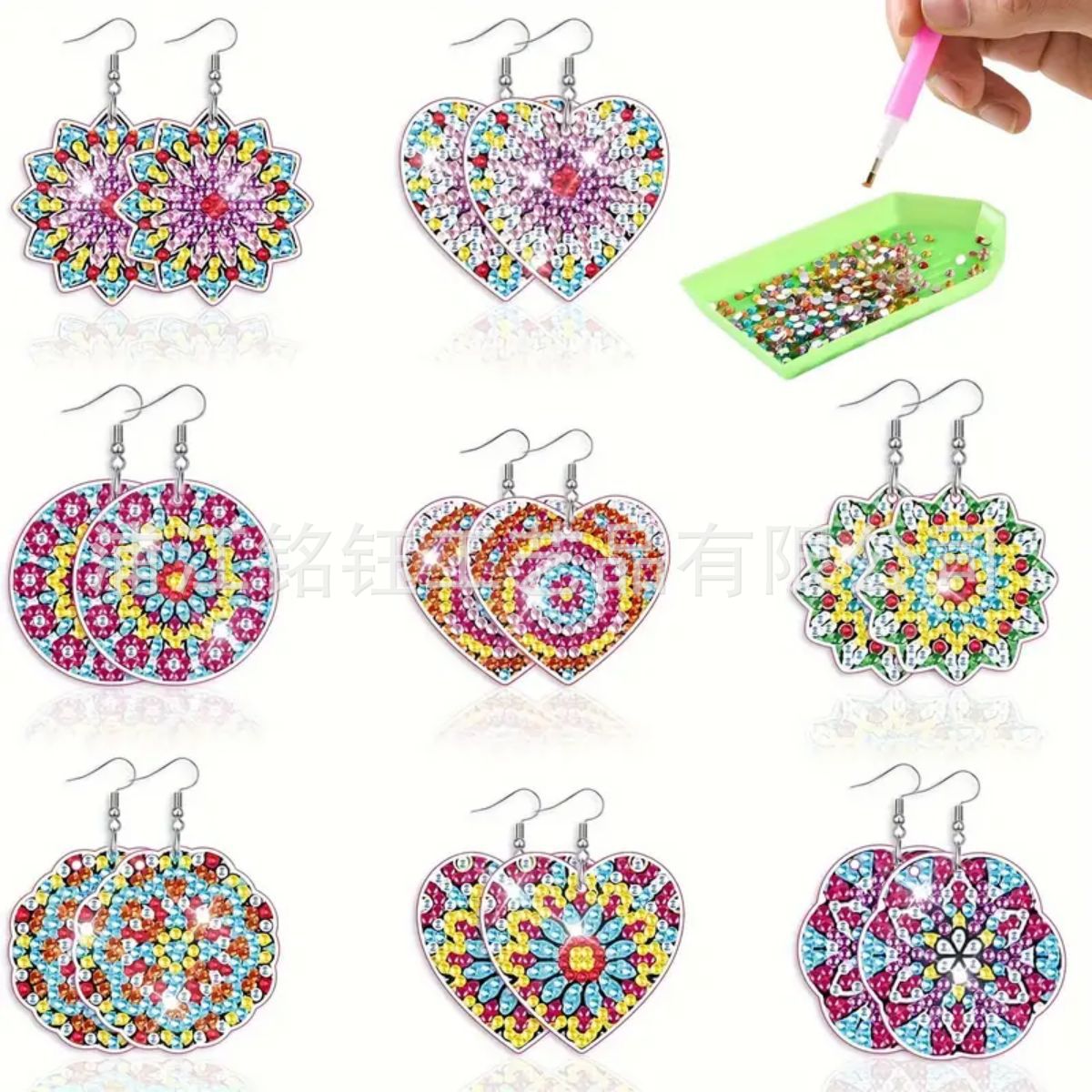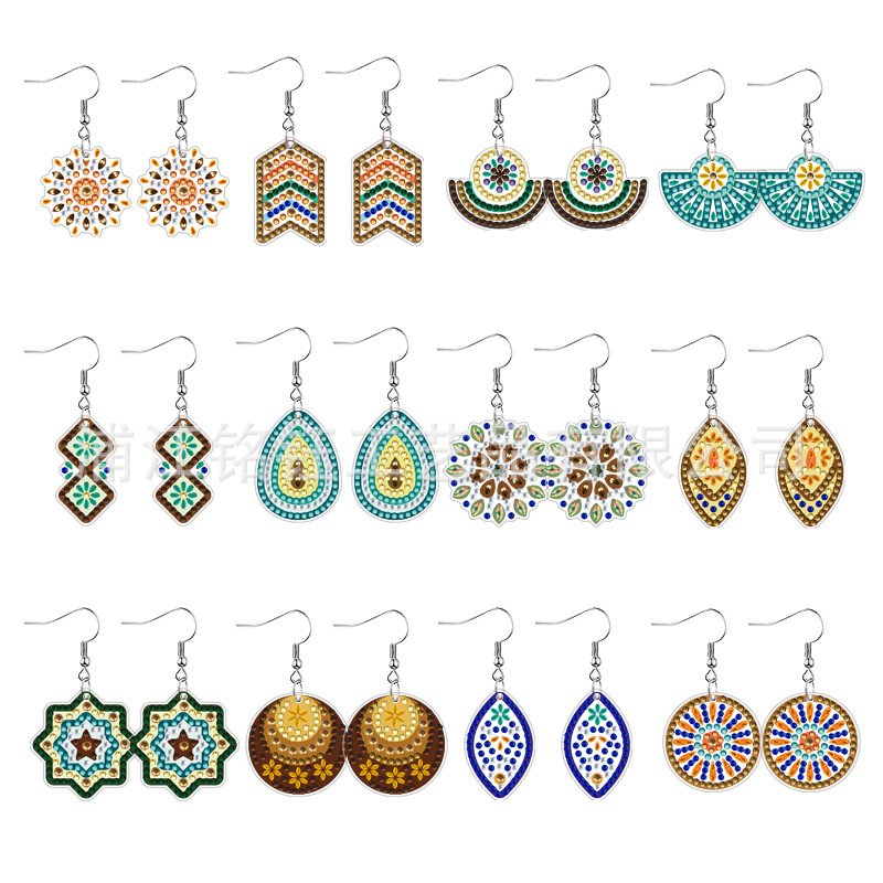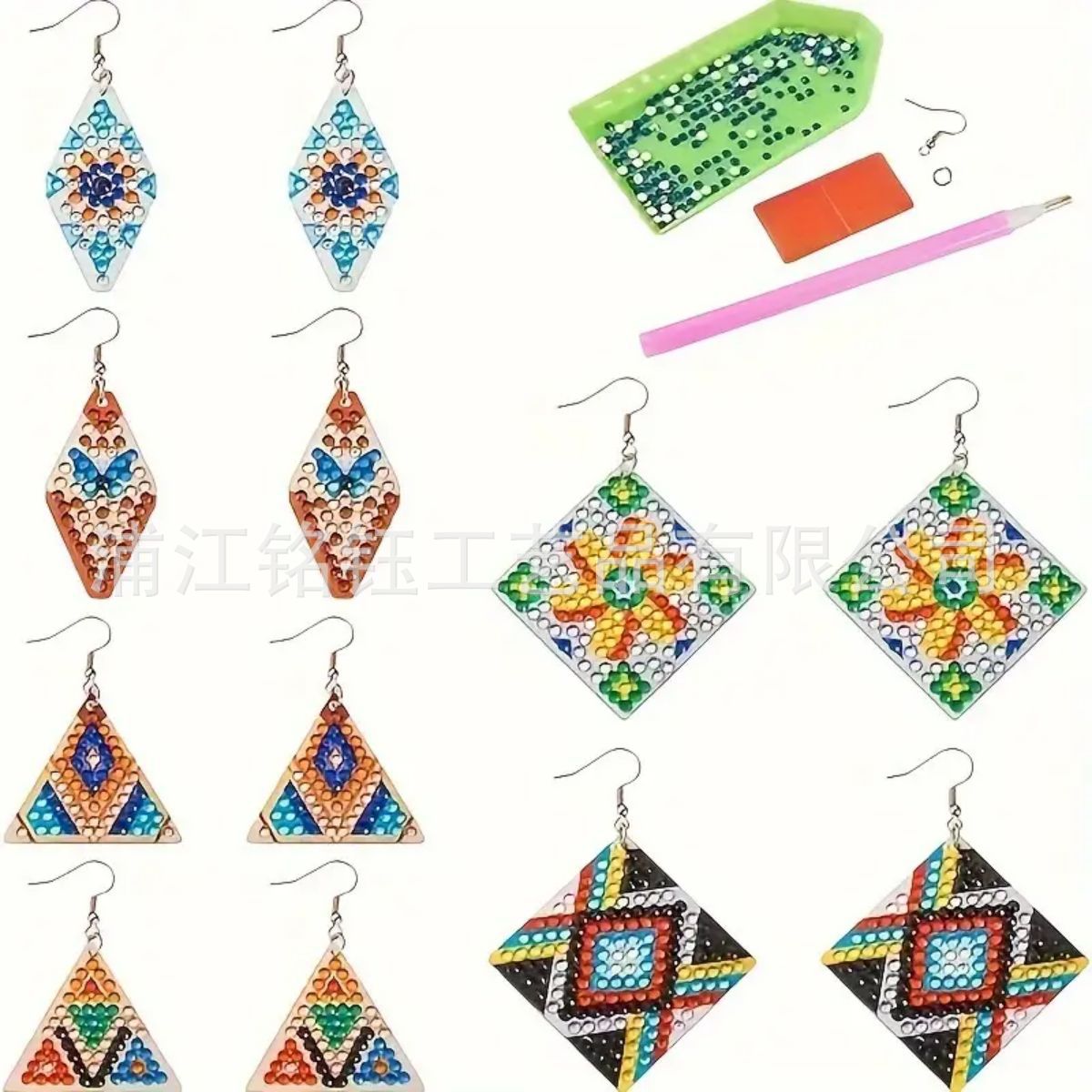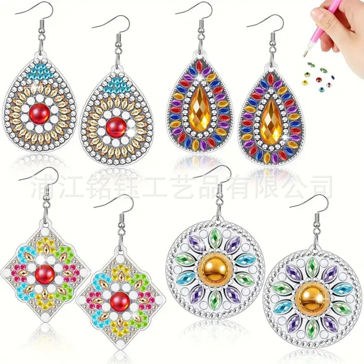 수제 diy 다이아몬드 귀걸이 크리 에이 티브 5D 다이아몬드 그림 밝은 다이아몬드 쥬얼리 귀걸이 아크릴 공예 귀걸이 펜던트
