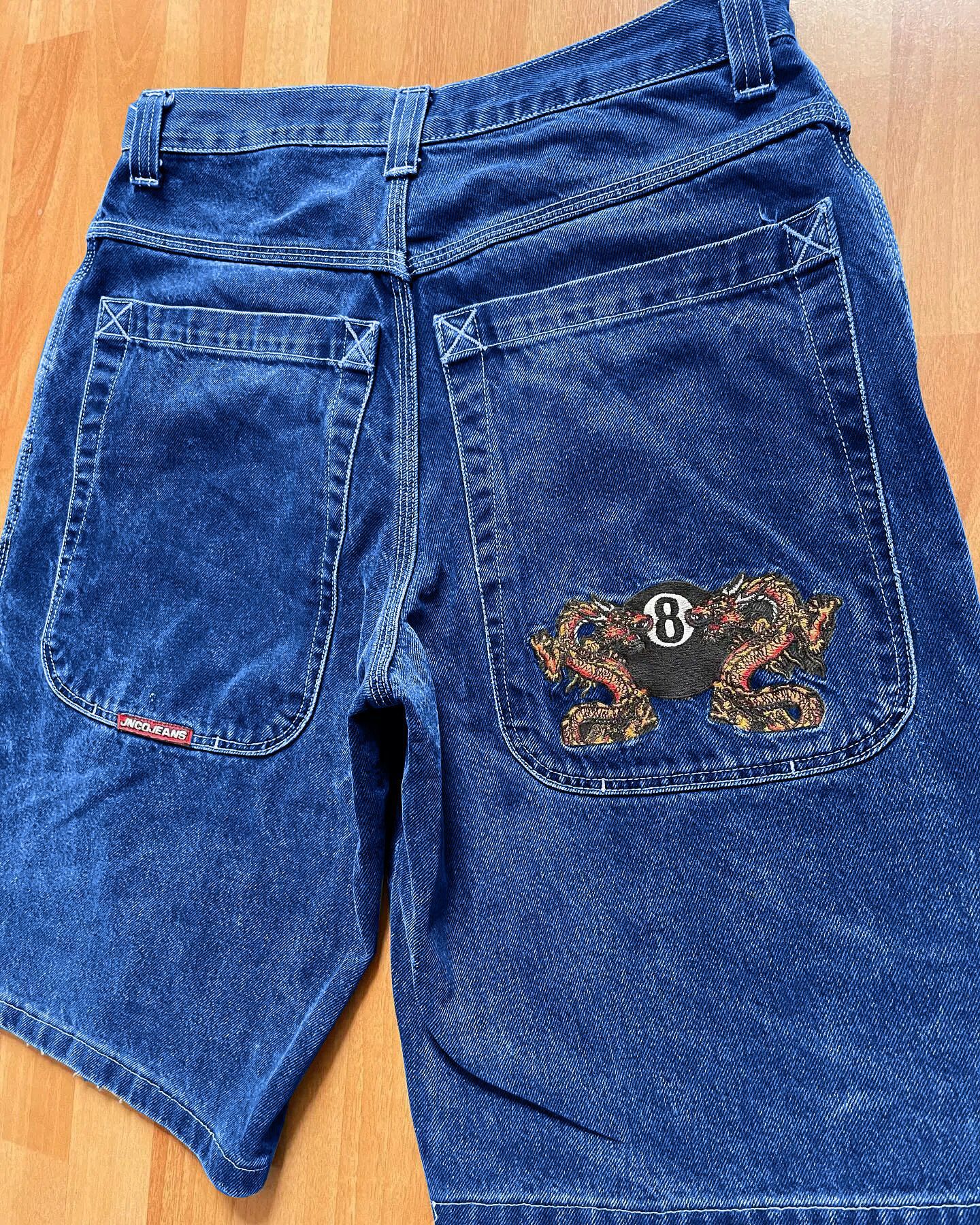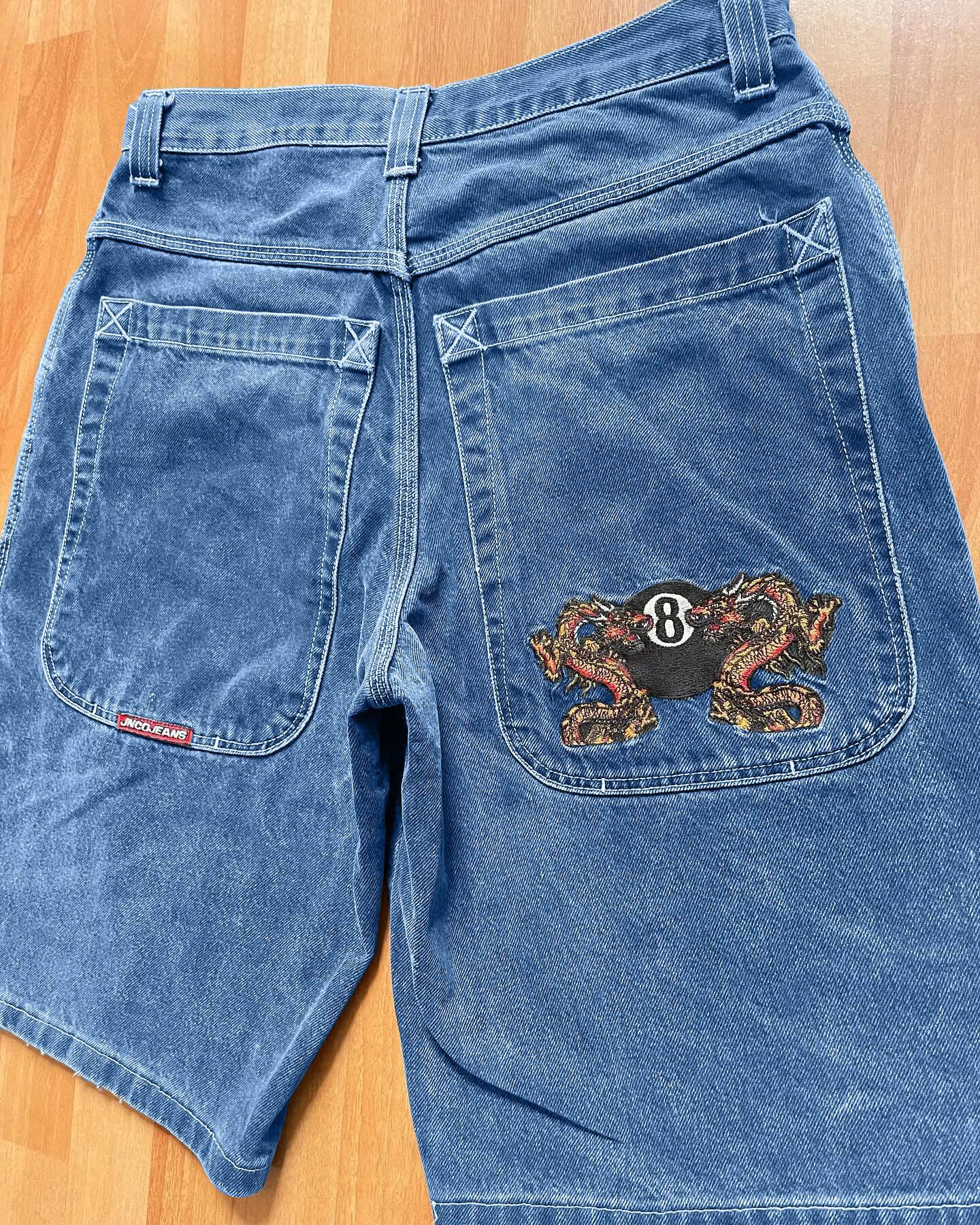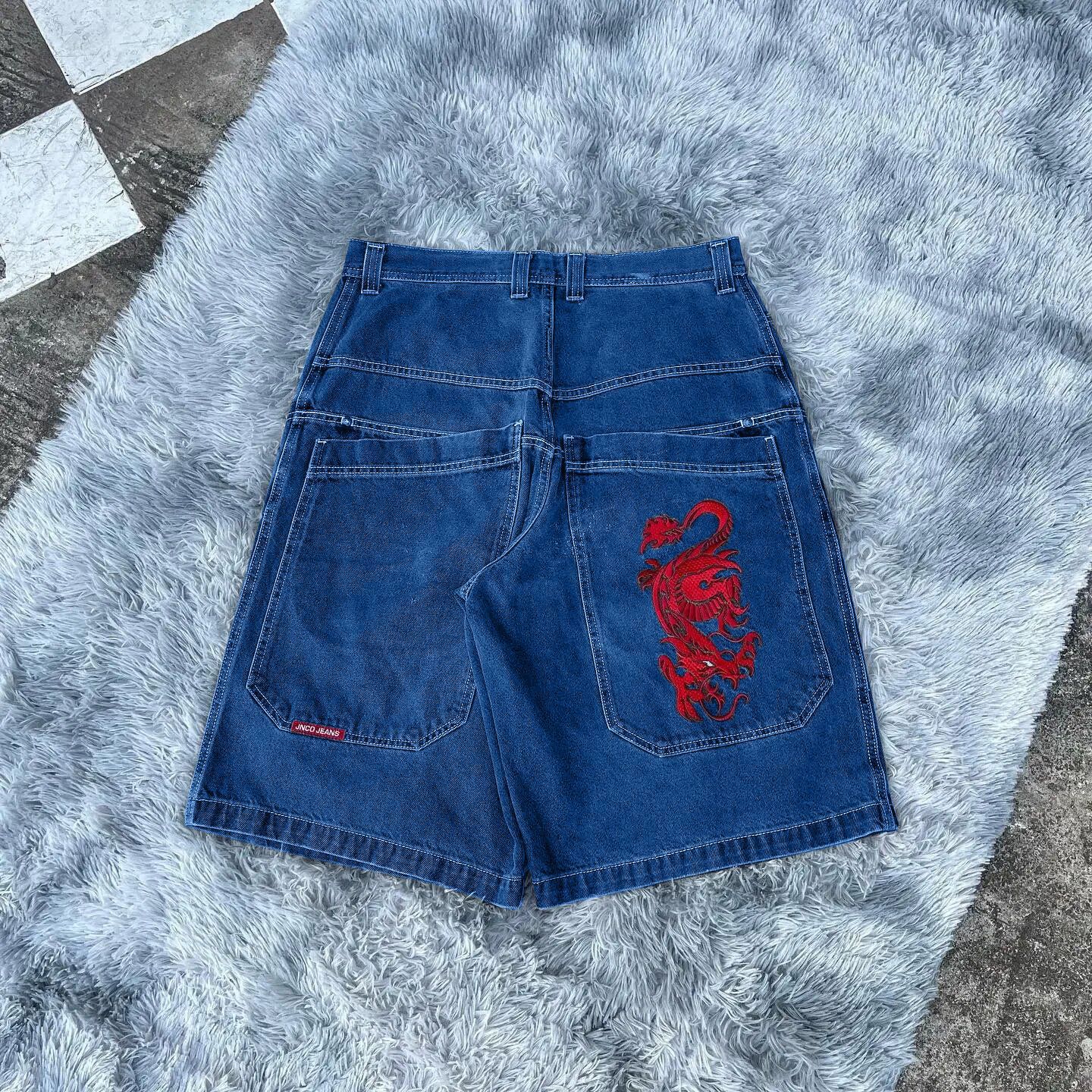 국경 간 전자 상거래 JNCO 반바지 Y2K 힙합 2023 하라주쿠 고딕 포켓 루즈 청바지 반바지 남성스토어 가기