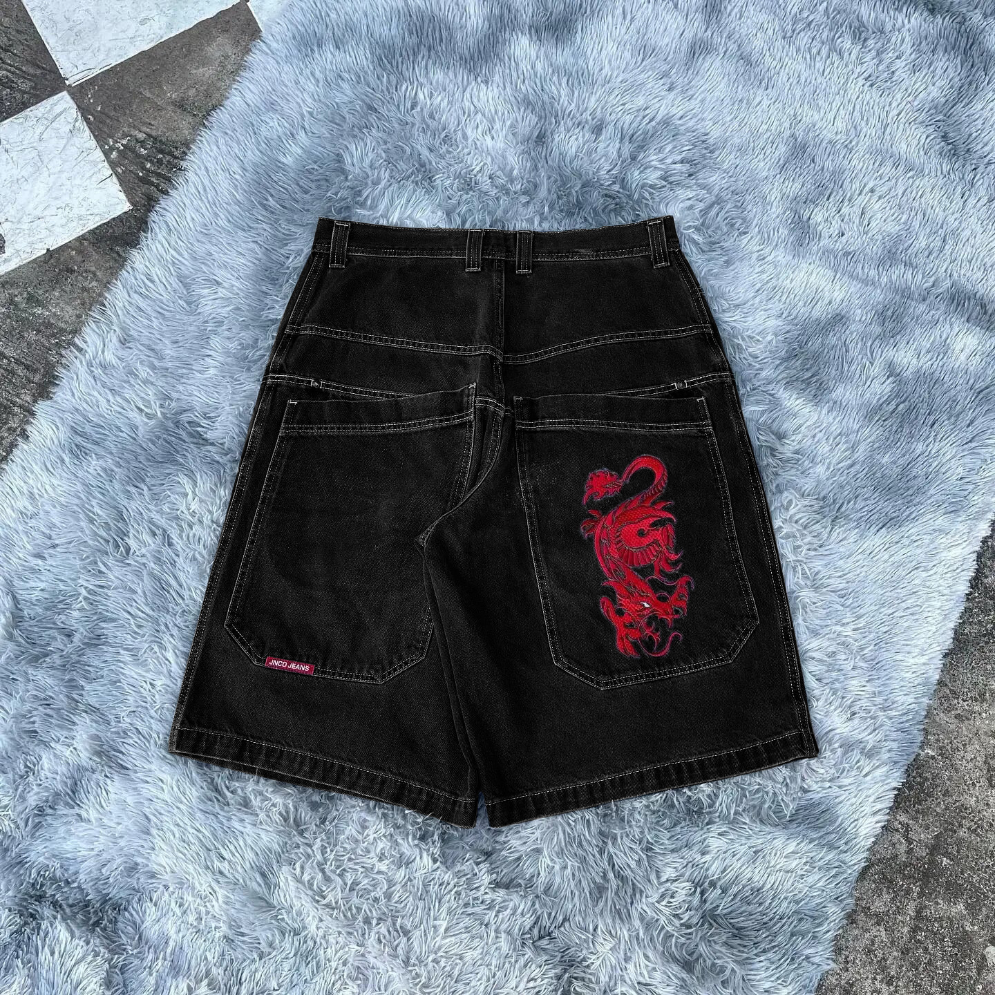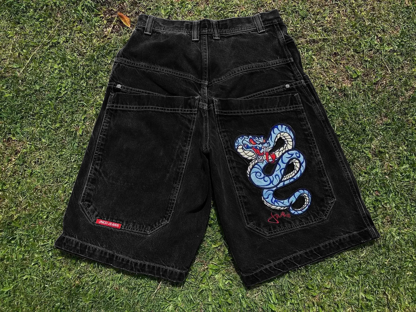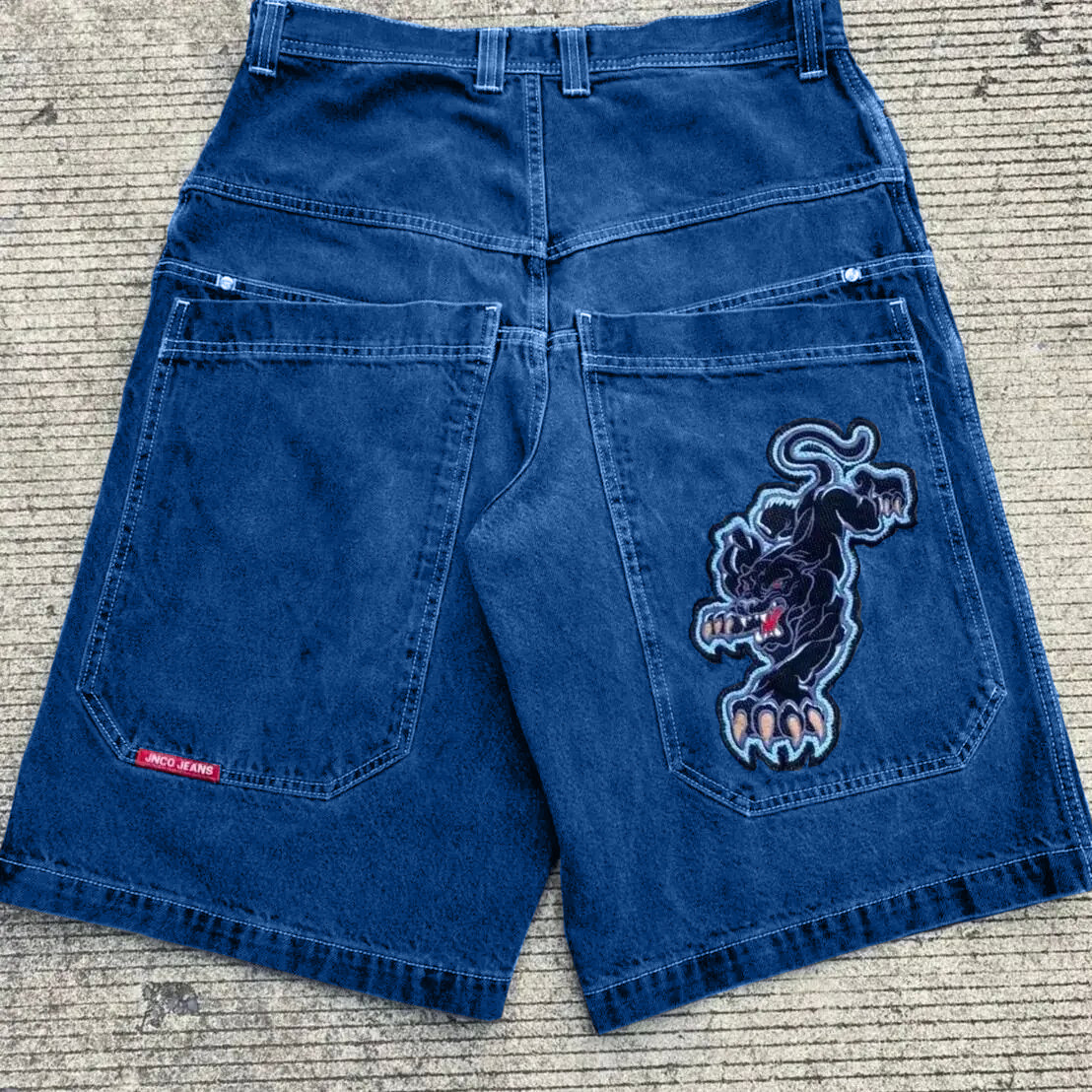 국경 간 전자 상거래 JNCO 반바지 Y2K 힙합 2023 하라주쿠 고딕 포켓 루즈 청바지 반바지 남성스토어 가기