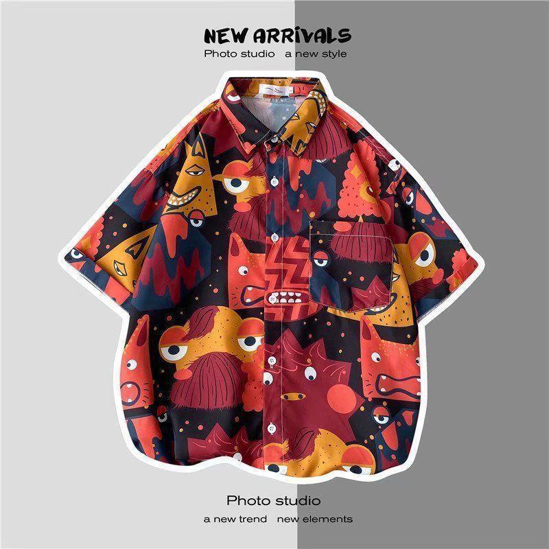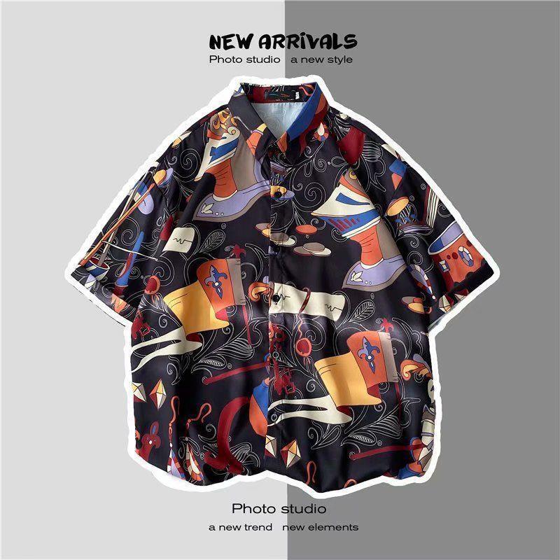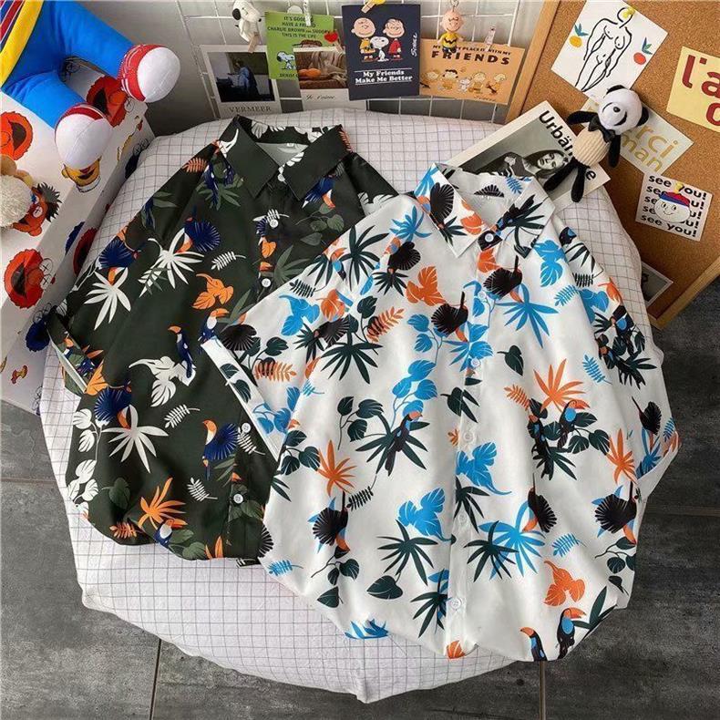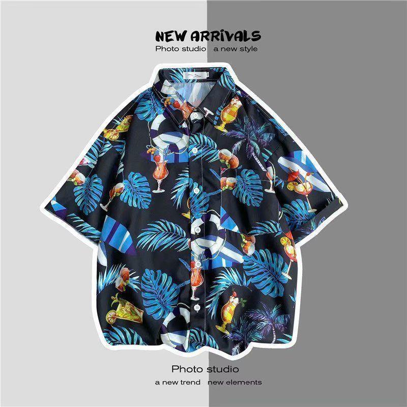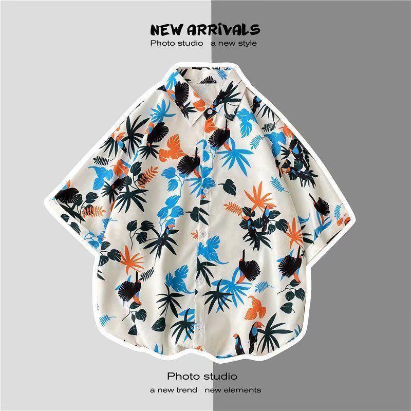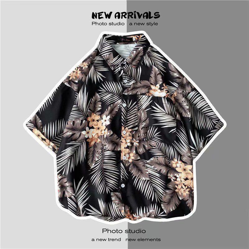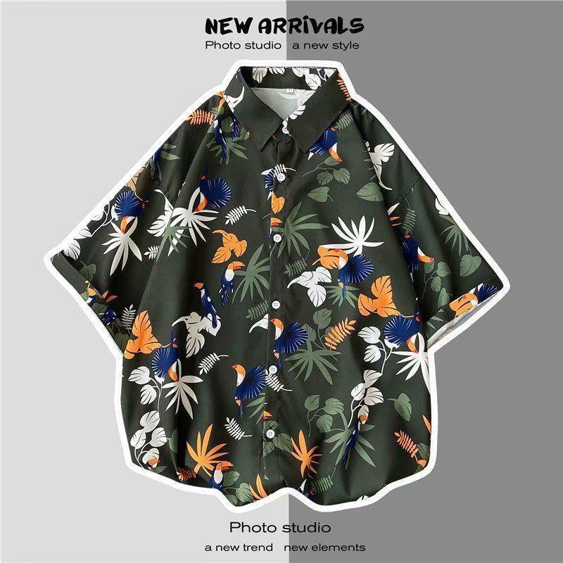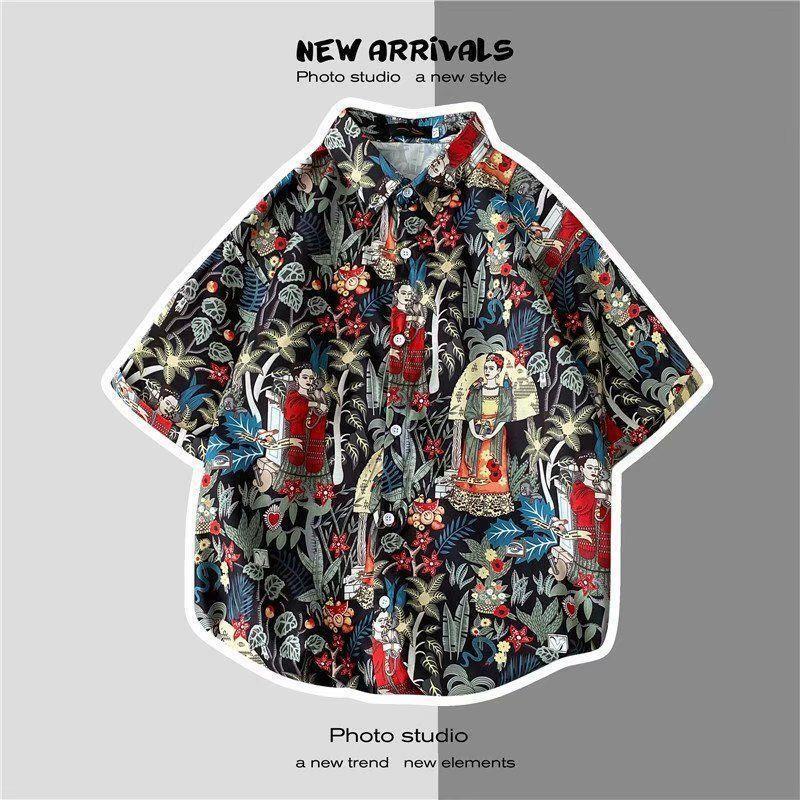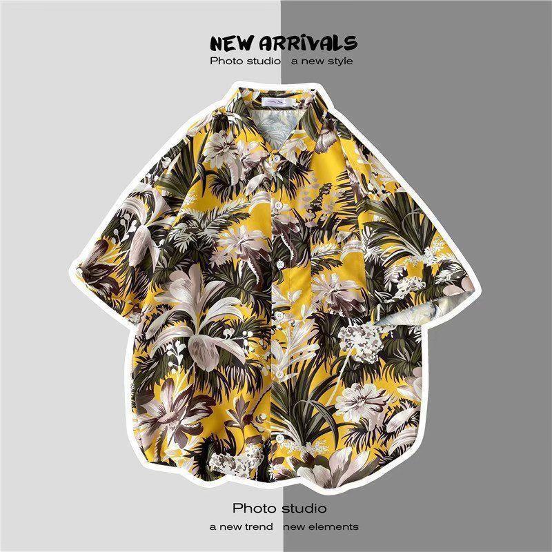 빈티지 복고풍 꽃무늬 셔츠 홍콩 스타일 반팔 하이난 섬 셔츠 하와이 여름 해변 셔츠 남성과 여성을 위한 트렌디 브랜드스토어 가기