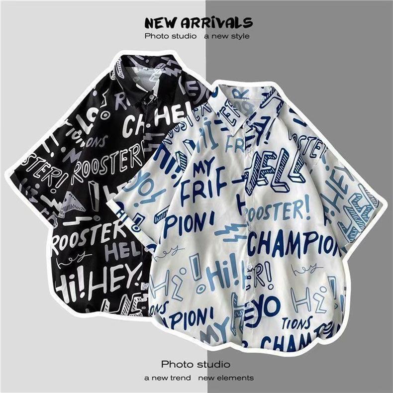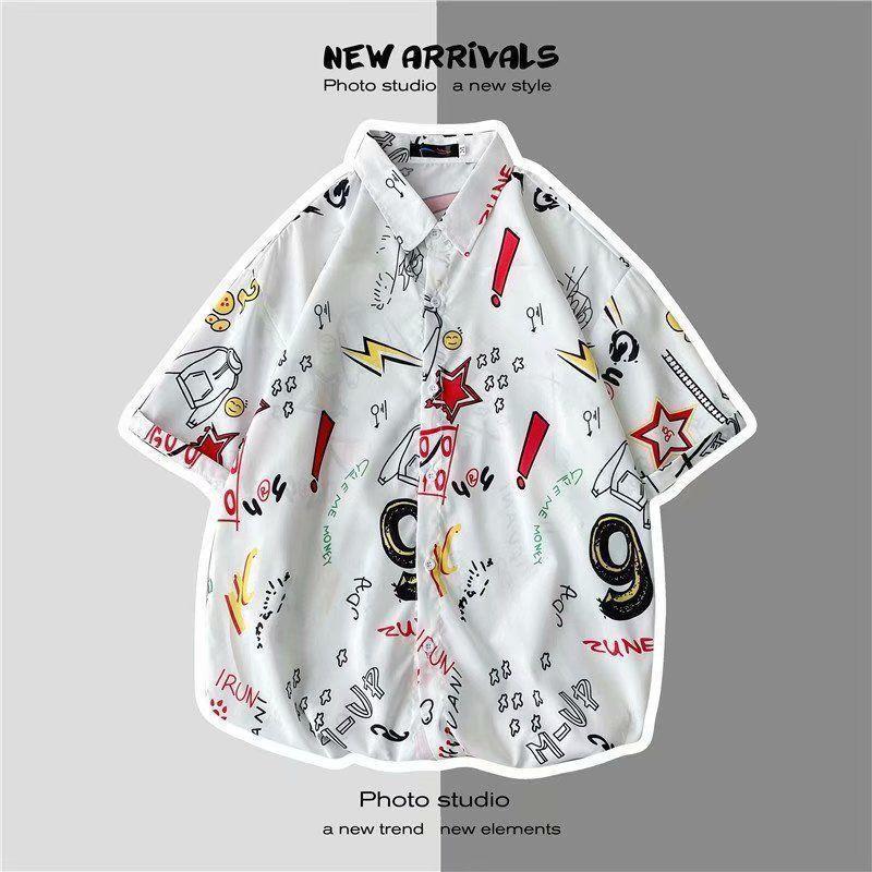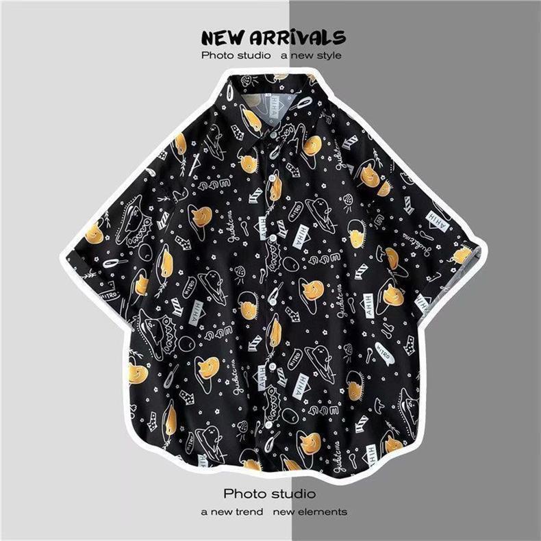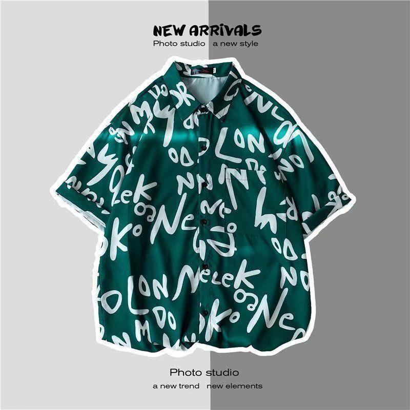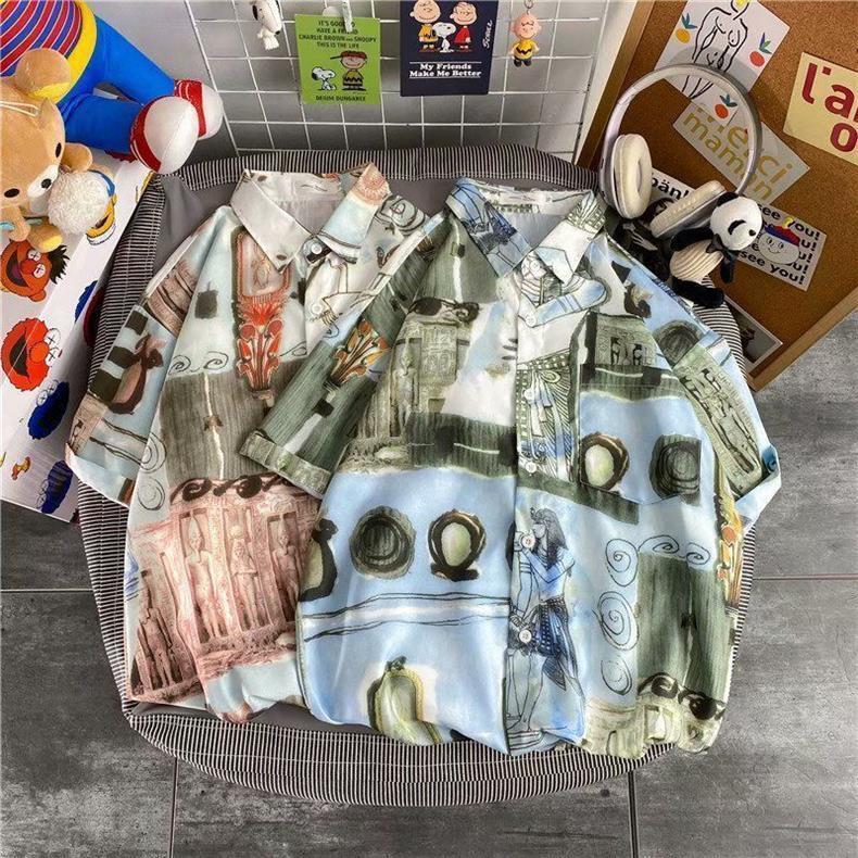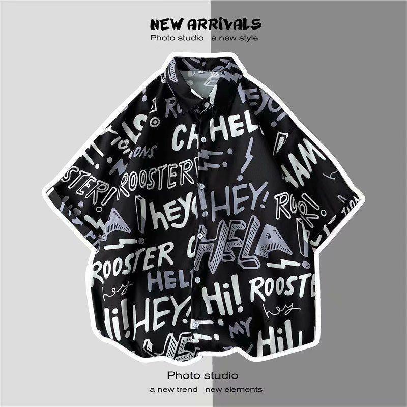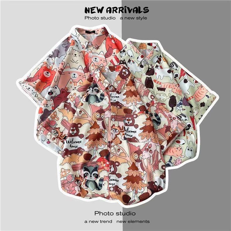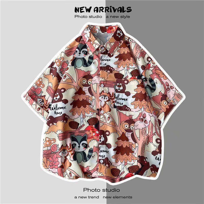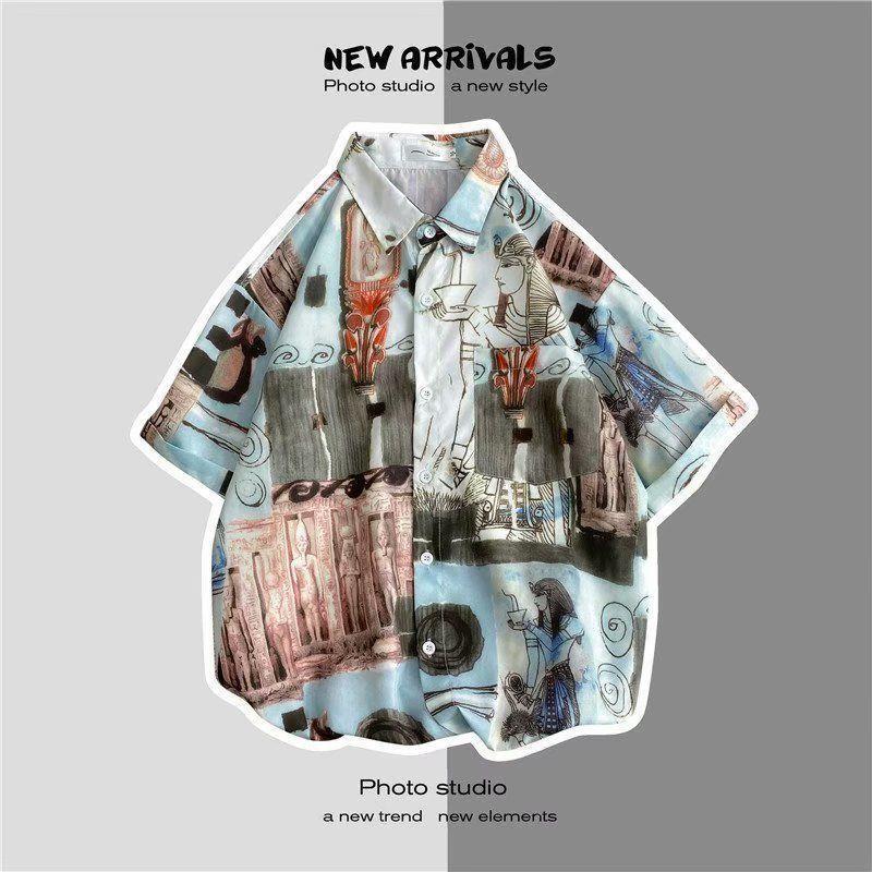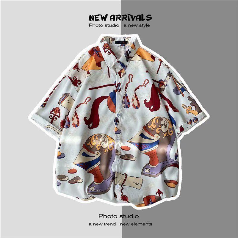 빈티지 복고풍 꽃무늬 셔츠 홍콩 스타일 반팔 하이난 섬 셔츠 하와이 여름 해변 셔츠 남성과 여성을 위한 트렌디 브랜드스토어 가기