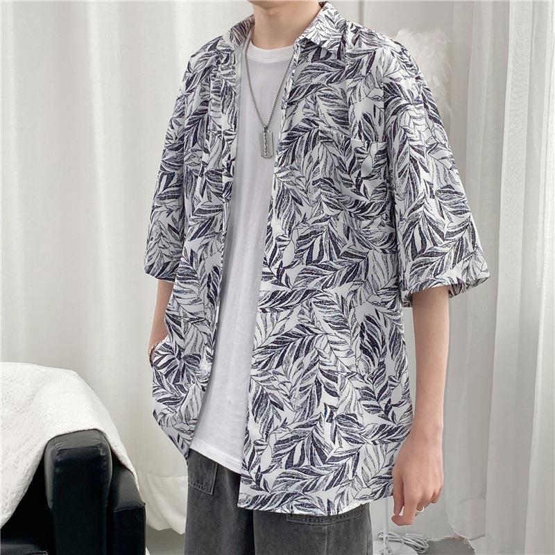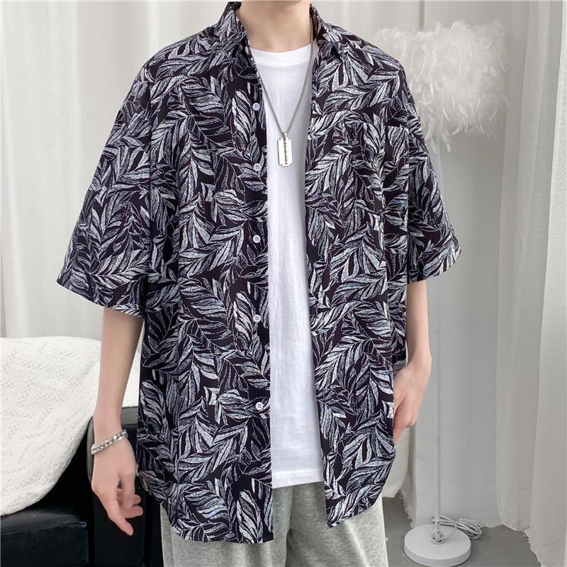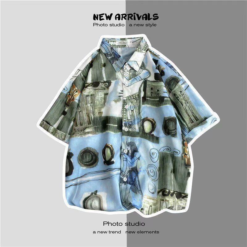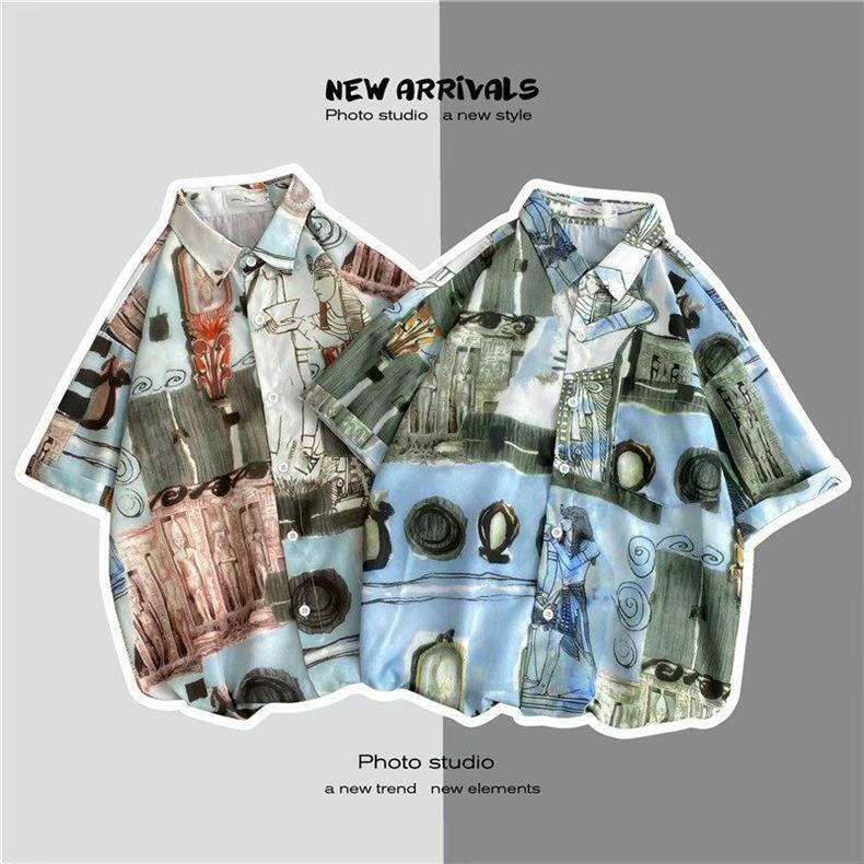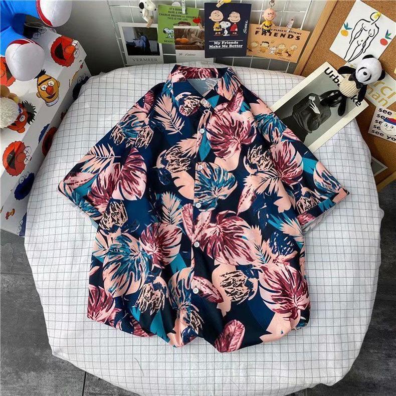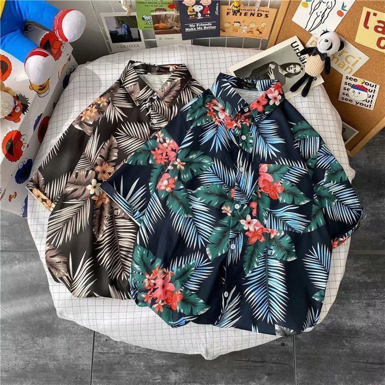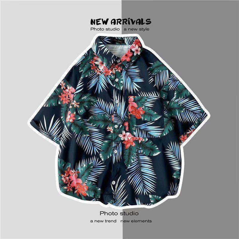 빈티지 복고풍 꽃무늬 셔츠 홍콩 스타일 반팔 하이난 섬 셔츠 하와이 여름 해변 셔츠 남성과 여성을 위한 트렌디 브랜드