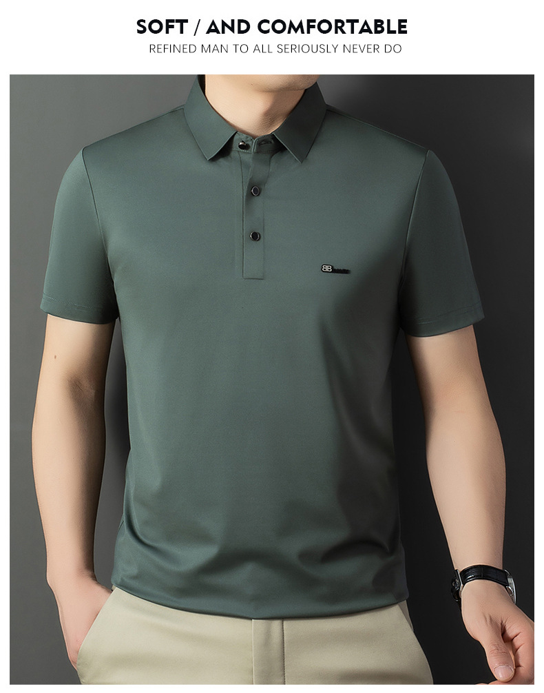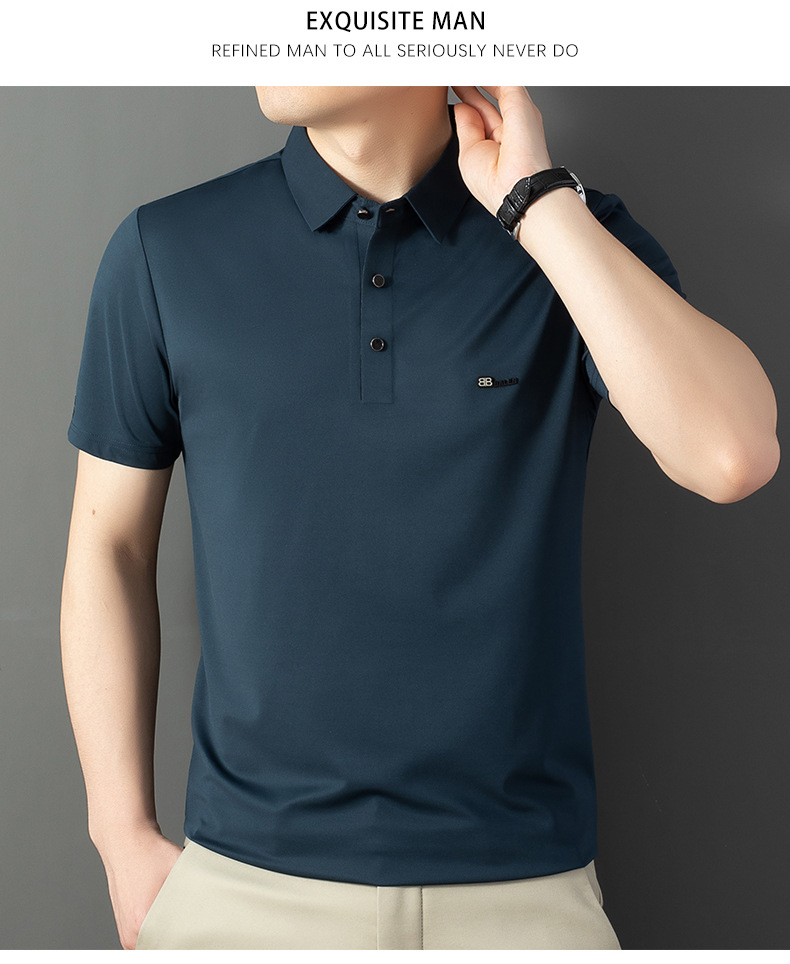 젊고 중년 남성용 새로운 핫 스탬핑 아이스 실크 반팔 폴로 셔츠 여름 비즈니스 캐주얼 슬림 핏 롭 티셔츠 트렌디
