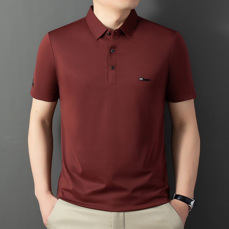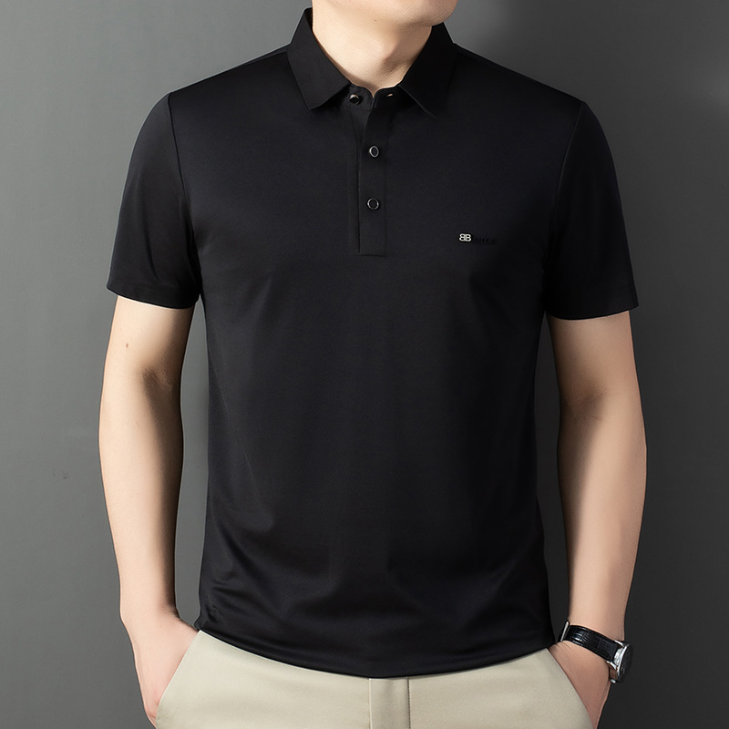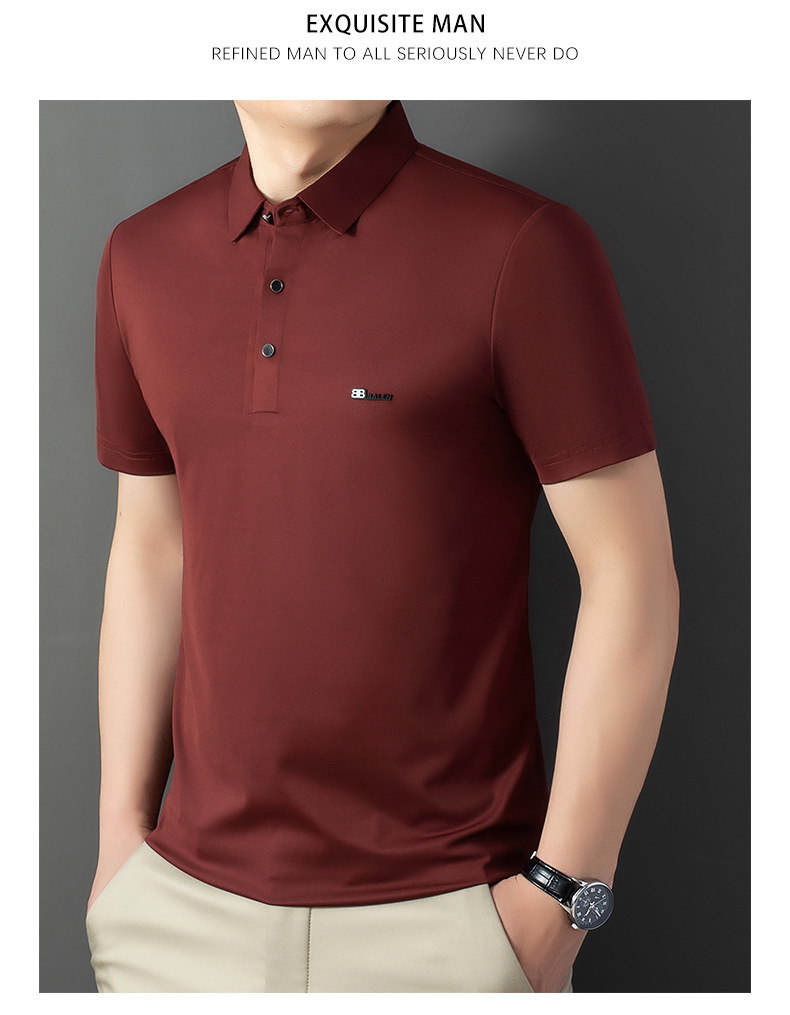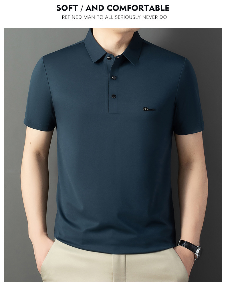 젊고 중년 남성용 새로운 핫 스탬핑 아이스 실크 반팔 폴로 셔츠 여름 비즈니스 캐주얼 슬림 핏 롭 티셔츠 트렌디스토어 가기
