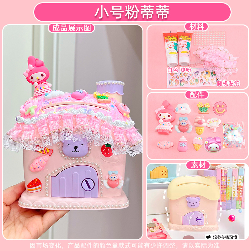 어린이 퍼즐 DIY 수제 멋진 버섯 집 어린 소녀 크림 접착제 페이스트 코티지 스몰 사이즈 돼지 저금통