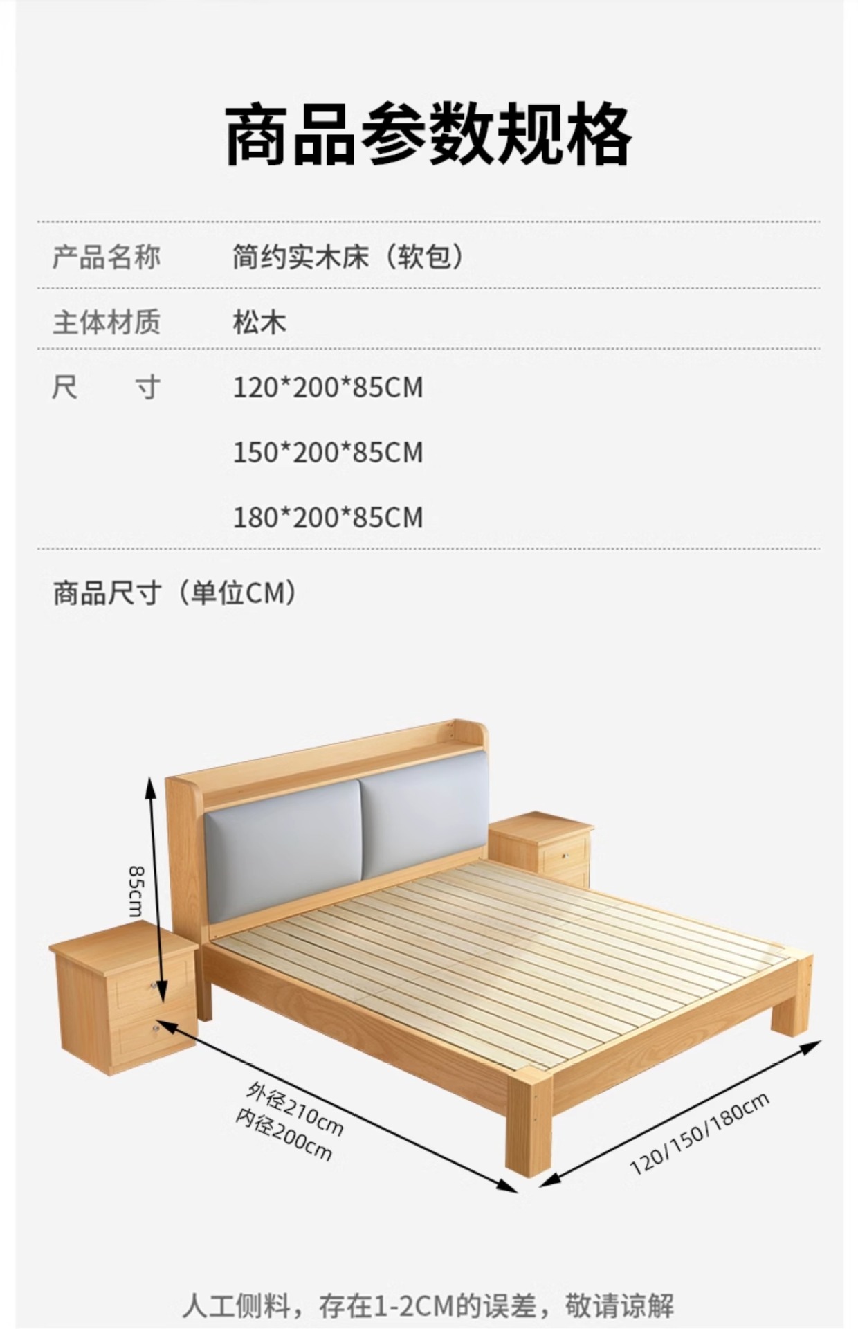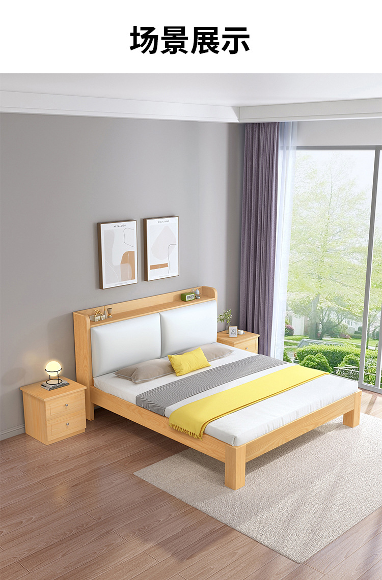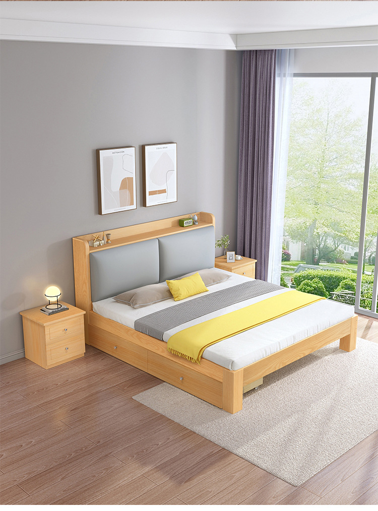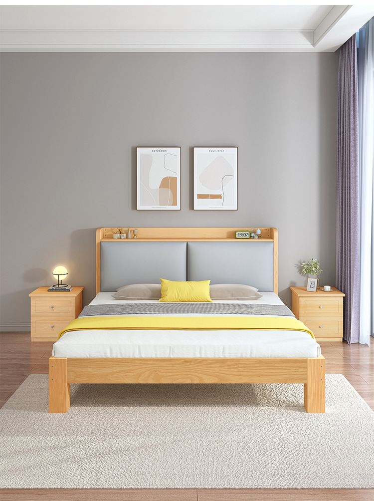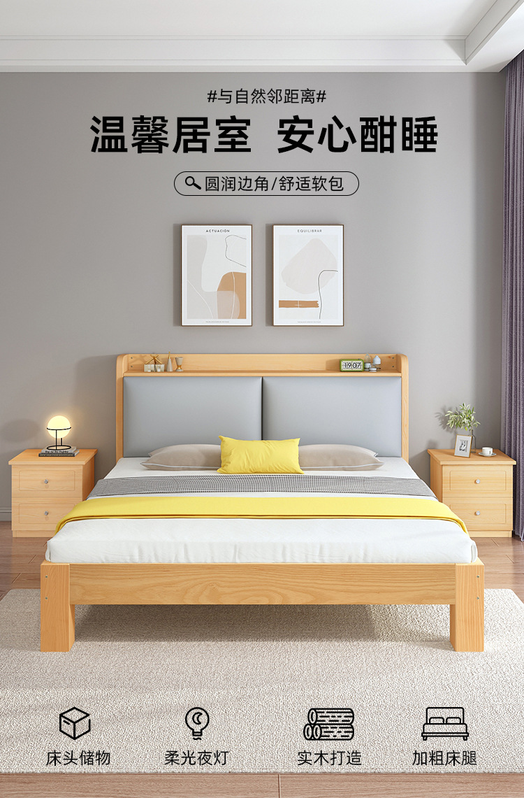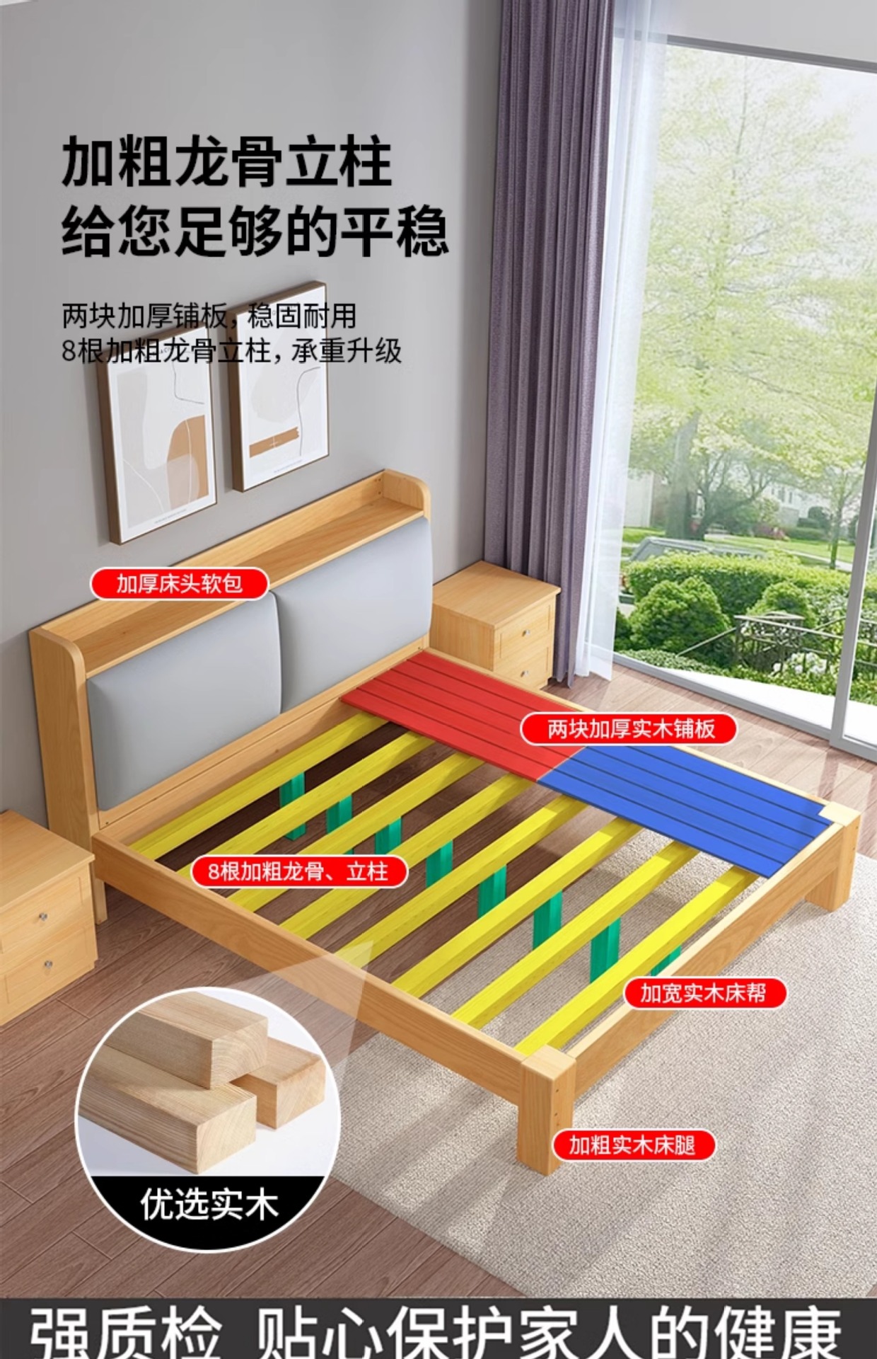L & 솔리드 우드 침대 현대 간단한 1.8m 홈 마스터 침실 더블 침대 렌탈 룸 1.5 싱글 간단한 1.2 침대 큰 침대스토어 가기