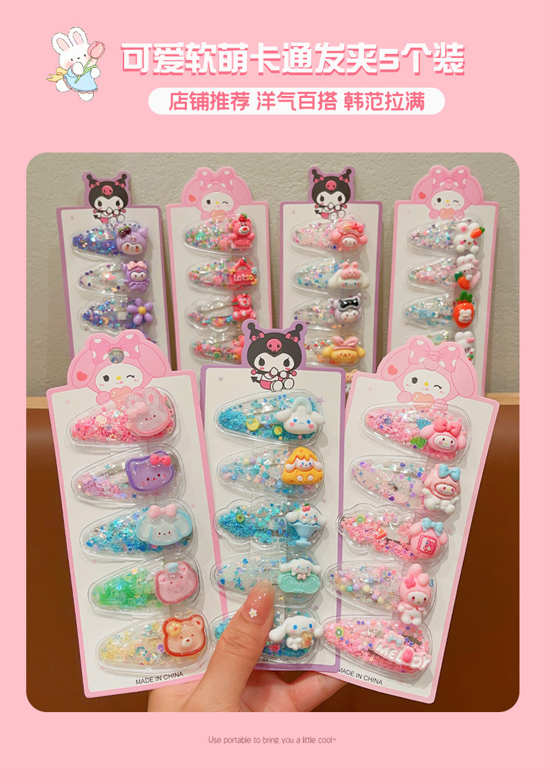 어린이 해골 헤어핀 소녀의 귀여운 만화 산리오 헤어핀 어린 소녀의 뱅 깨진 헤어핀 소녀의 달콤한 클립스토어 가기