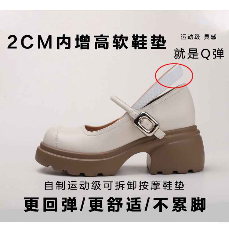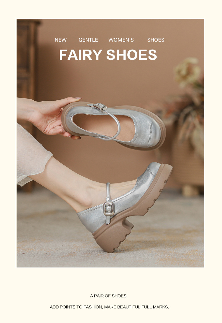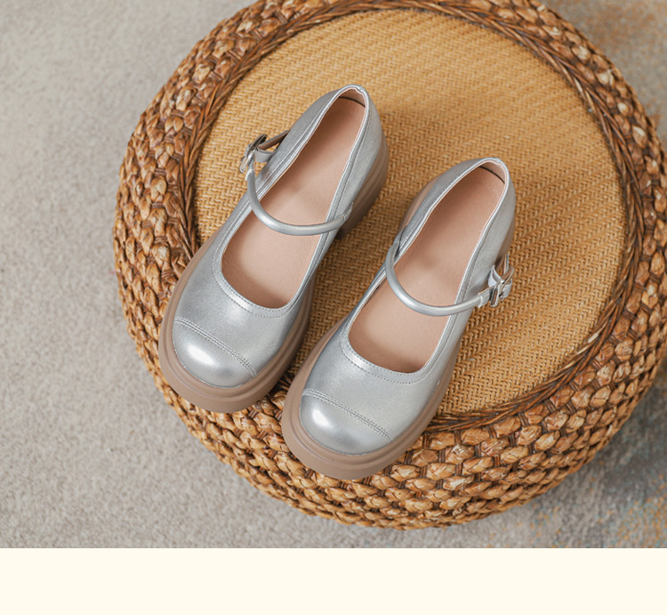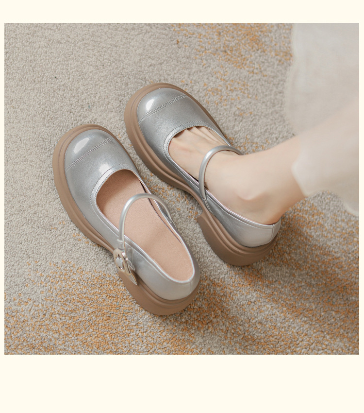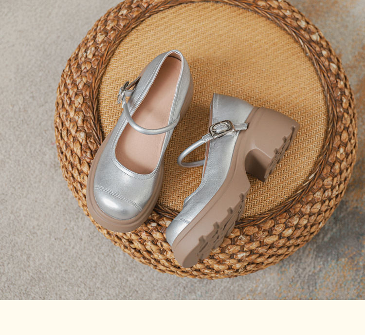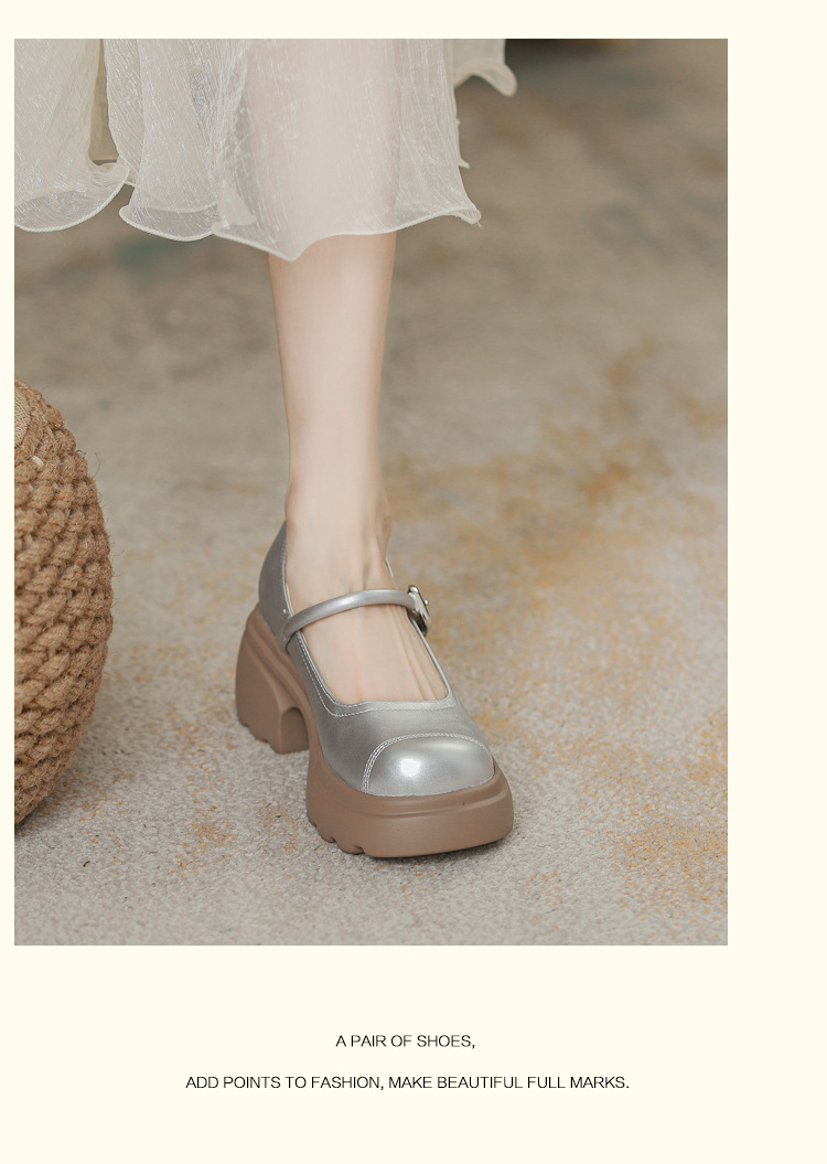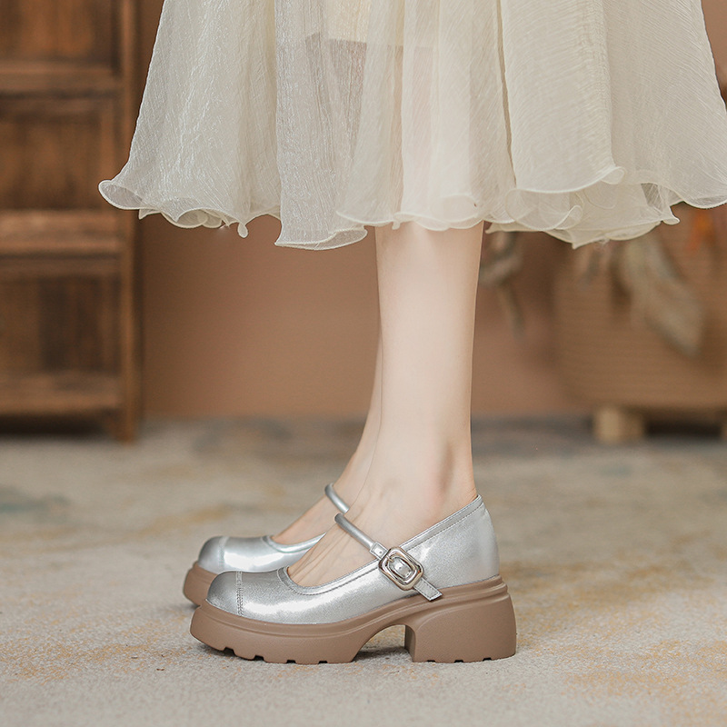 실버 프랑스 메리 제인 신발 높이 증가 두꺼운 바닥 작은 가죽 신발 2024 여성을위한 하이힐을 가진 새로운 캐주얼 싱글 레이어 신발스토어 가기