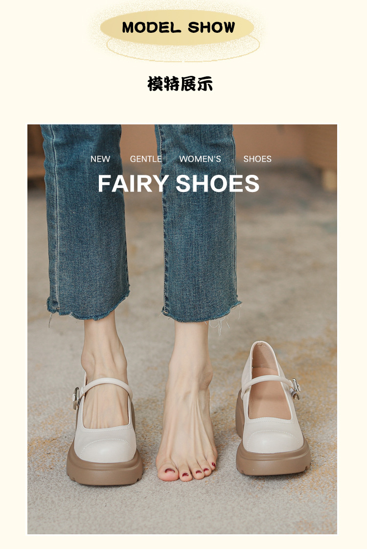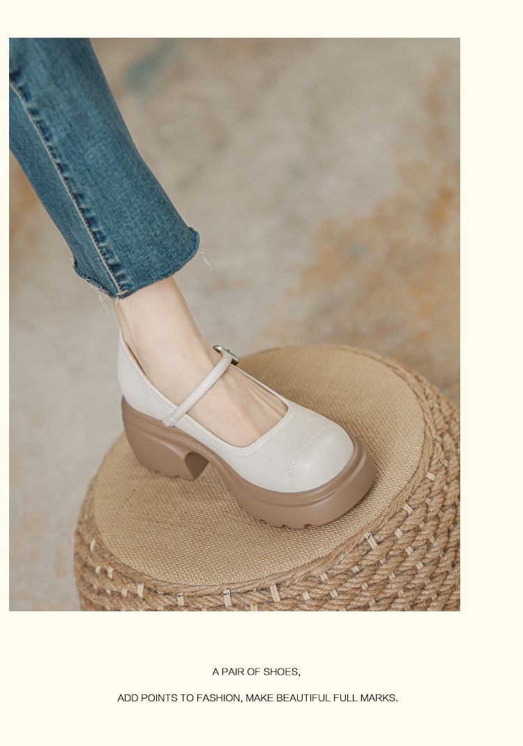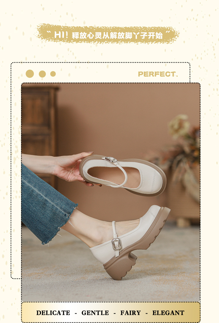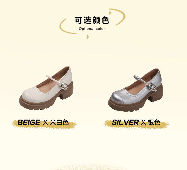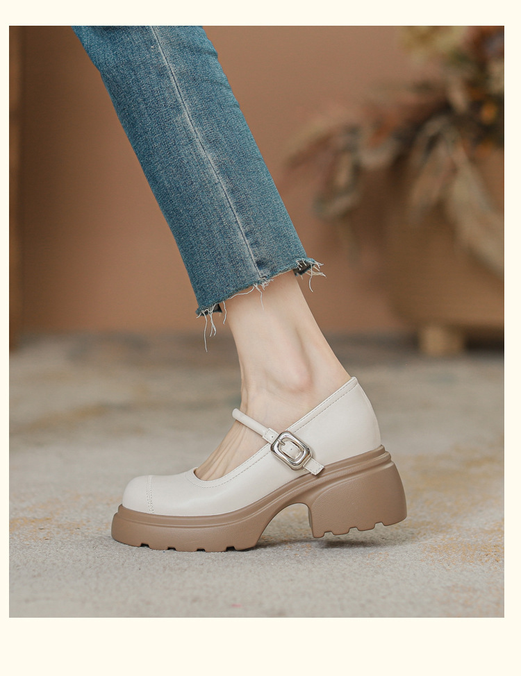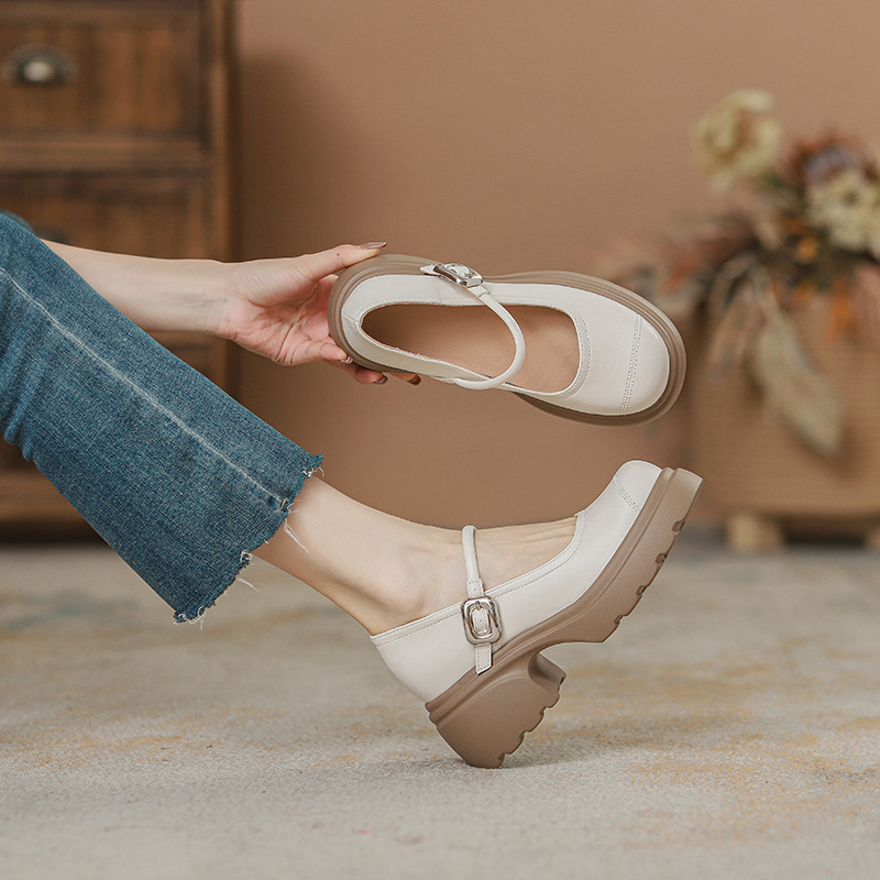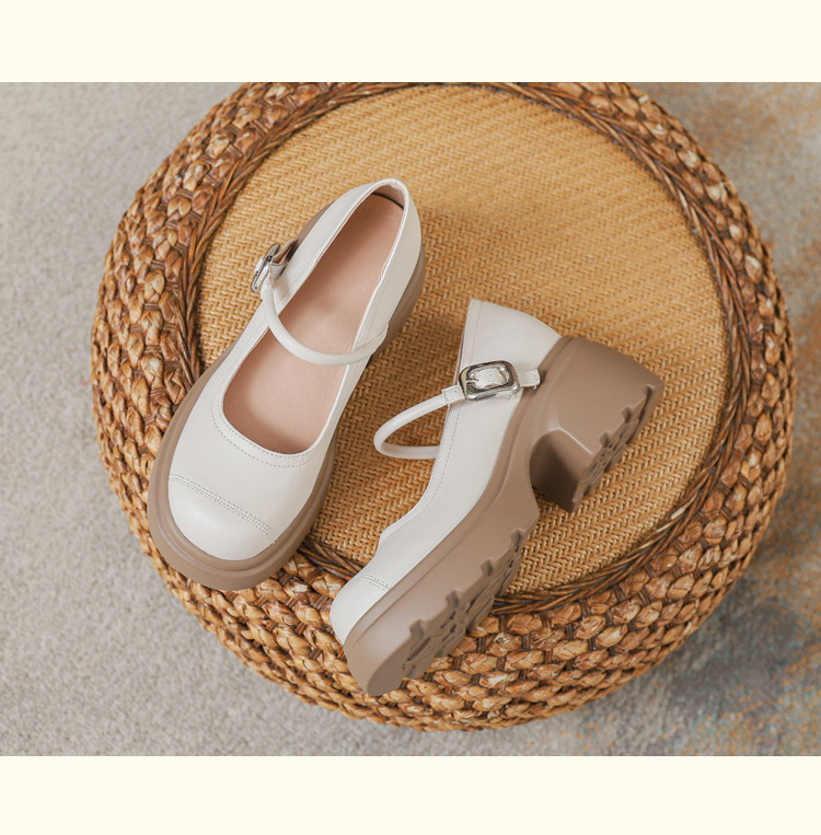 실버 프랑스 메리 제인 신발 높이 증가 두꺼운 바닥 작은 가죽 신발 2024 여성을위한 하이힐을 가진 새로운 캐주얼 싱글 레이어 신발스토어 가기