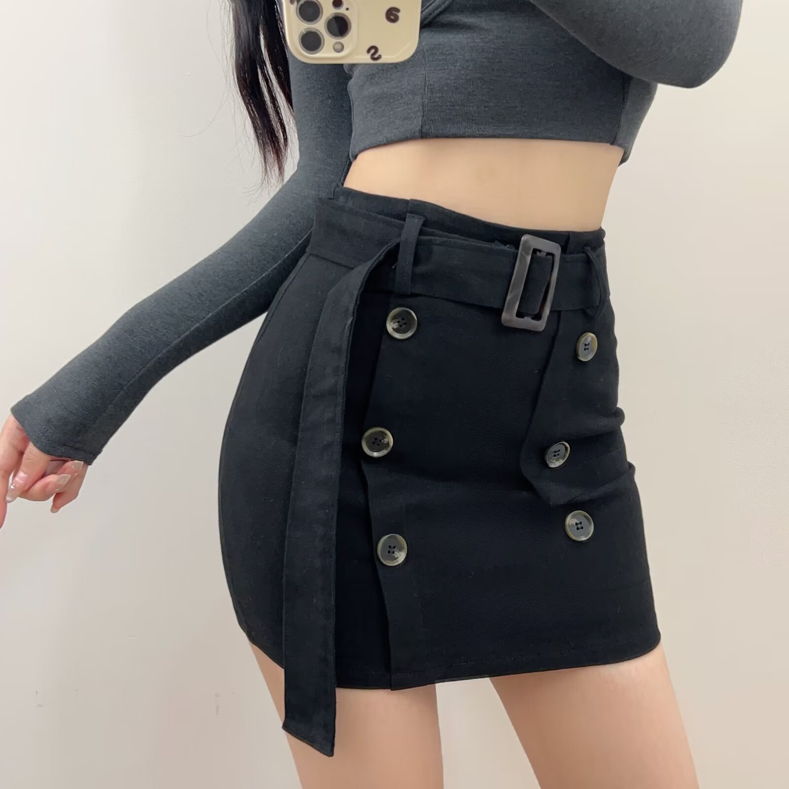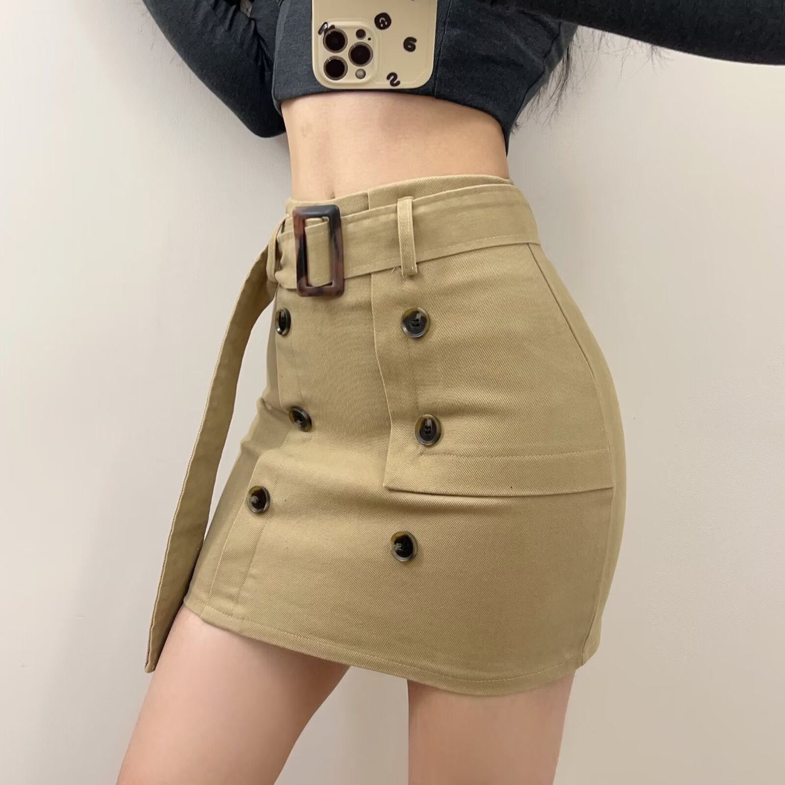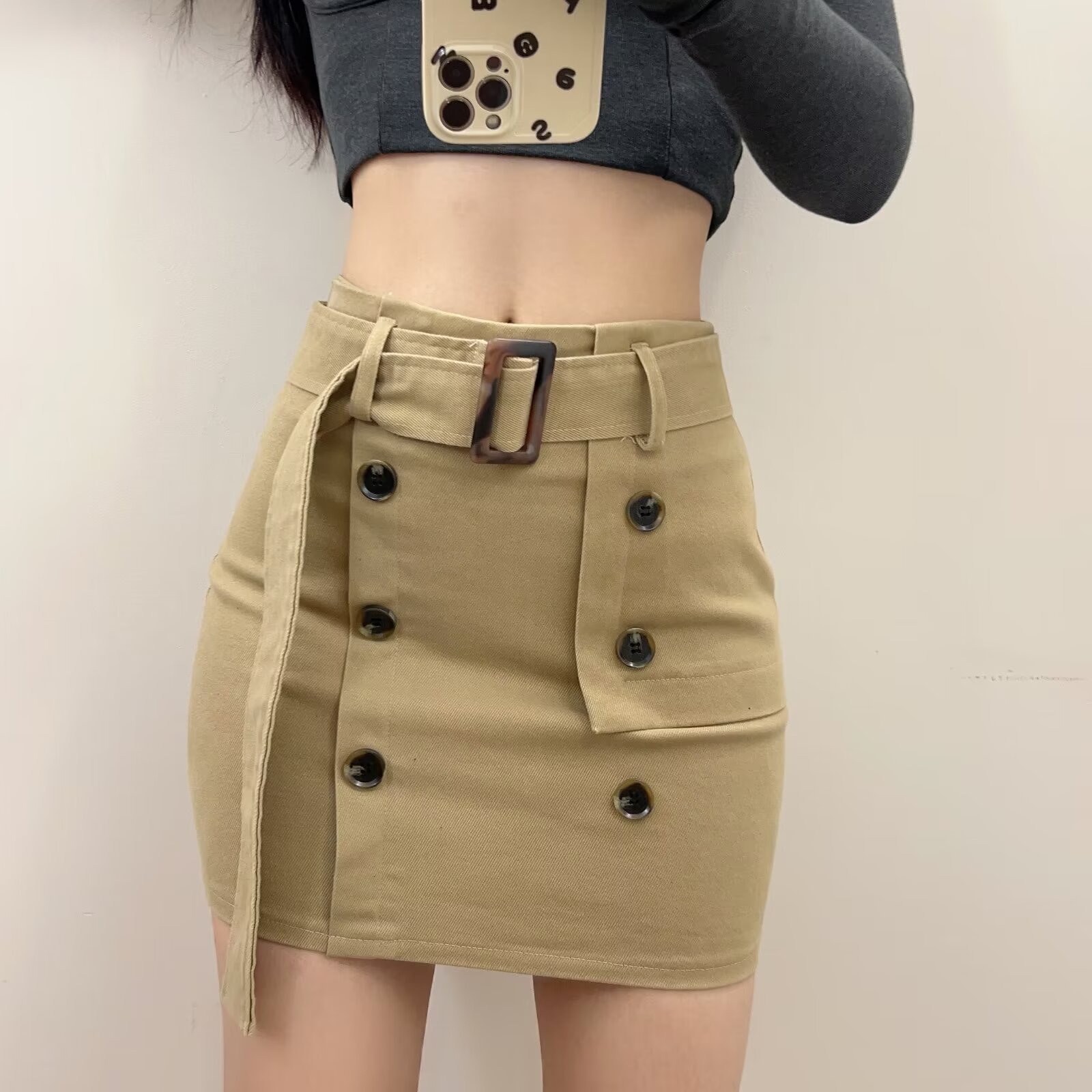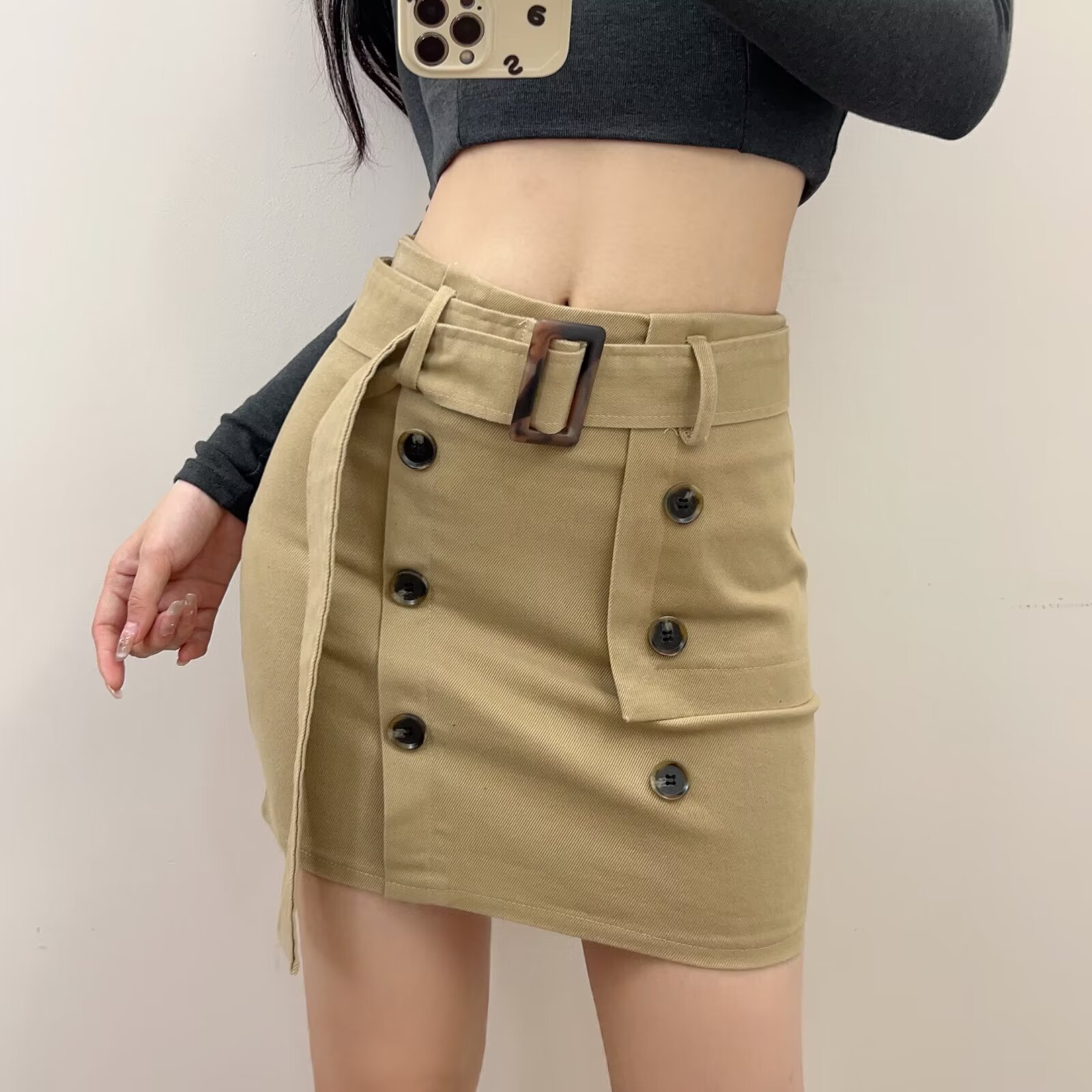 아메리칸 스타일 달콤한 스파이스 소녀 높은 허리 더블 브레스트 작업복 스커트 여성의 2024 새로운 빈티지 섹시한 힙합 스커트스토어 가기