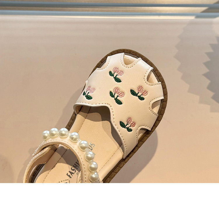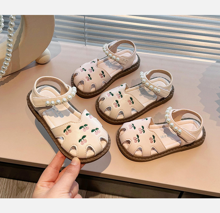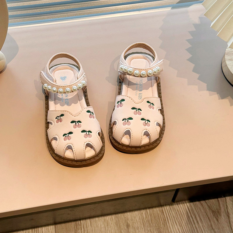 소녀 바오터우 샌들 2024 년 여름 새 어린이 미끄럼 방지 부드러운 밑창 진주 소녀 공주 신발 중소 · 대형 어린이