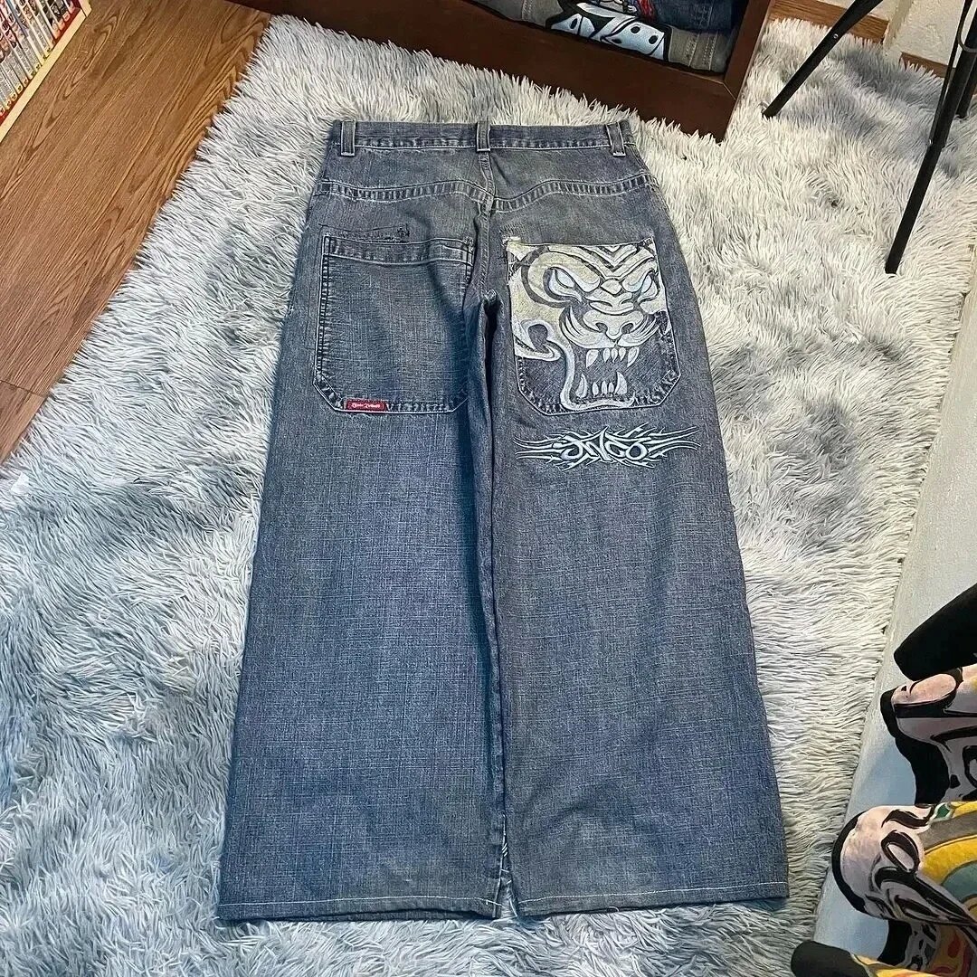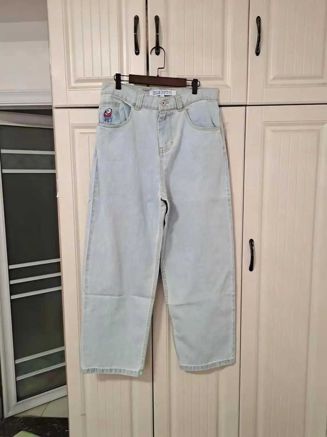 국경 간 전자 상거래 큰 소년 청바지 Y2K 바지 패션 힙합 만화 자수 복고풍 검은 느슨한 청바지스토어 가기
