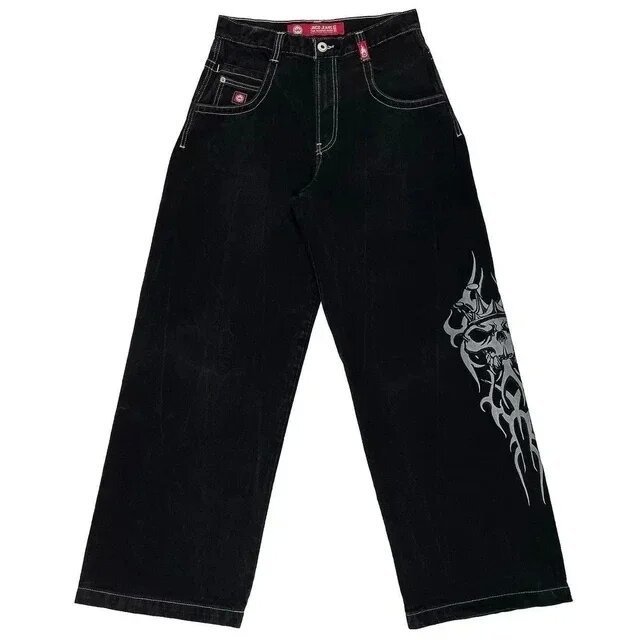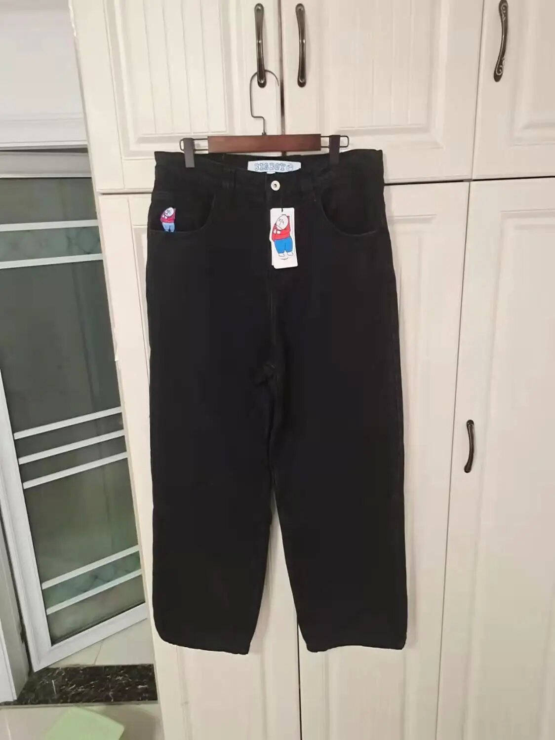 국경 간 전자 상거래 큰 소년 청바지 Y2K 바지 패션 힙합 만화 자수 복고풍 검은 느슨한 청바지