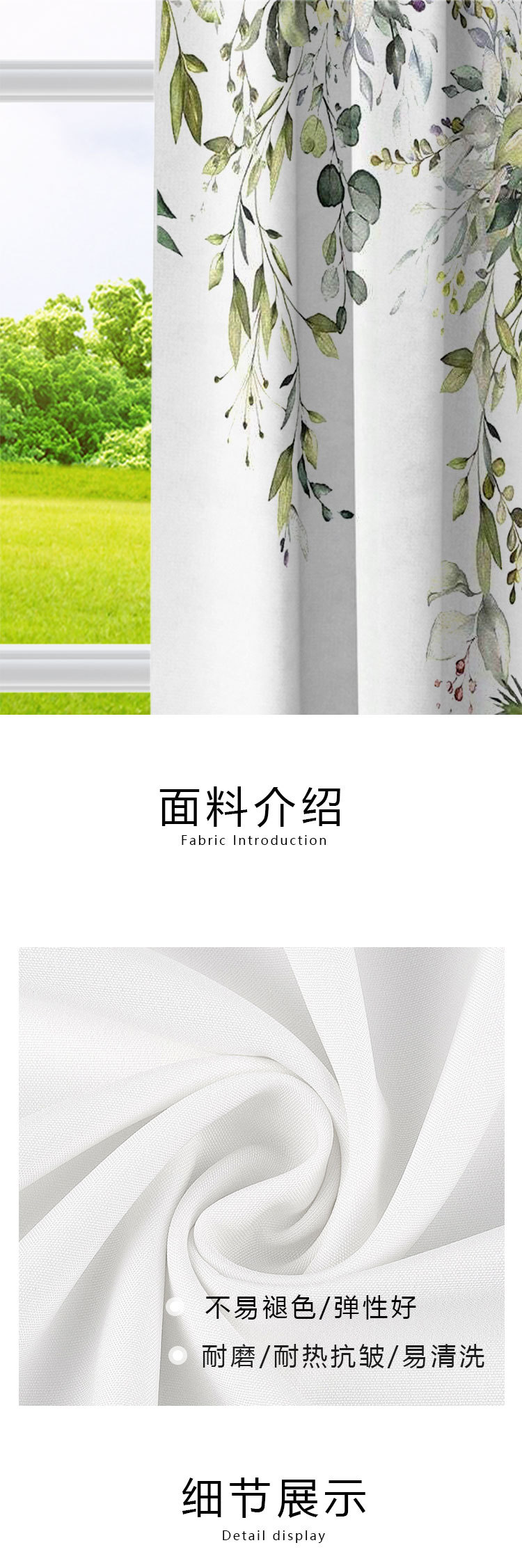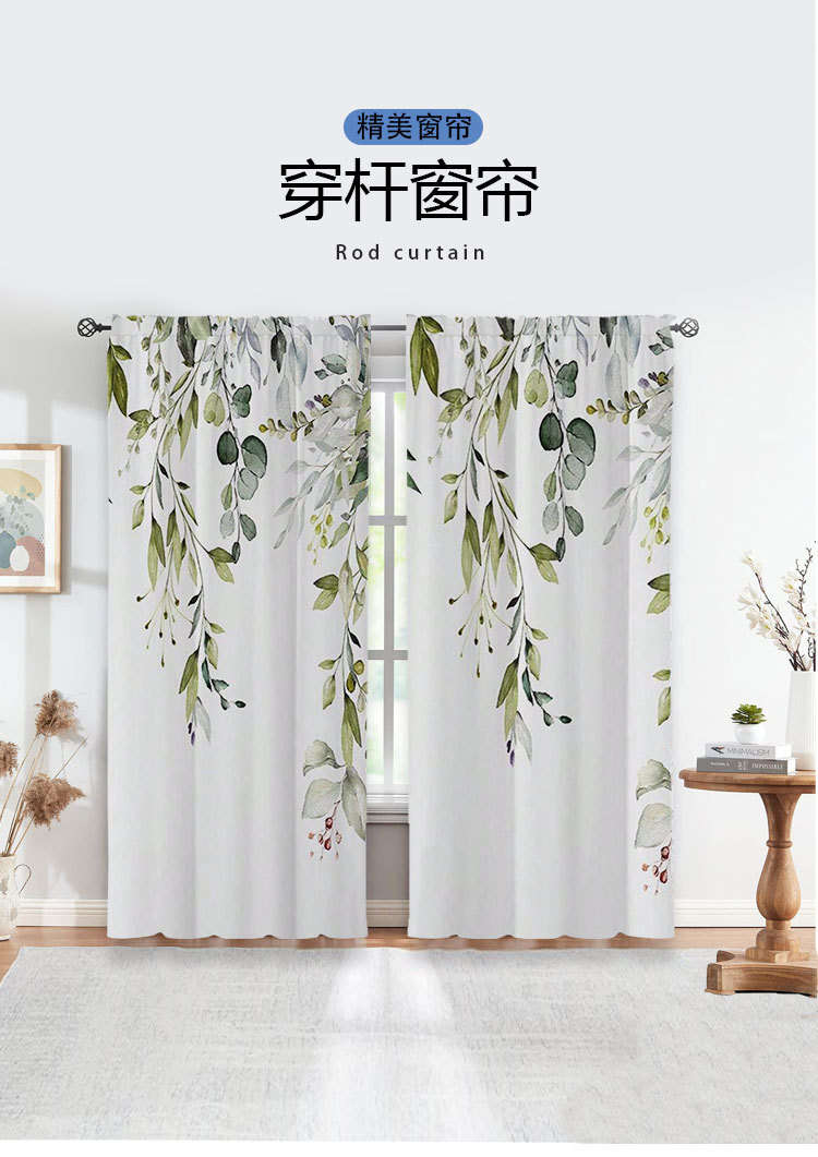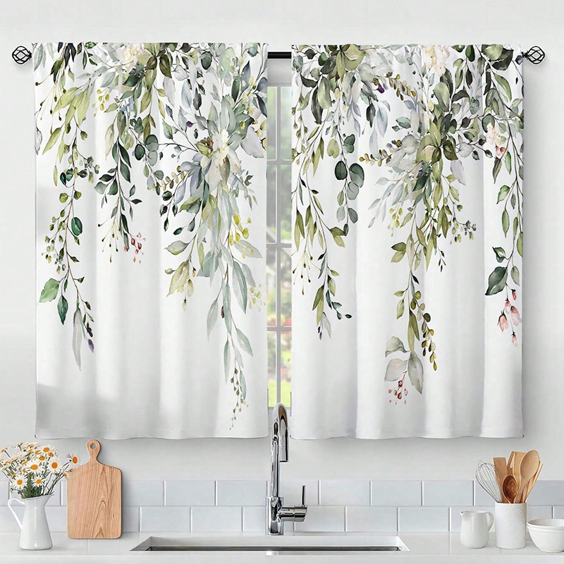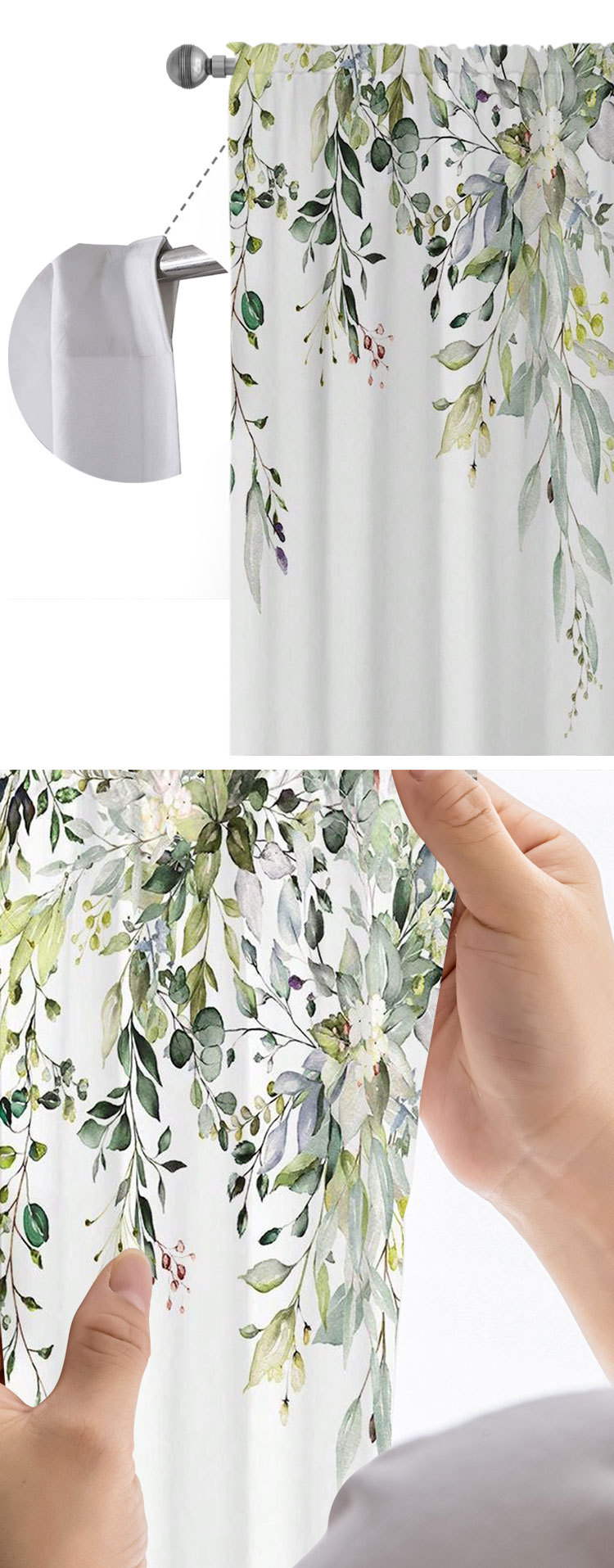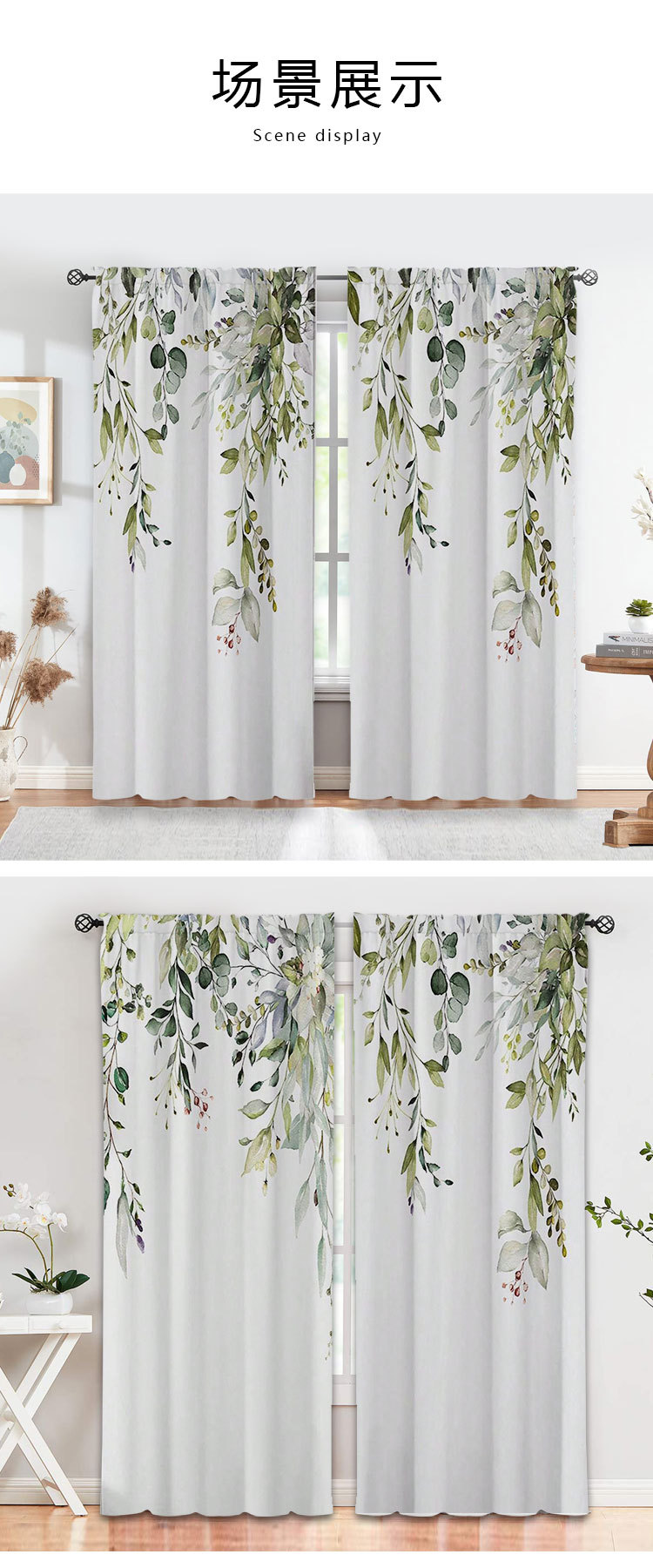 2PCS 산림부 목가적 스타일 눈 보호 녹색 부서 디지털 인쇄 커튼 침실 주방 거실 연구 창 장식