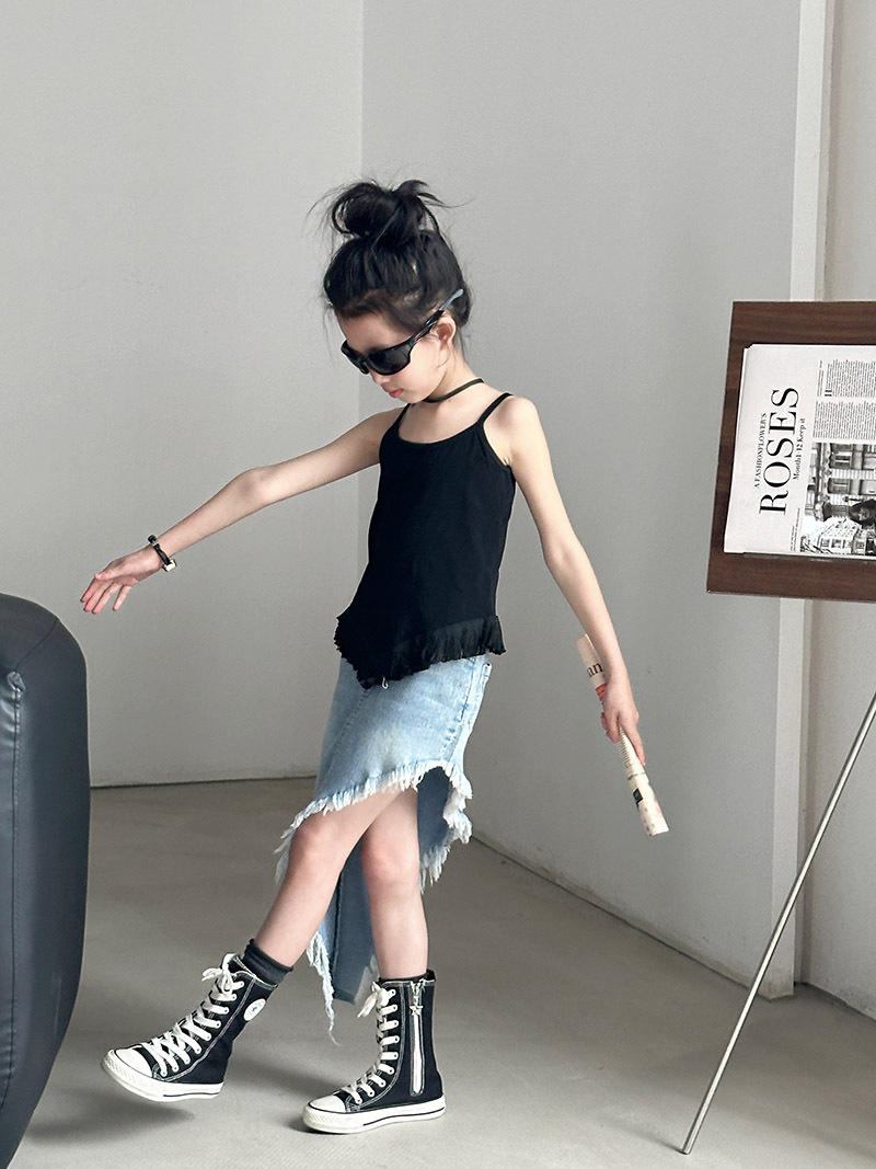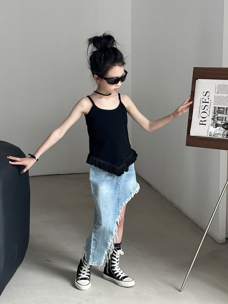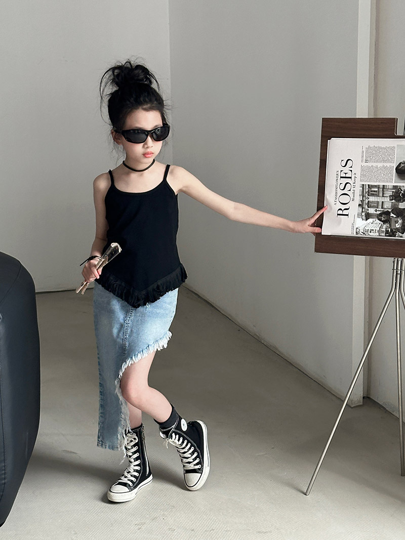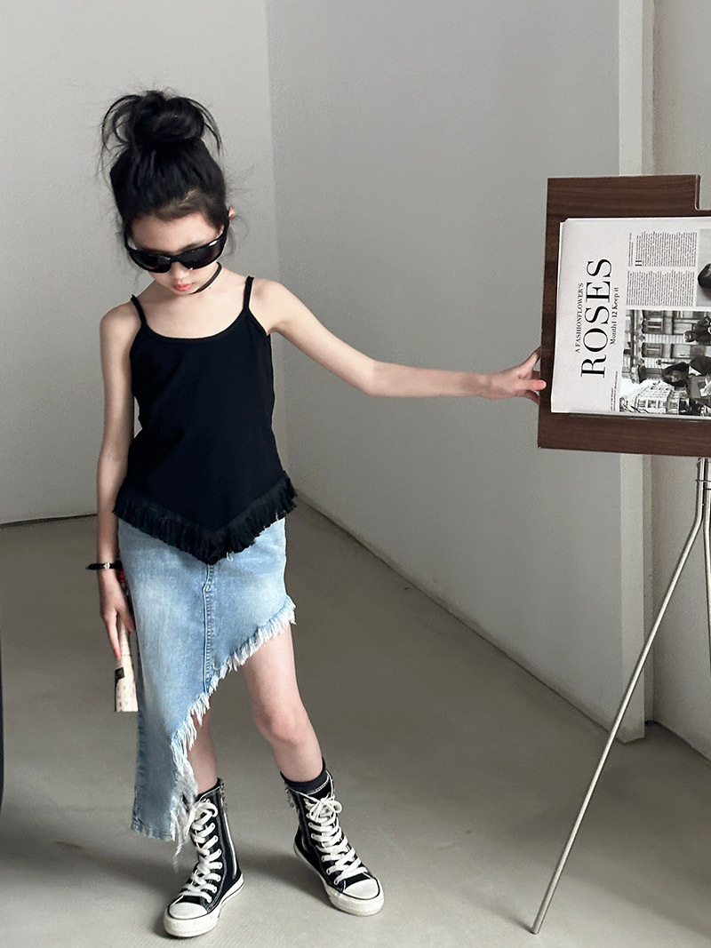 여아 데님 스커트 2025 여름 신상 중대형 아동용 불규칙 사선 밑단 스커트 유럽풍 힙허깅 숏 스커트 패션쇼 트렌드스토어 가기